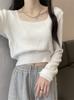 Camiseta interior ajustada con cuello redondo de principios de otoño de 2023, nuevo diseño de nicho, diseño de color sólido para mujer