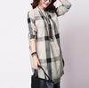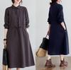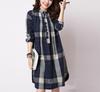 2 023 Primavera y otoño Nuevo vestido camisero coreano de talla grande para mujer, suelto, de longitud media, de algodón y lino a cuadros, camisa de lino de manga larga