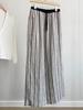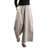 Pantalones anchos de rayas de algodón y lino retro para mujer, pantalones casuales rectos y ajustados, verano