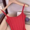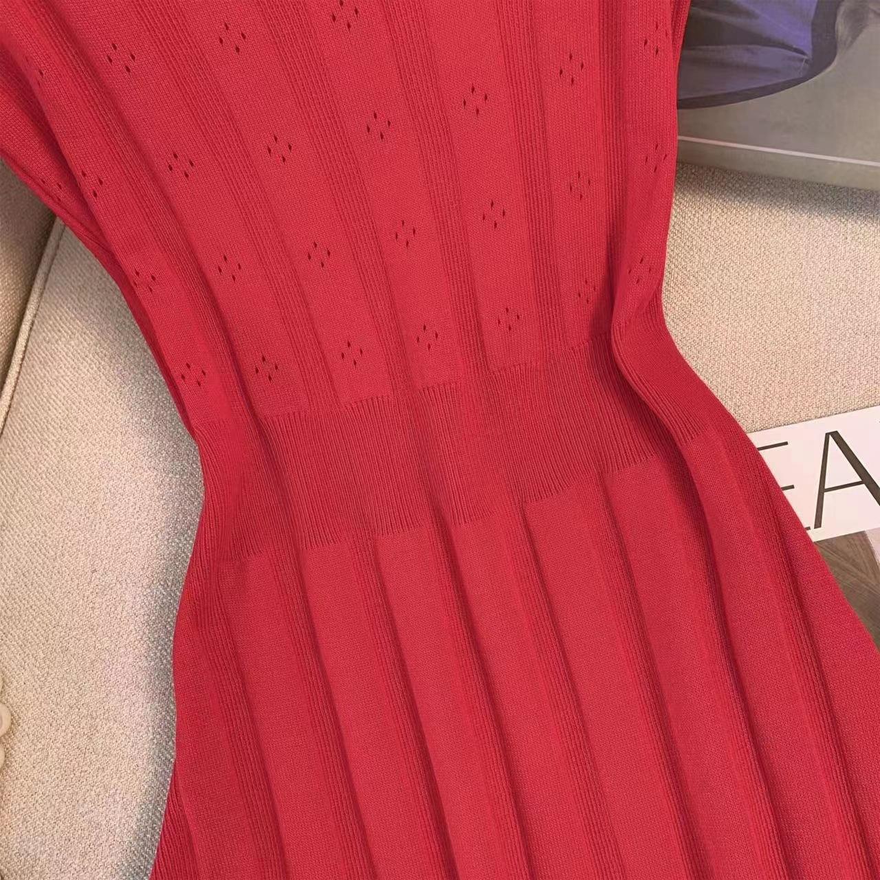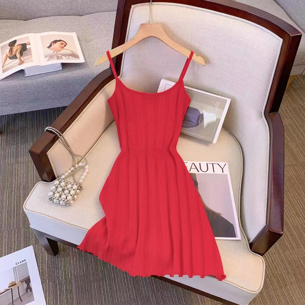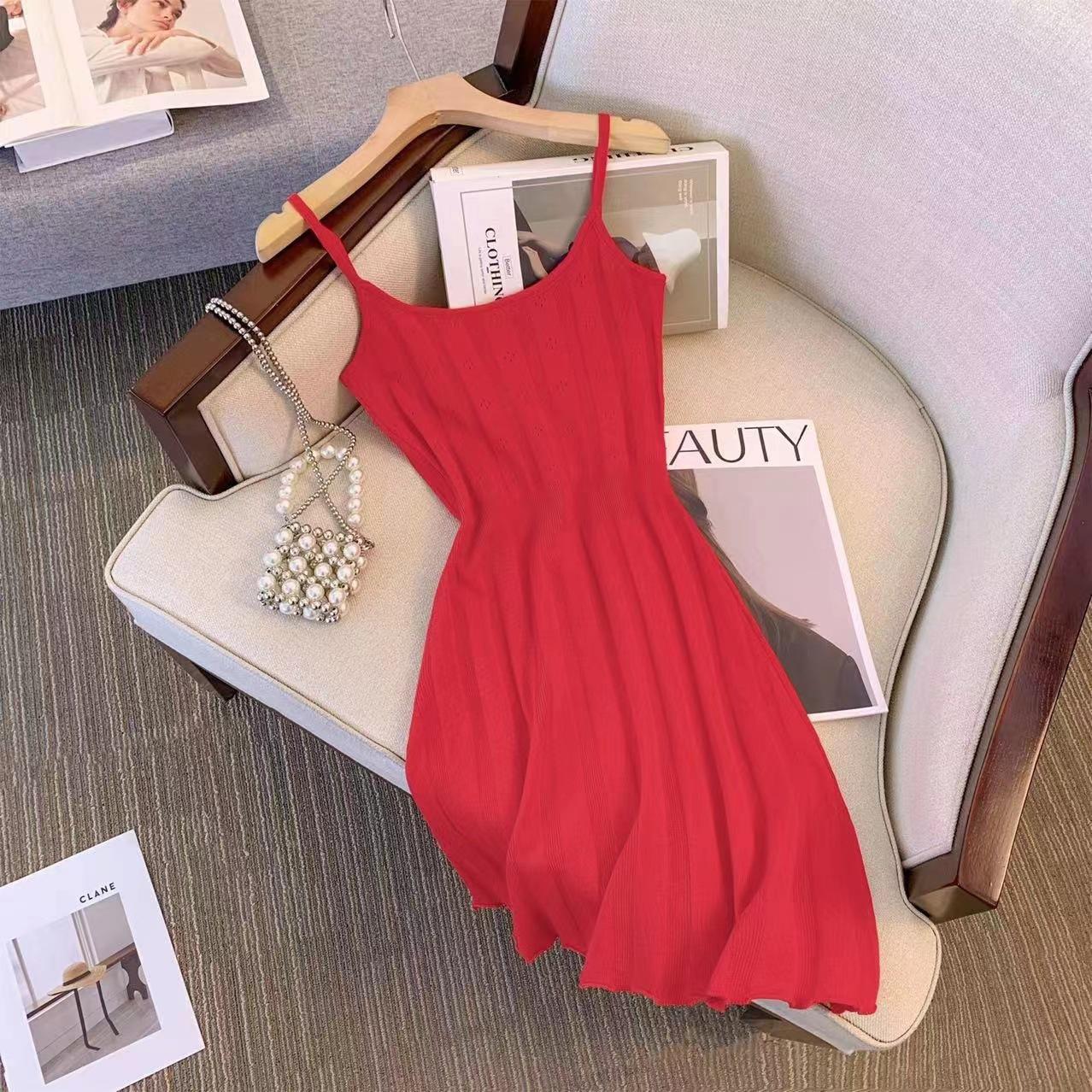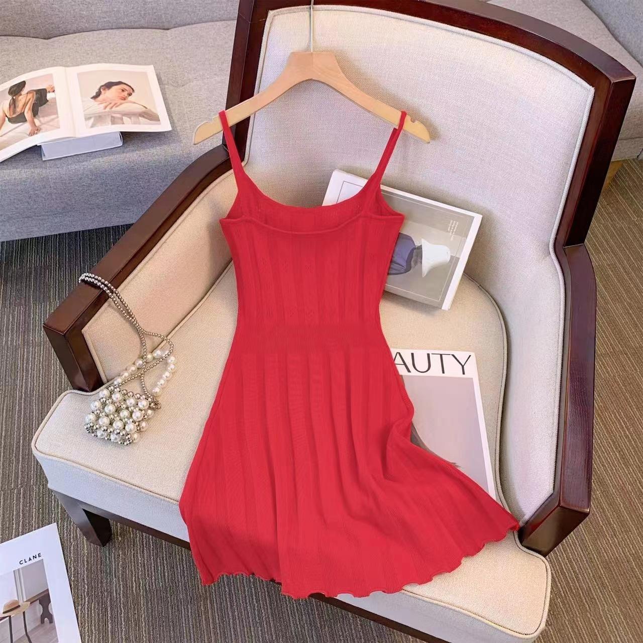 Toma real~ Deseo puro chica hot vestido corto tejido de tirantes a rayas femenino verano francés retro temperamento falda sexy