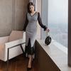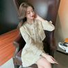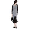 Ropa de Otoño 2025 Nuevo Estilo Coreano Retro Cuello en V Traje Slim a Cuadros Cola de Pez Traje de Dos Piezas Falda 8062