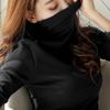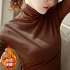 Camiseta básica de cuello alto cálida de terciopelo fino para mujer de manga larga para otoño e invierno, nuevo estilo coreano, ropa interior para mujer, camiseta ajustada, top de color puro