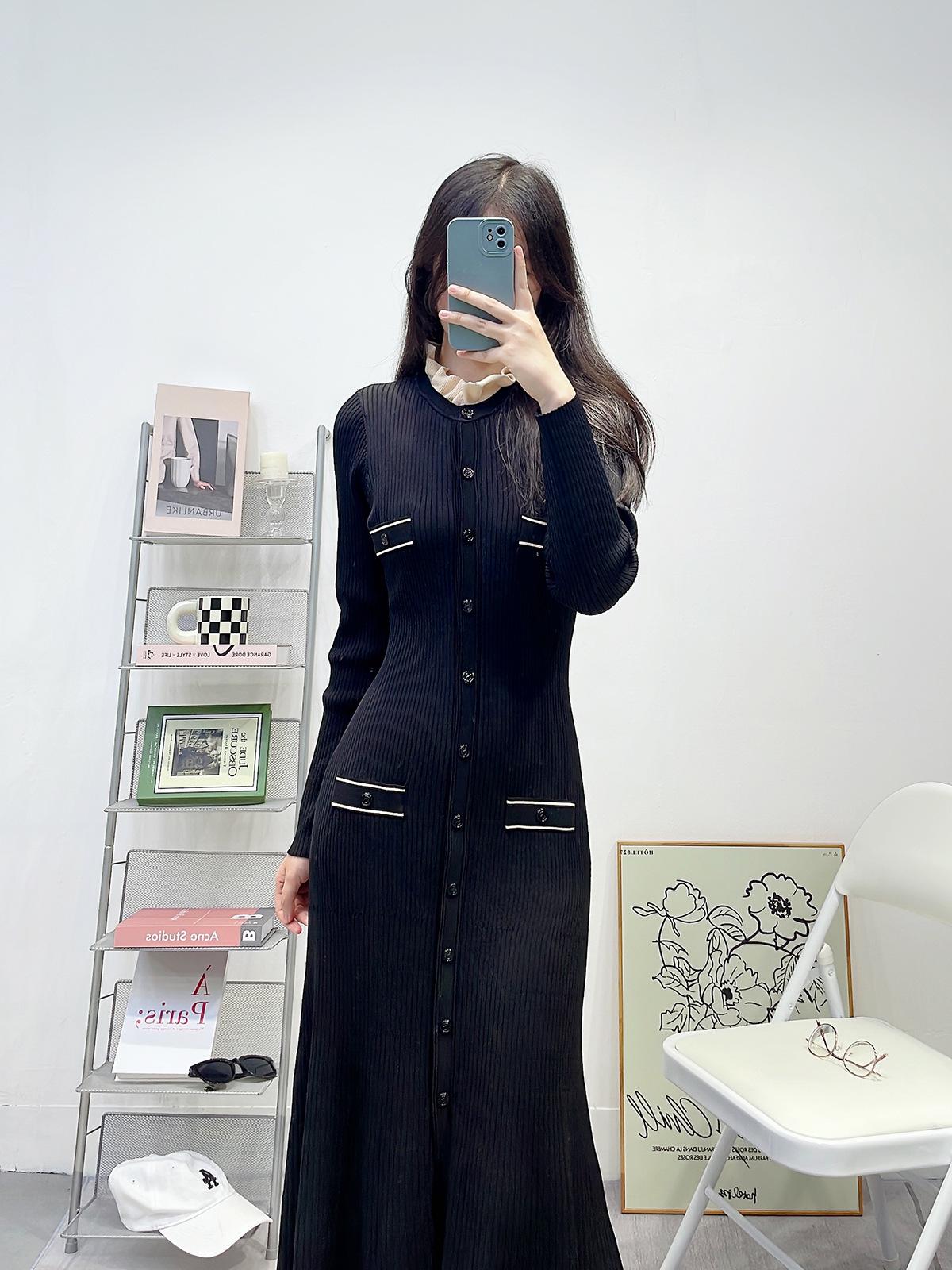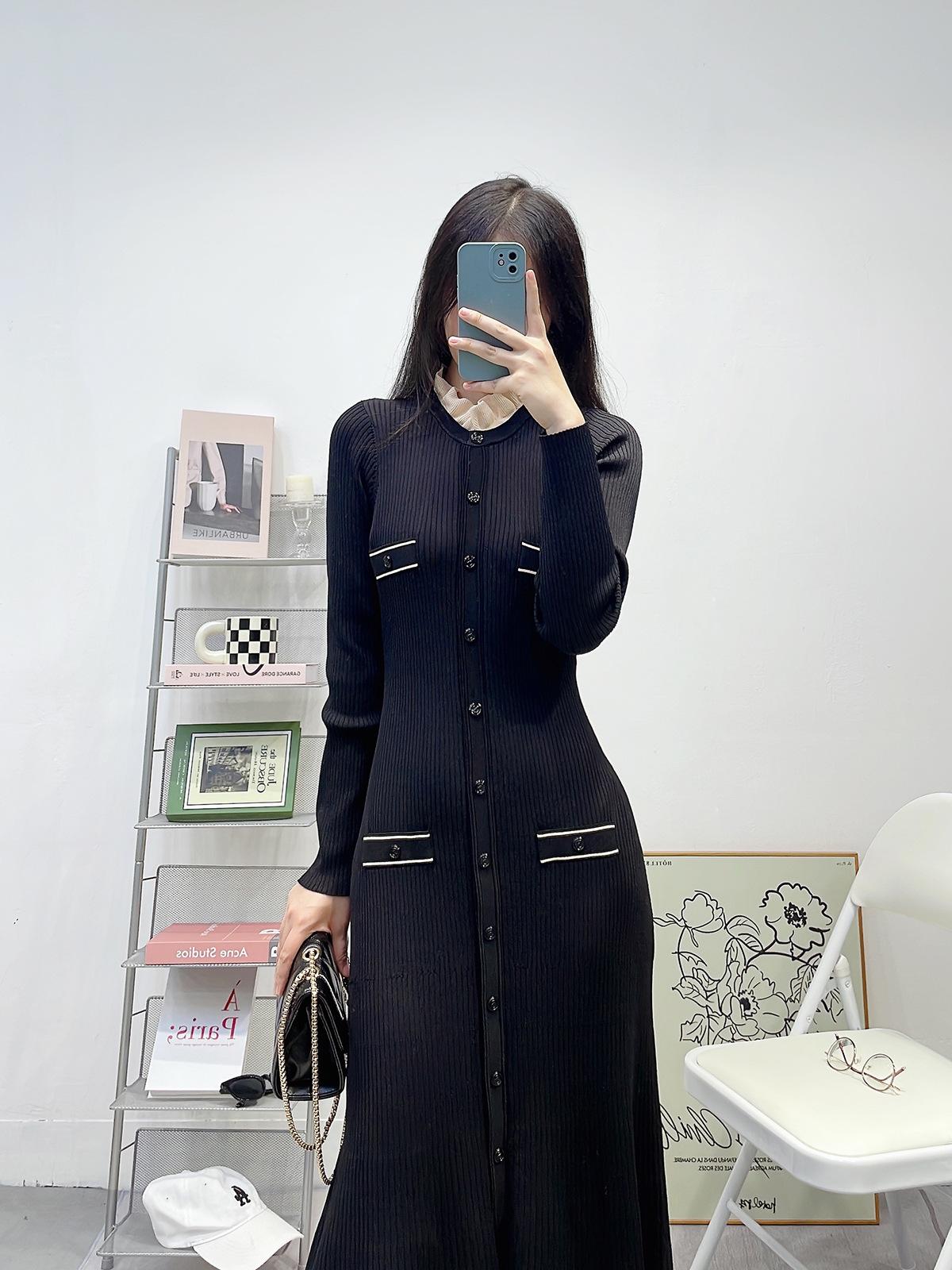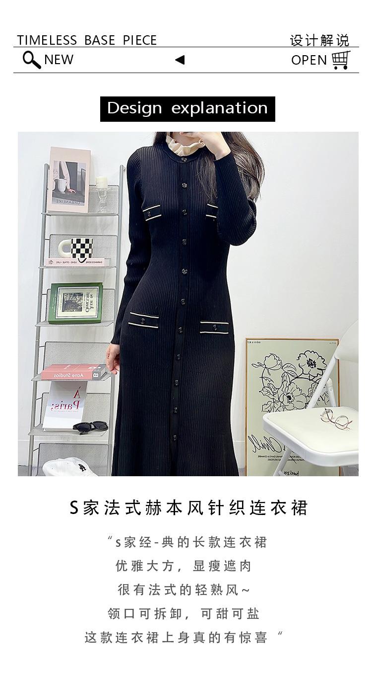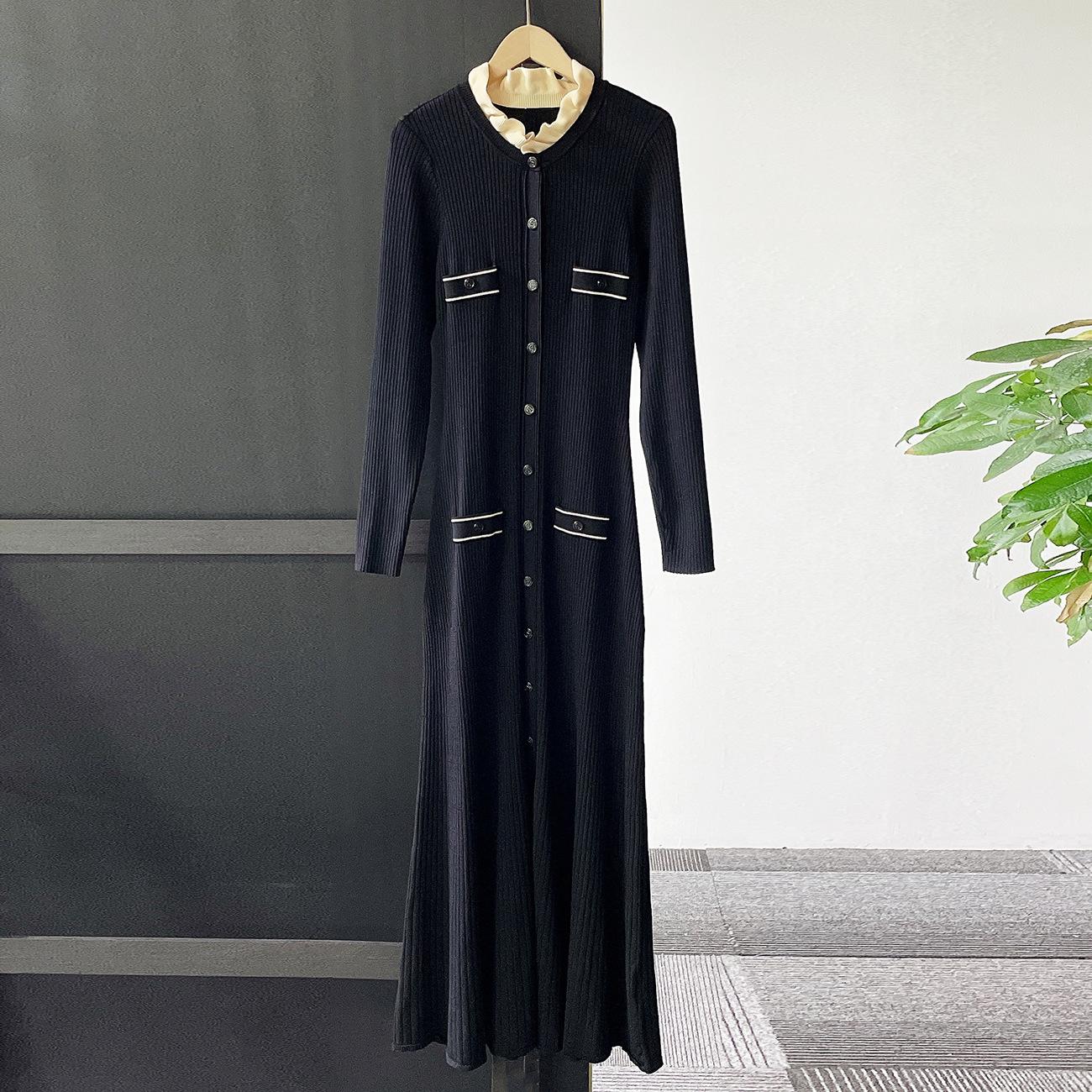 Compra Ropa de Mujer de Estilo Francés, Nuevo Otoño e Invierno Cuello de Encaje Desmontable Monopetillo Negro Ajustado Manga Larga Vestido Largo de Punto al por mayor en Joom.pro