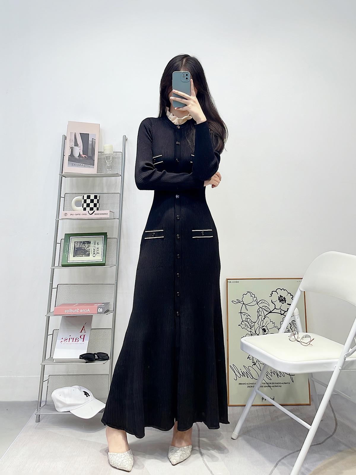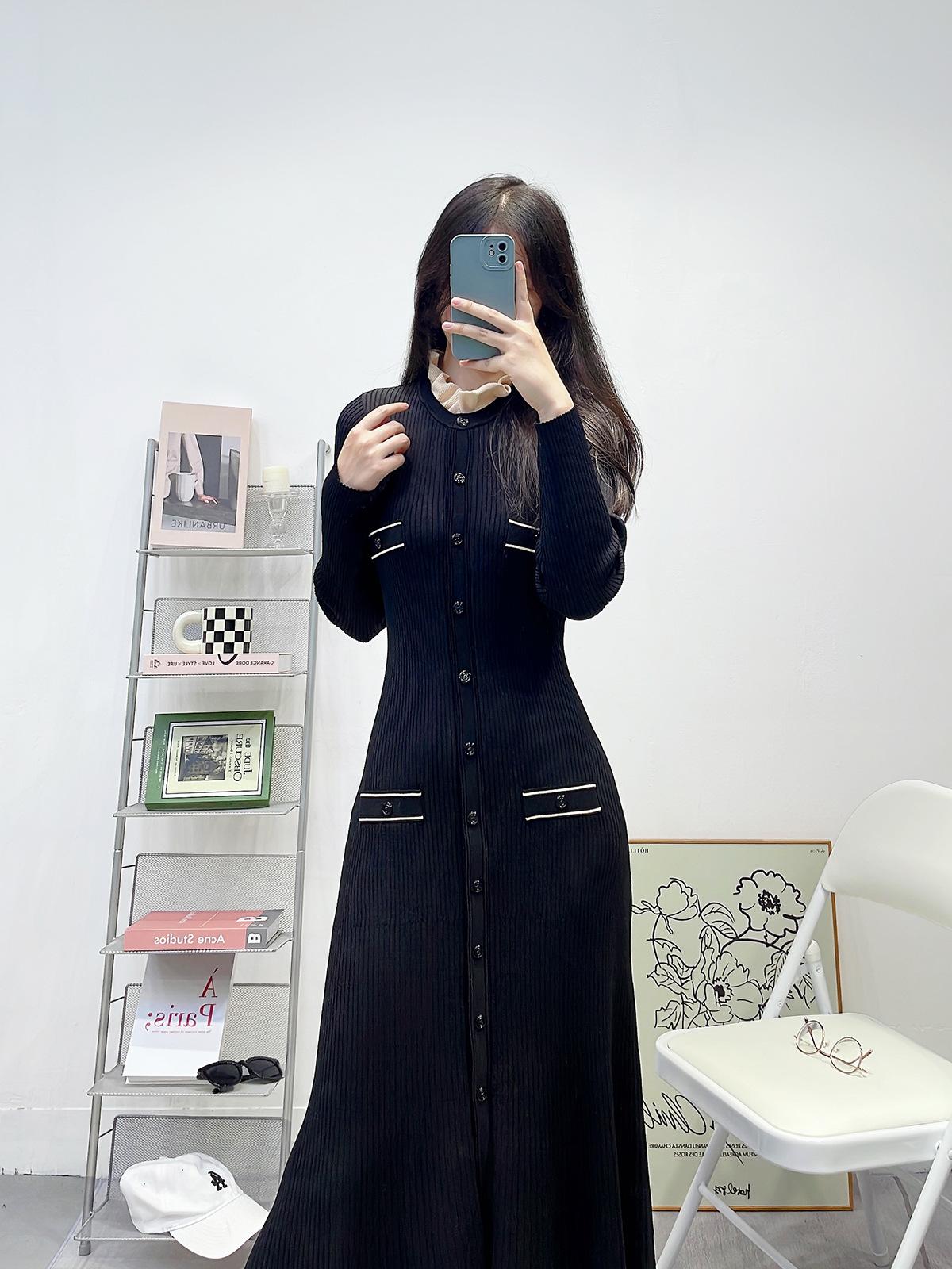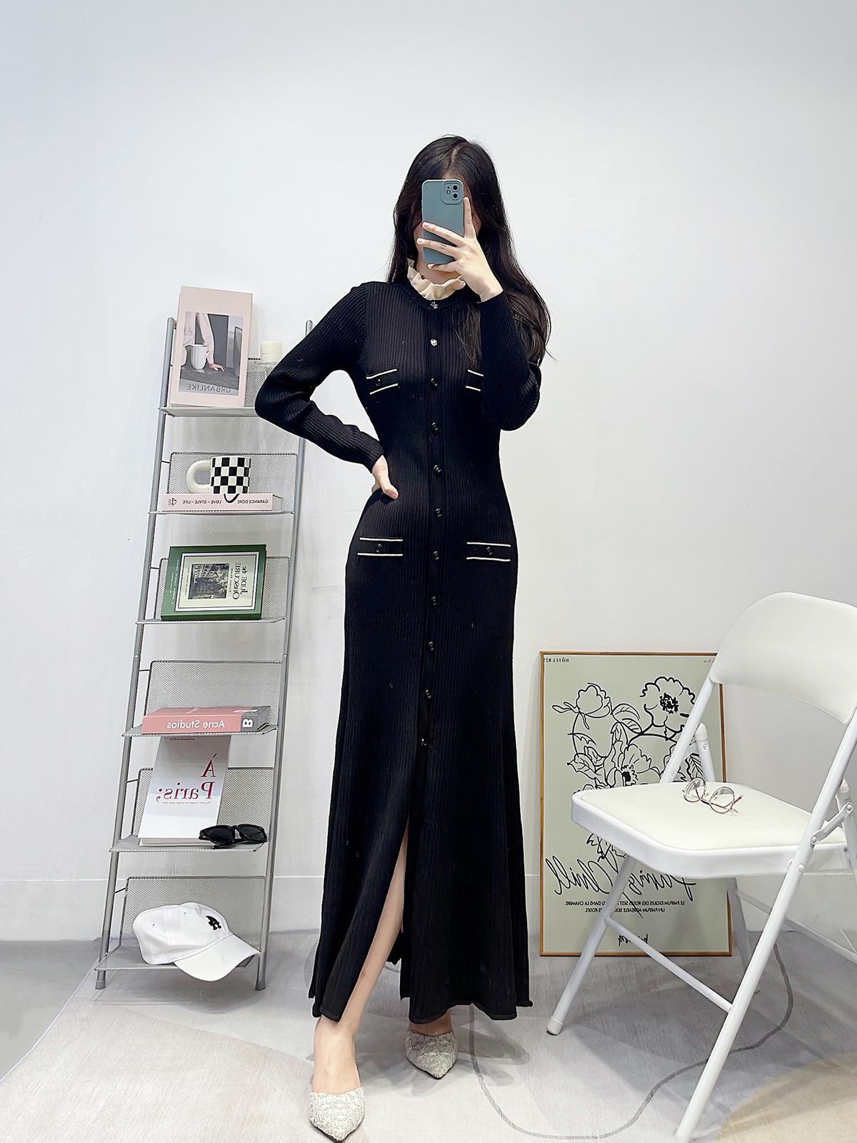Compra Ropa de Mujer de Estilo Francés, Nuevo Otoño e Invierno Cuello de Encaje Desmontable Monopetillo Negro Ajustado Manga Larga Vestido Largo de Punto al por mayor en Joom.pro