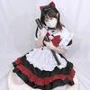 Disfraz de sirvienta negra y roja de Halloween, estilo universitario del departamento oscuro, vestido de Lolita, bruja diabla pequeña