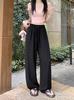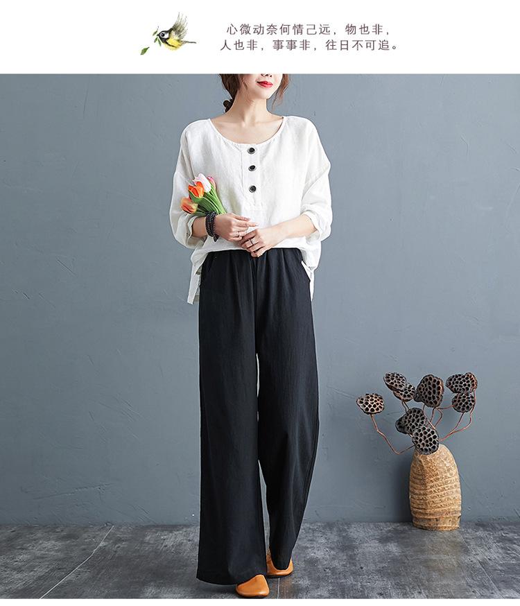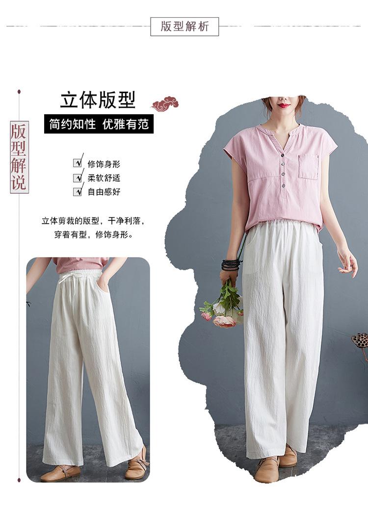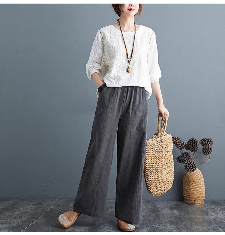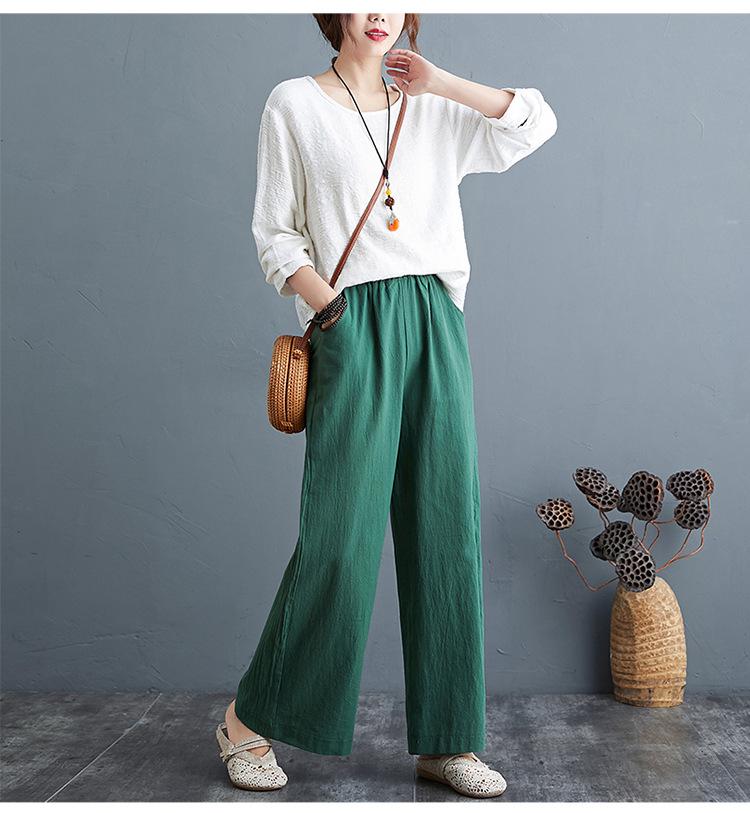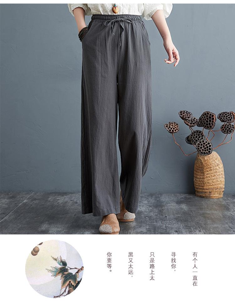 Pantalones de mujer de algodón y lino literarios de tiro real 2 023, pantalones holgados de pierna ancha de talla grande, pantalones de cintura alta, pantalones rectos, pantalones de lino