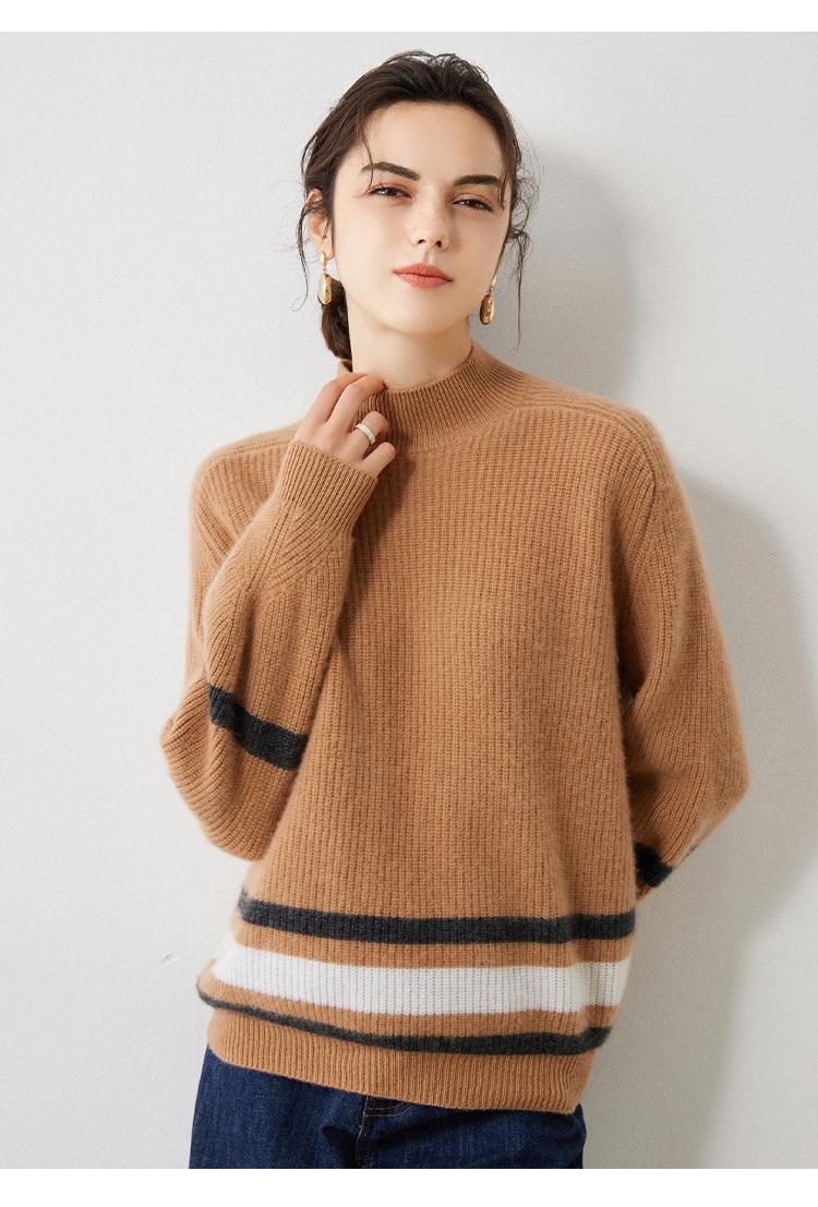 Suéter de cachemira de cuello alto para mujer, jersey de manga larga con cuello alto, camisa holgada de punto de cachemira a juego, otoño e invierno de 2023