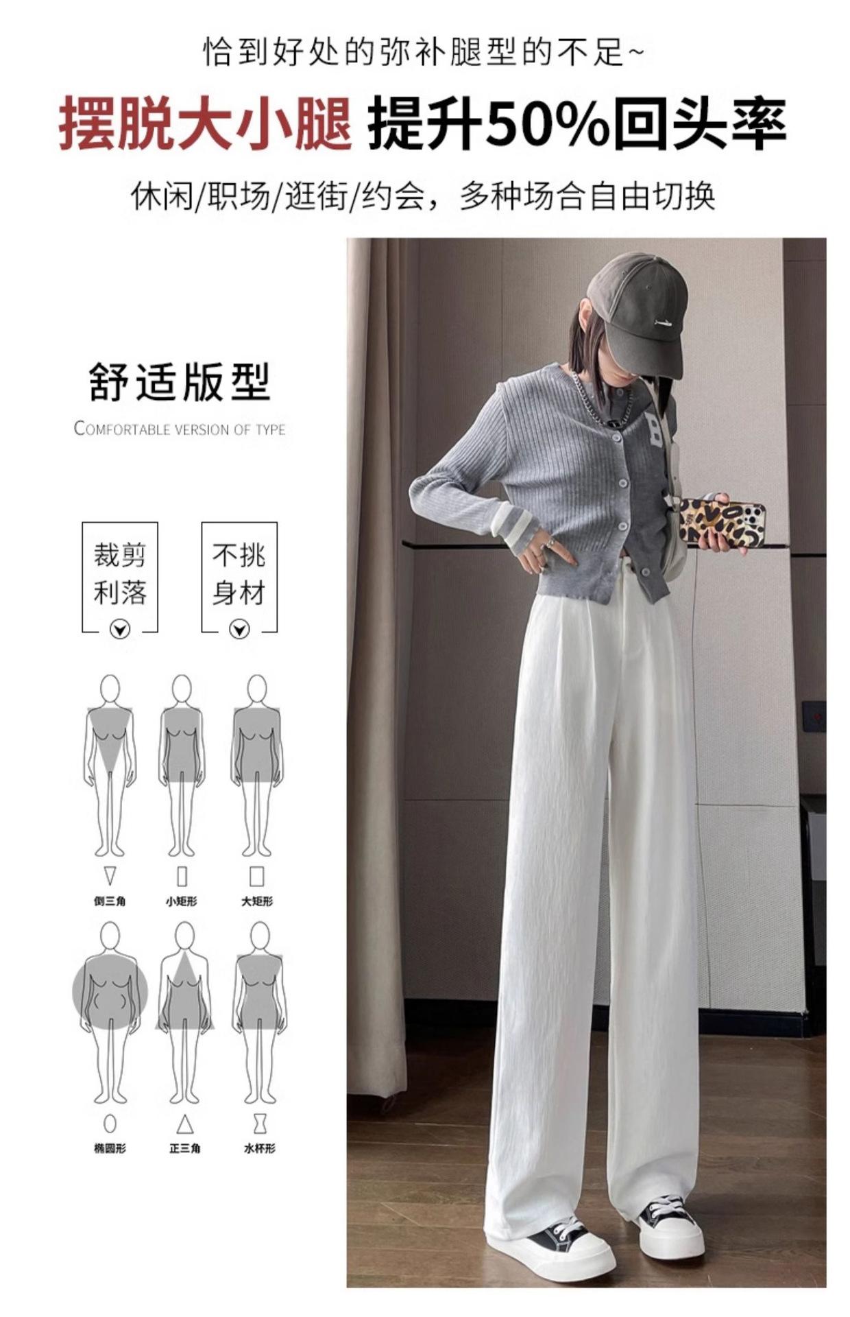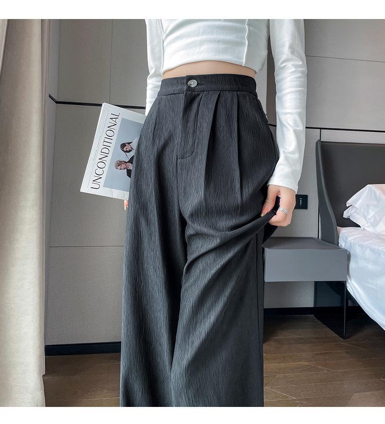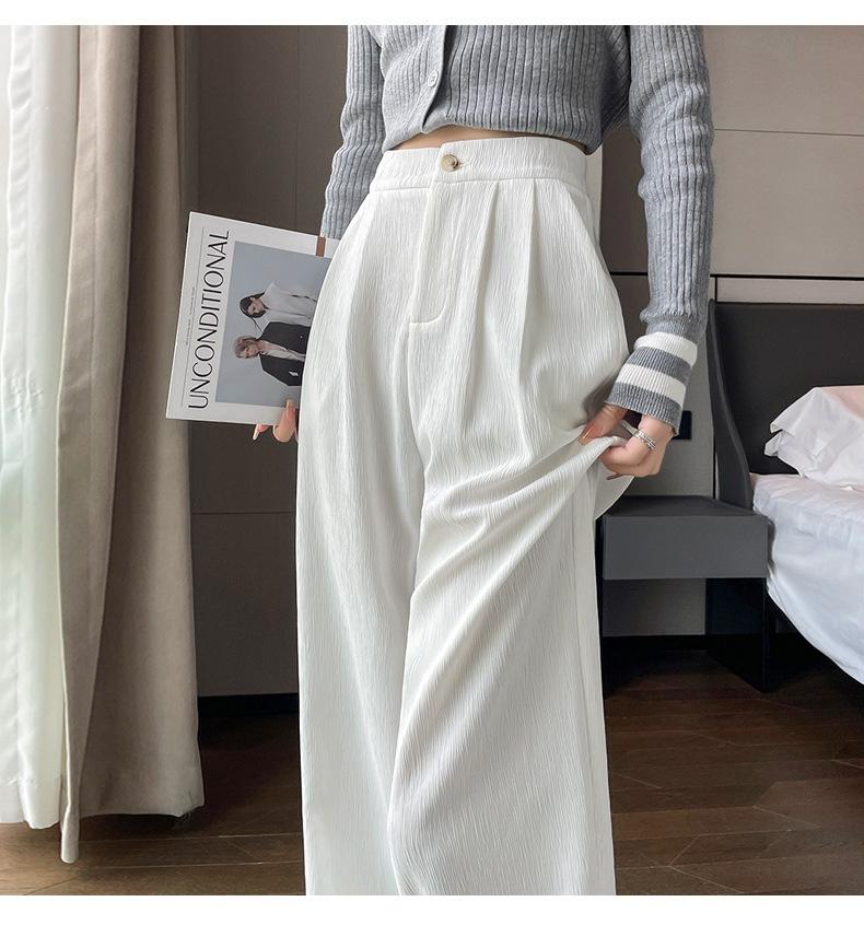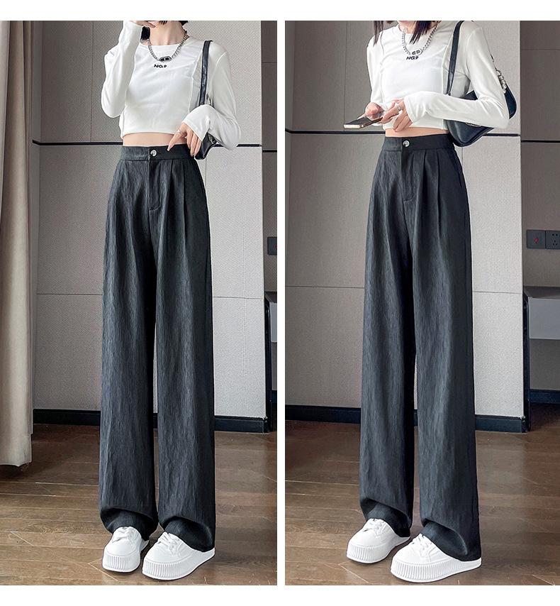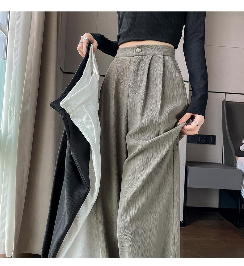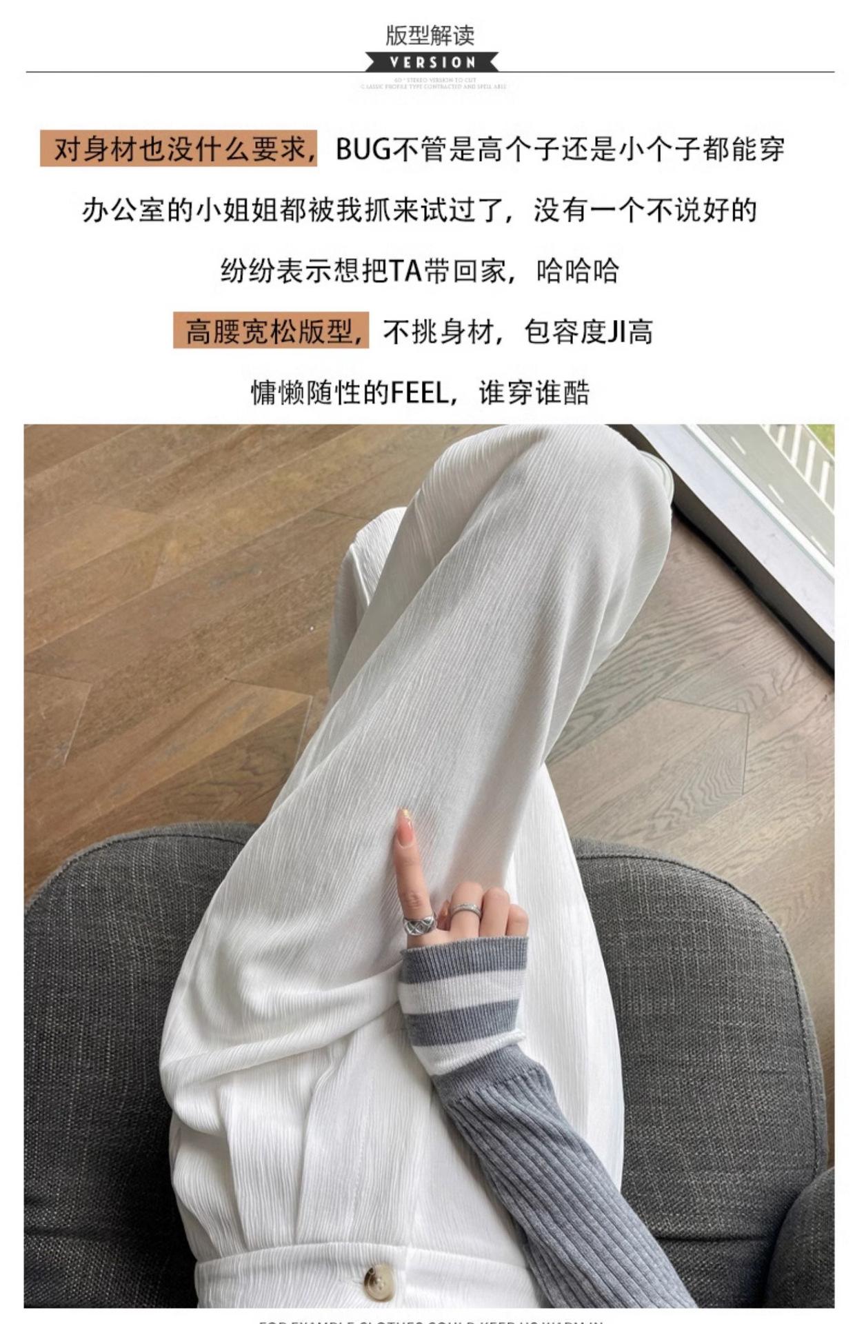 Compra Pantalones anchos de seda de hielo con textura para mujer, pantalones de traje rectos informales estrechos y holgados de cintura alta y finos de verano al por mayor en Joom.pro
