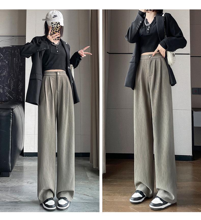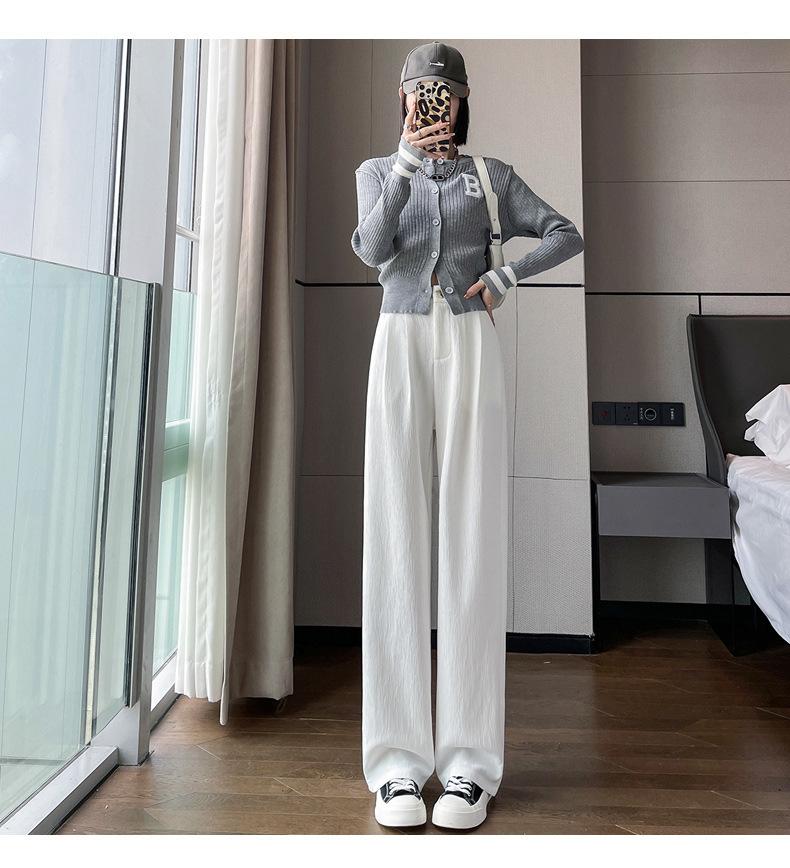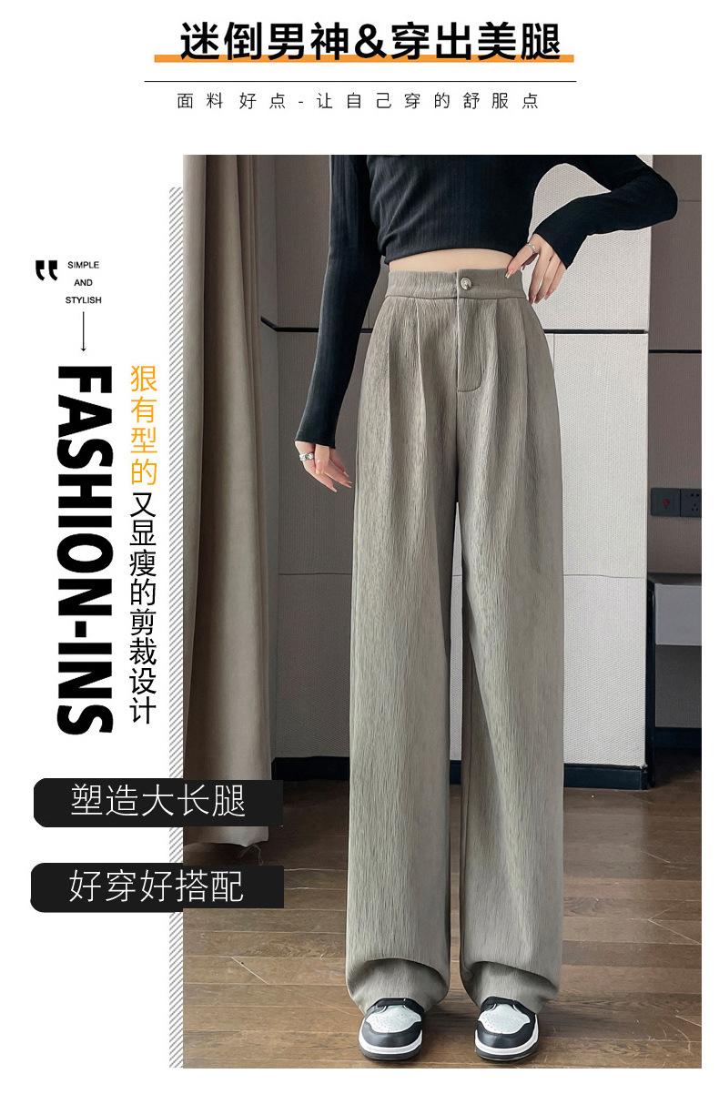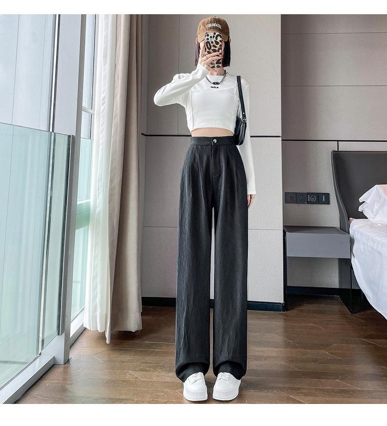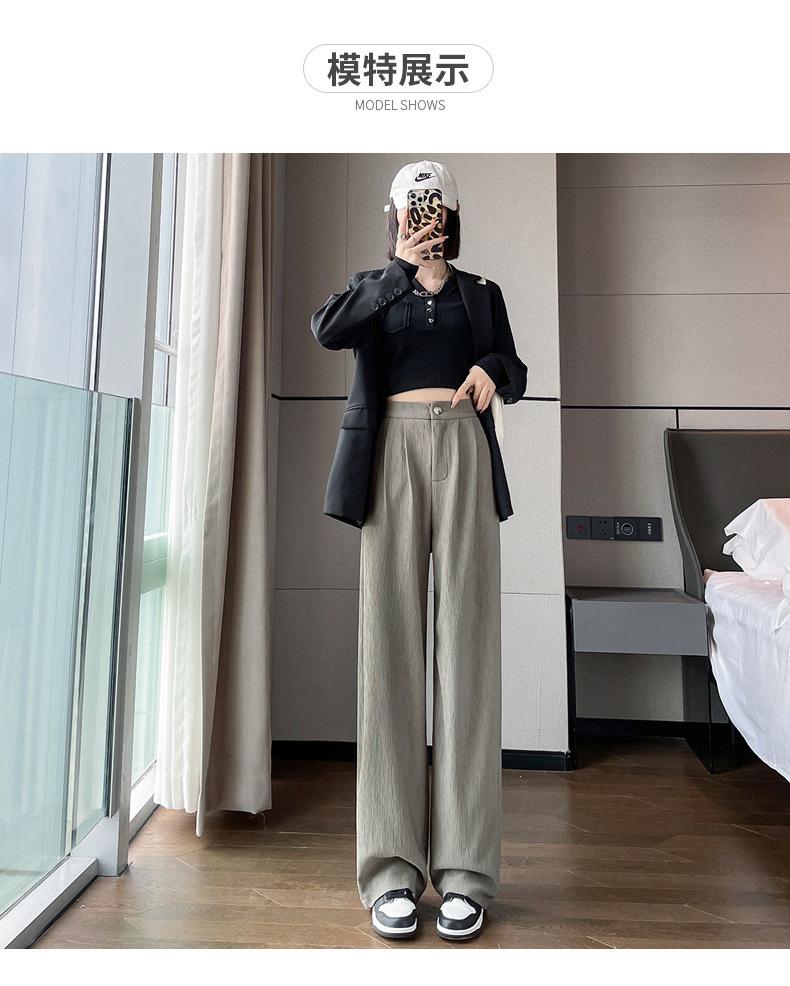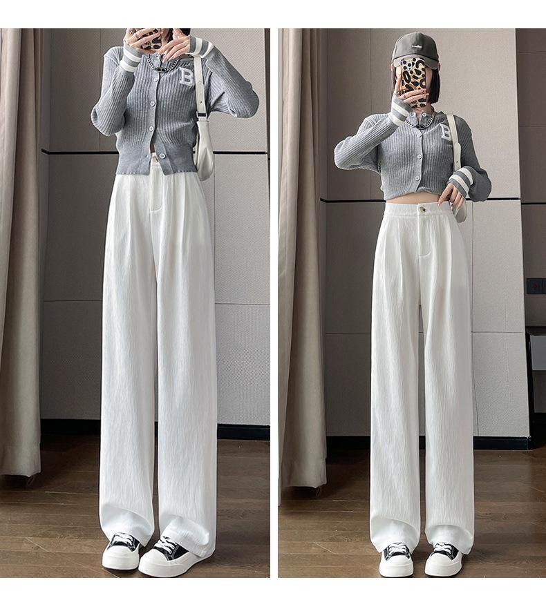 Compra Pantalones anchos de seda de hielo con textura para mujer, pantalones de traje rectos informales estrechos y holgados de cintura alta y finos de verano al por mayor en Joom.pro