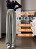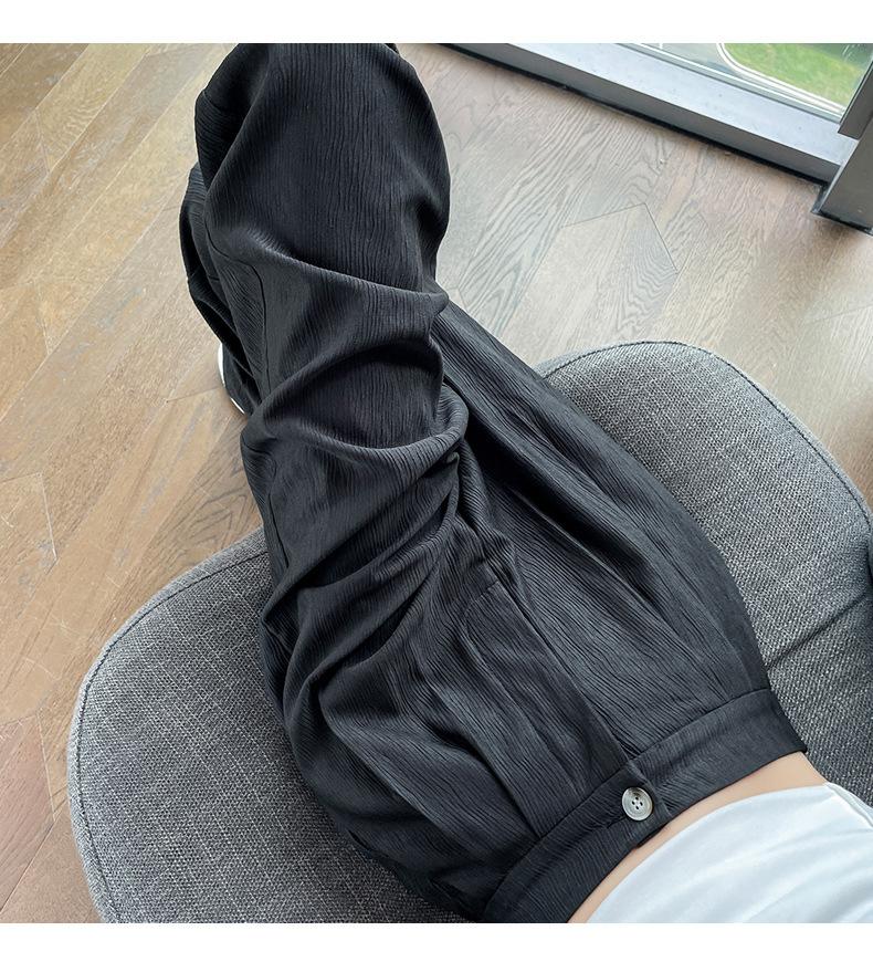 Pantalones anchos de seda de hielo con textura para mujer, pantalones de traje rectos informales estrechos y holgados de cintura alta y finos de verano