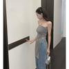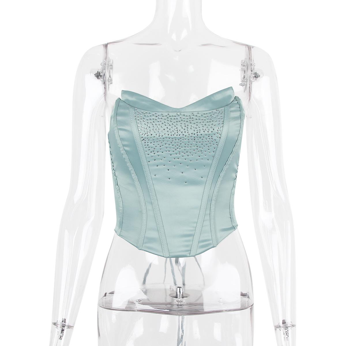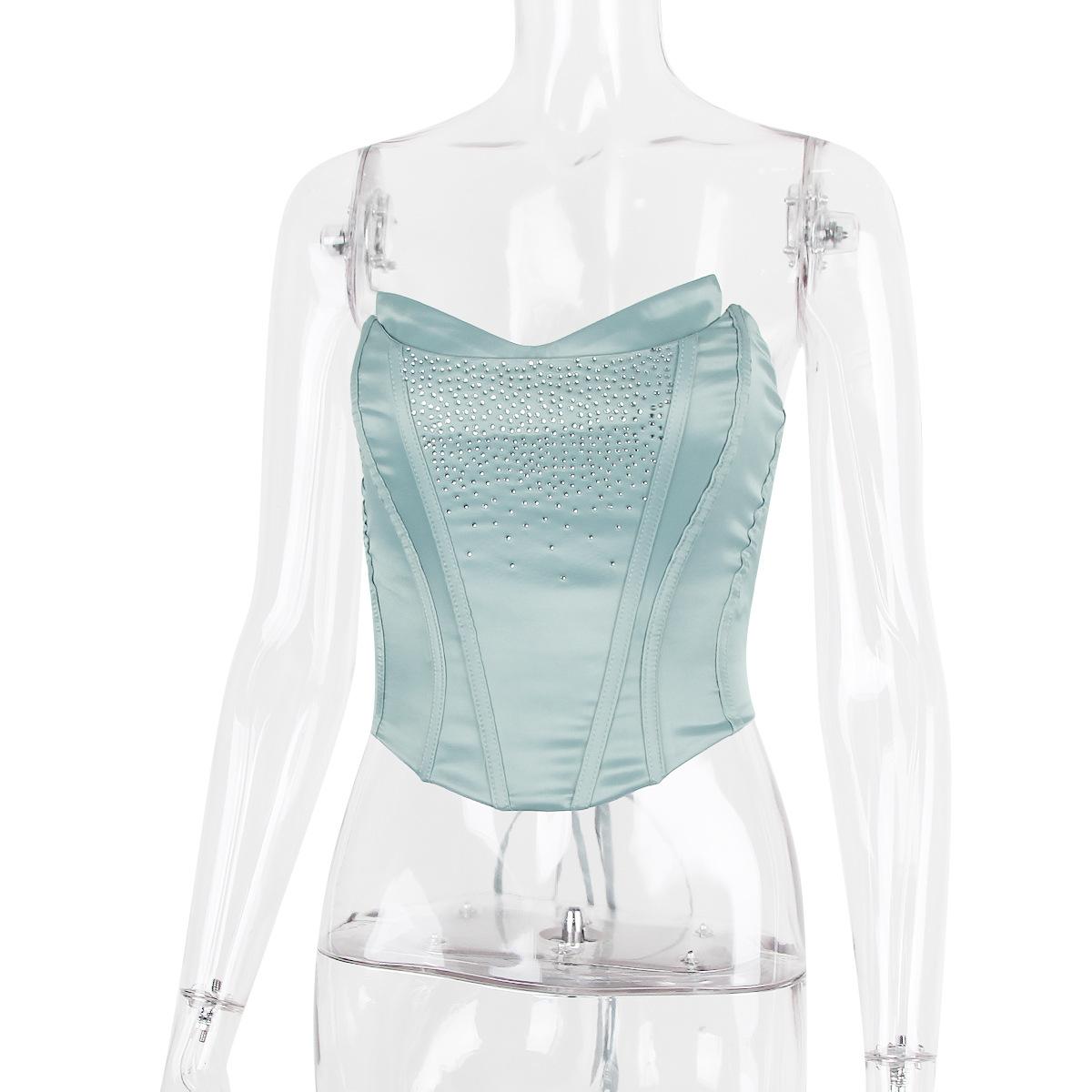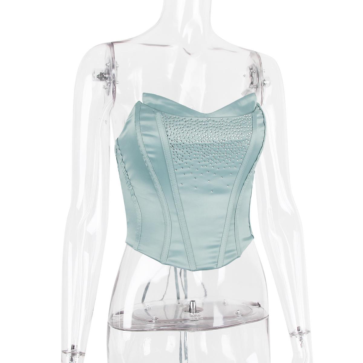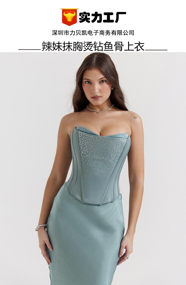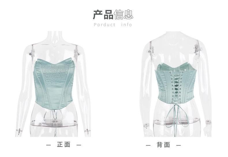 Top de tubo nuevo europeo y americano con diamantes de imitación, chaleco sexy para chica, top de espiga corto irregular de cintura estrecha para mujer, ropa de mujer de puro deseo