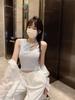 Ropa de mujer europea y americana malla un hombro sexy top de tubo vestido blanco elegante cadera cola de pez falda larga vestido blanco