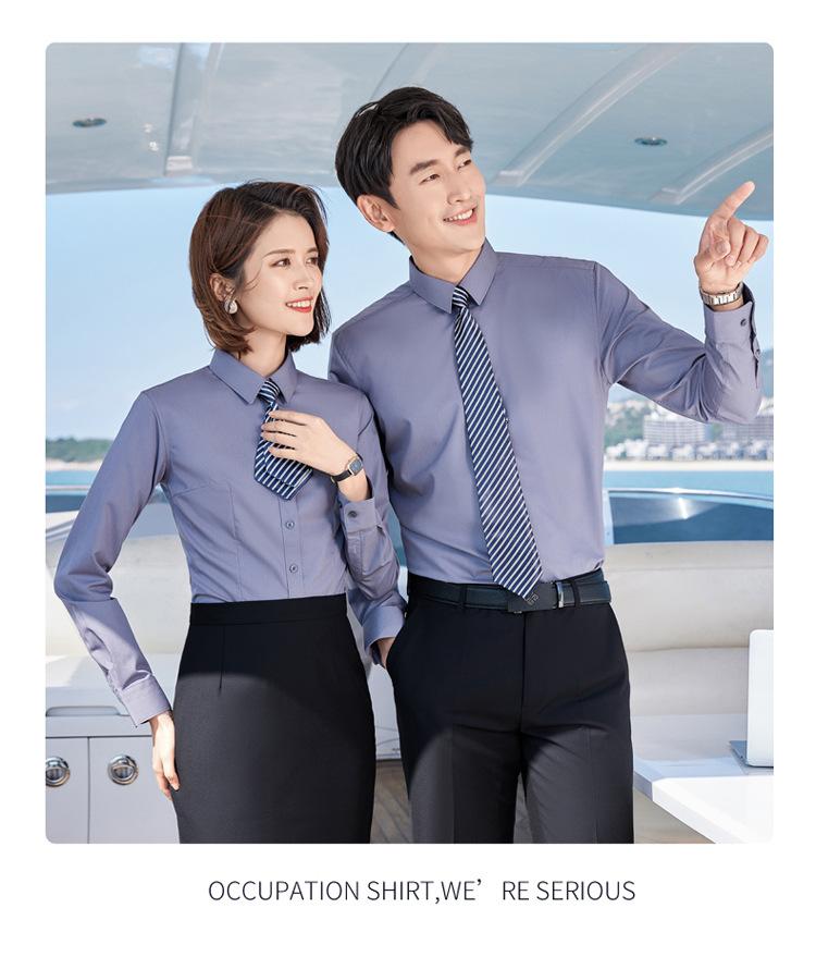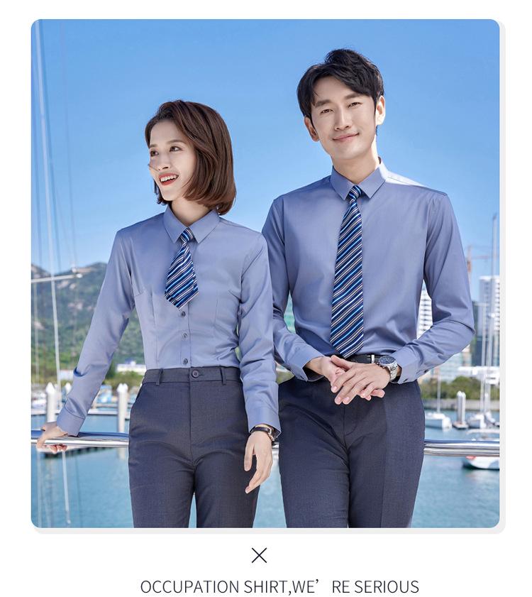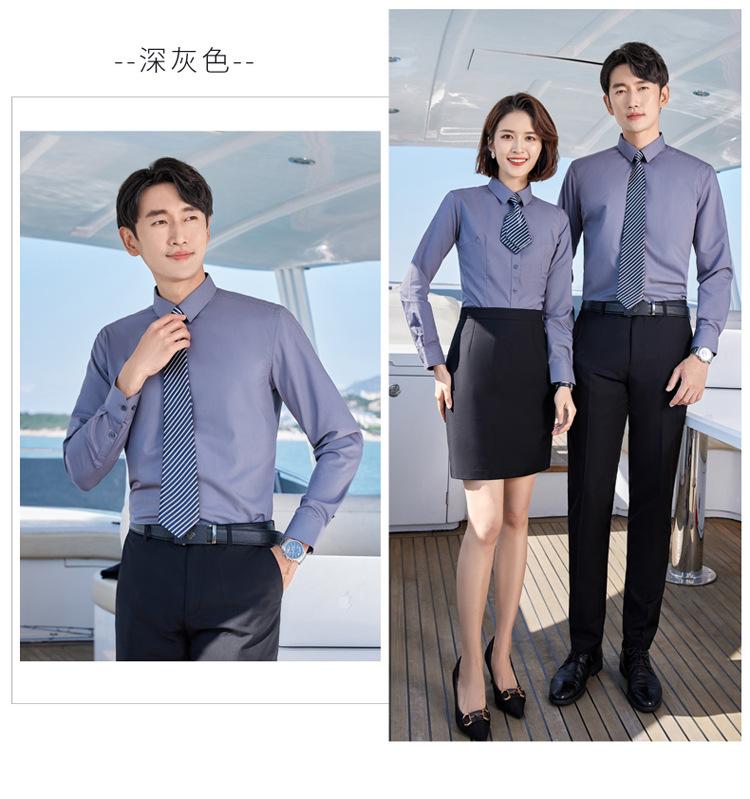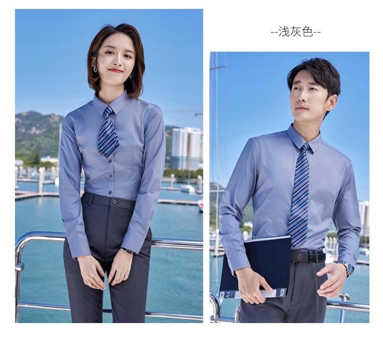 Camisa lisa de primavera con nuevo estilo para entrevistas de negocios, ideal para hombres y mujeres, camisa de vestir de negocios del mismo estilo con logotipo bordado.