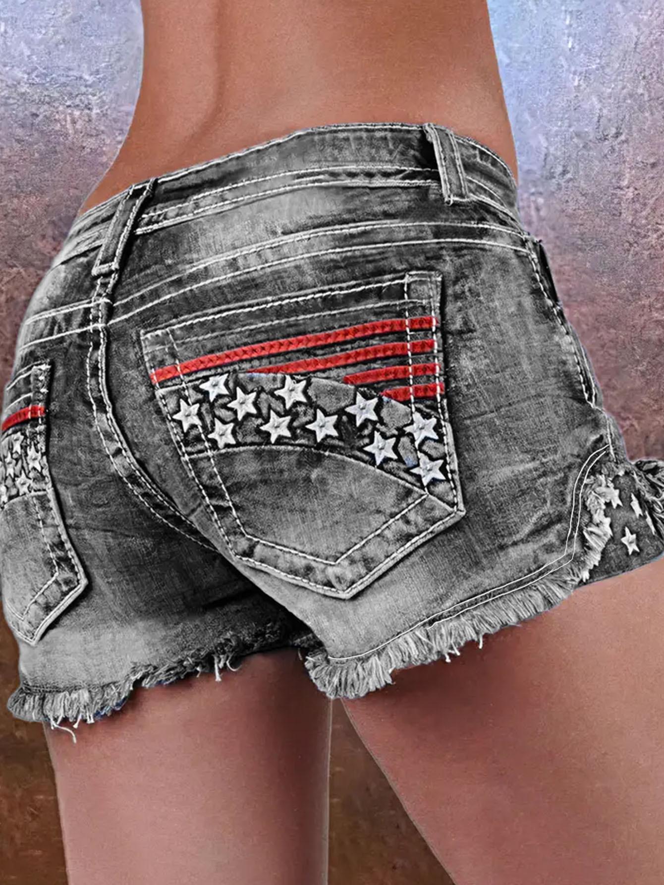 Shorts de mezclilla bordados para mujer Moda europea y americana Ins Popular Stretch Parche Mezclilla Bordados Rotos Shorts de mezclilla
