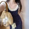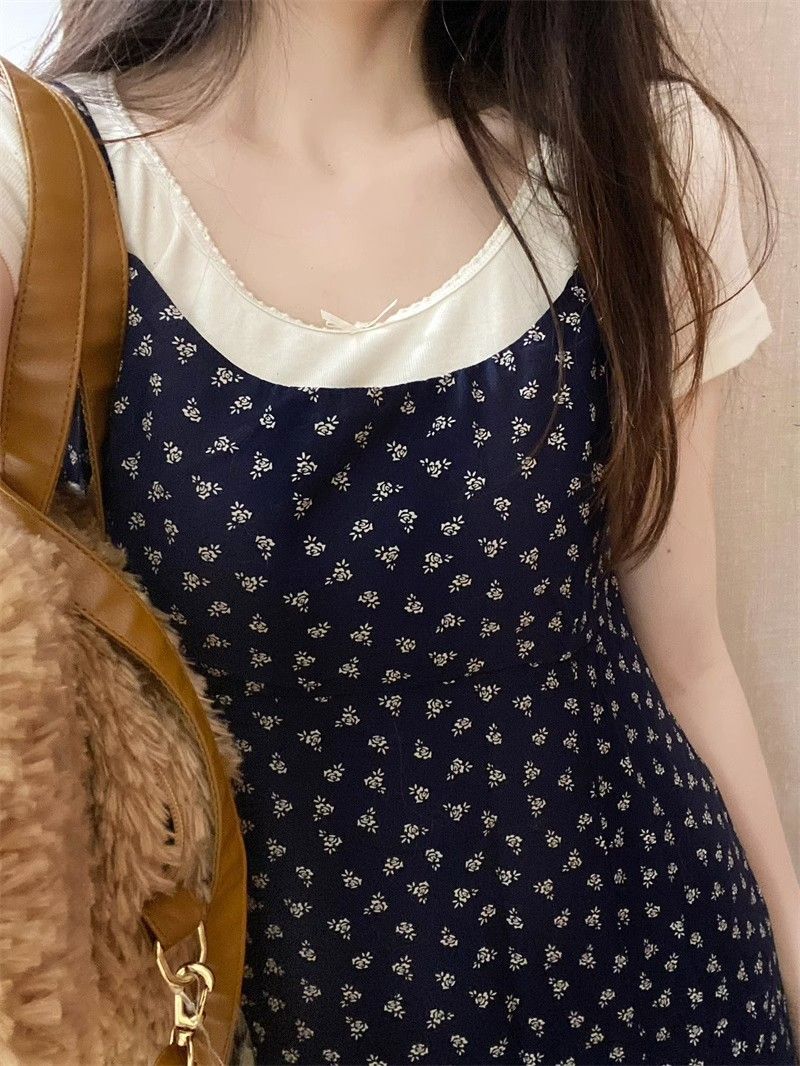 Conjunto de dos piezas formado por camiseta de manga corta y cuello redondo, para mujer, con encaje y lazo, estilo vintage floral, cintura ajustada y adelgazante