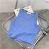 Chaleco de verano para mujer ajustado de cintura alta con abdomen descubierto, playera corta ajustada sin mangas para deporte