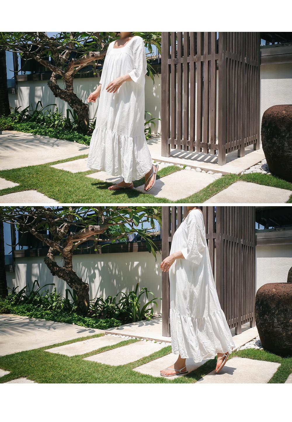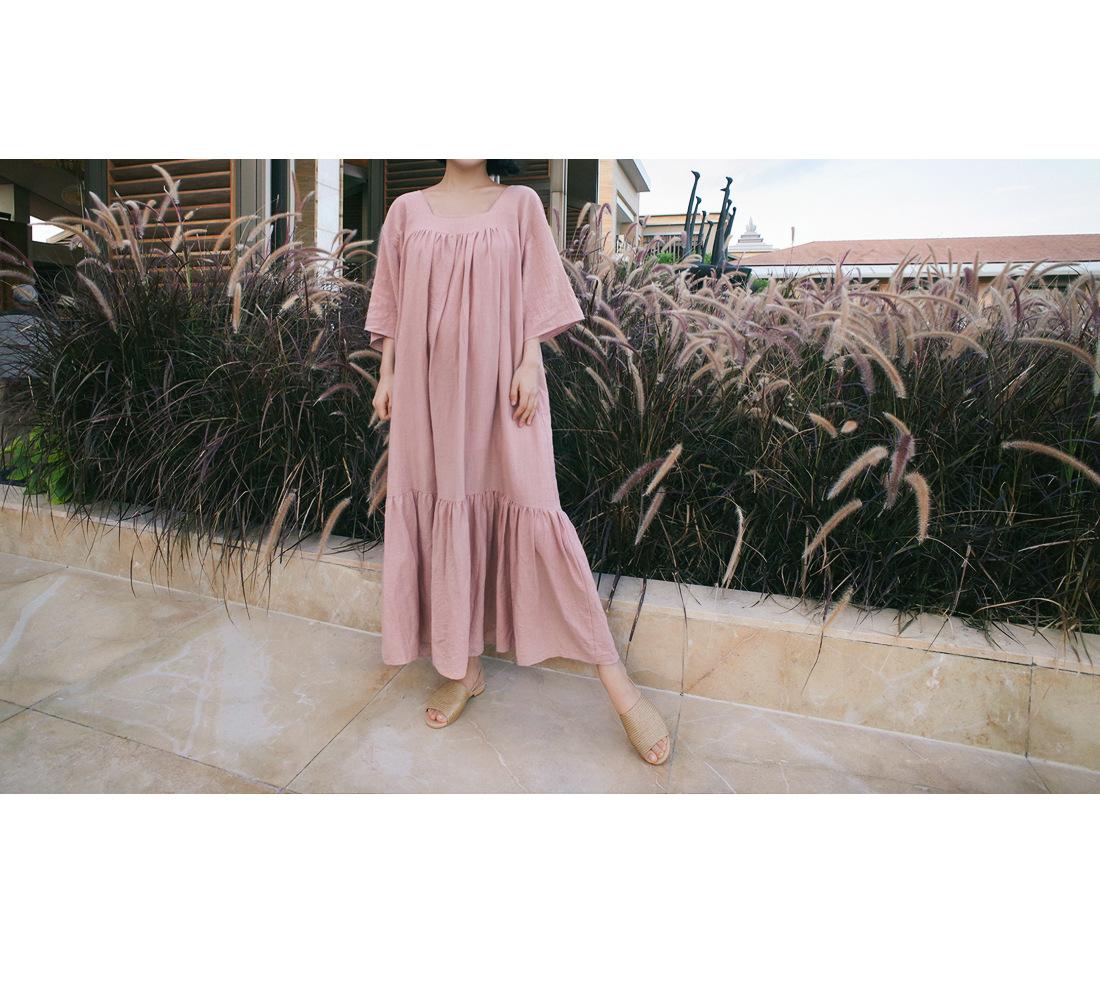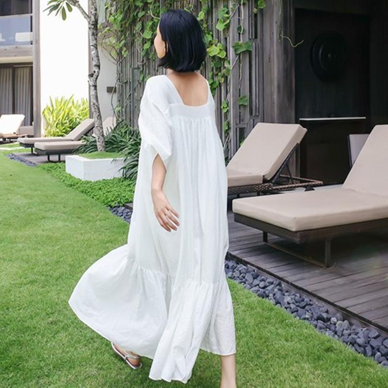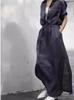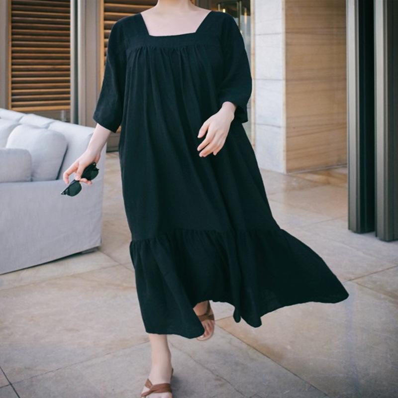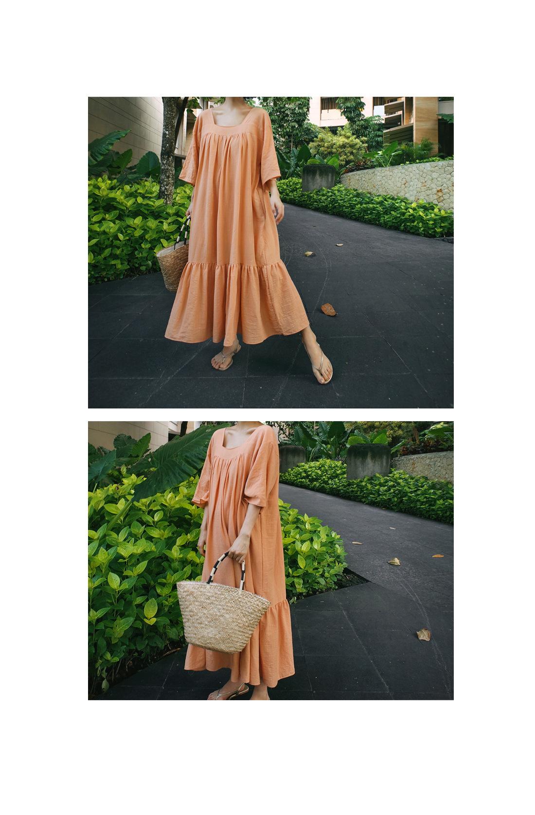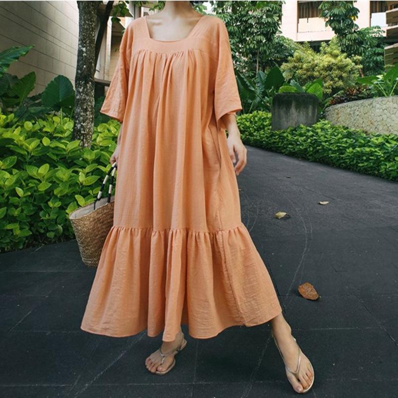Vestido de lino y algodón CSM con volantes, escote pronunciado y espalda descubierta, falda de lino holgada de estilo coreano de longitud media para mujer