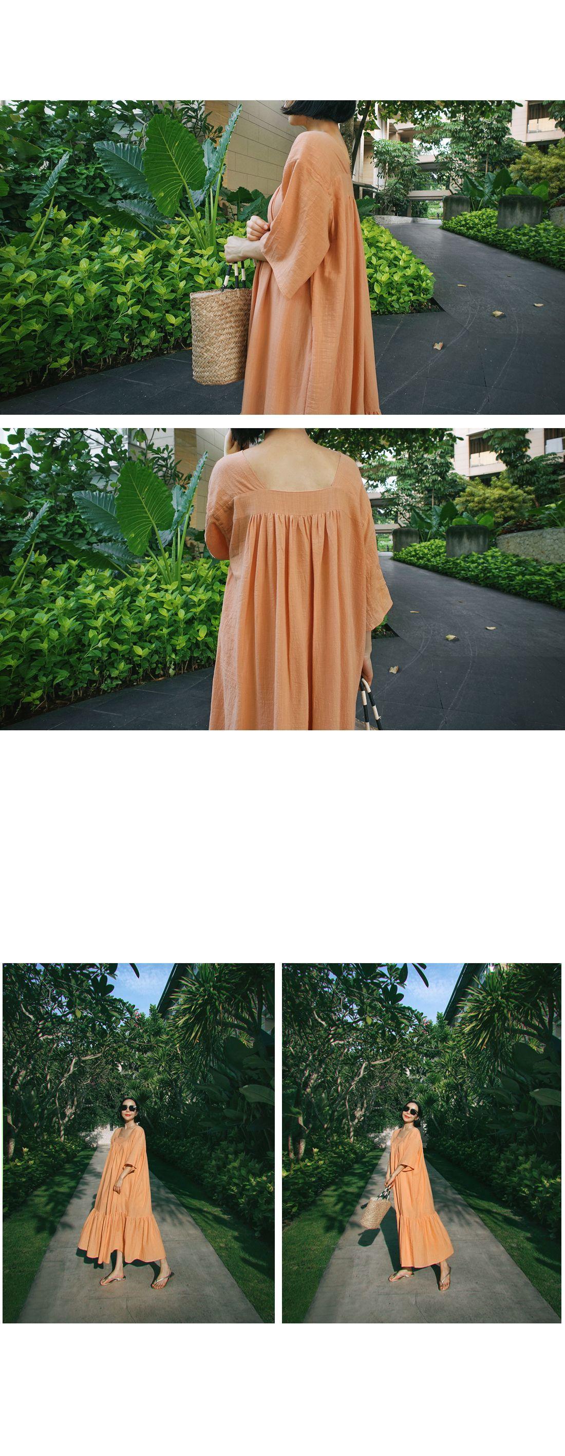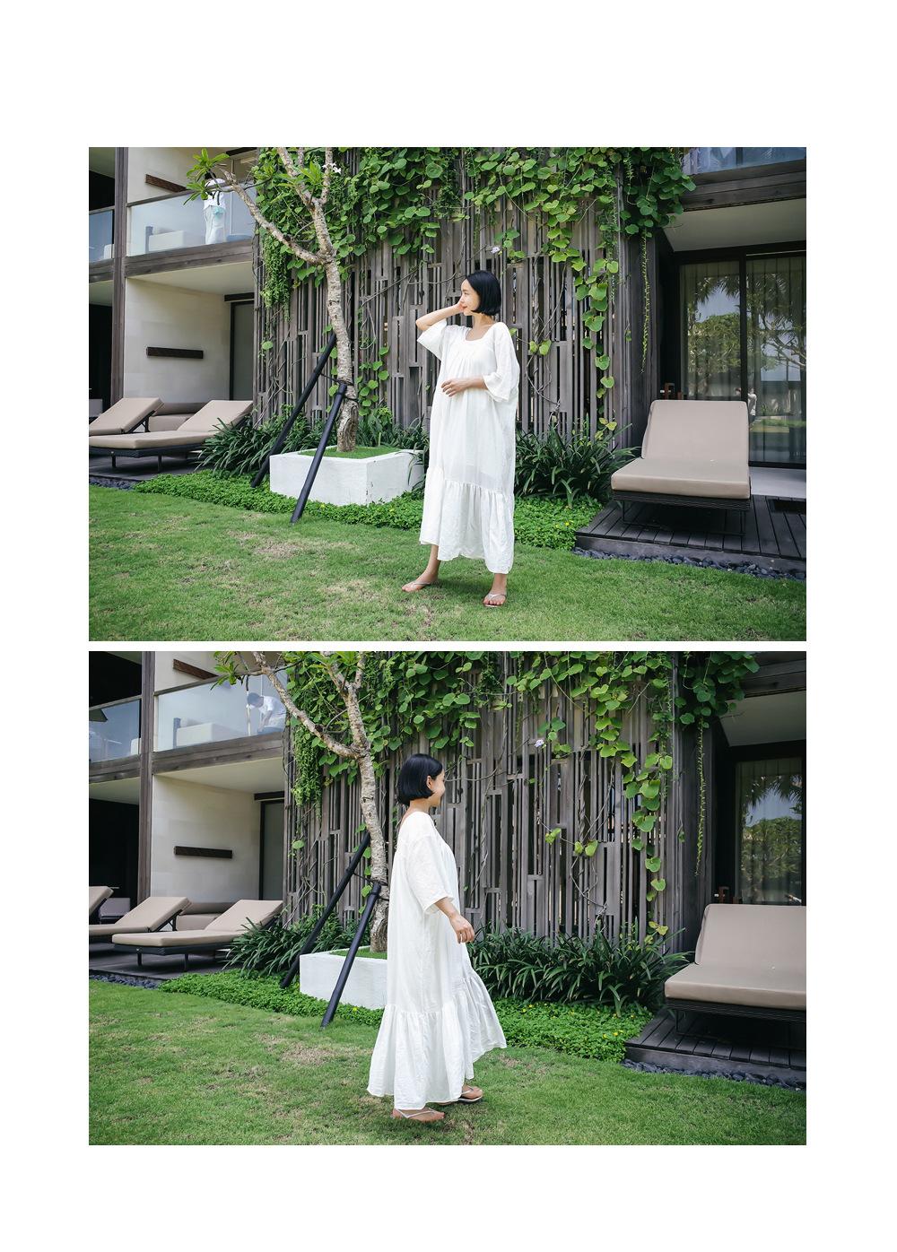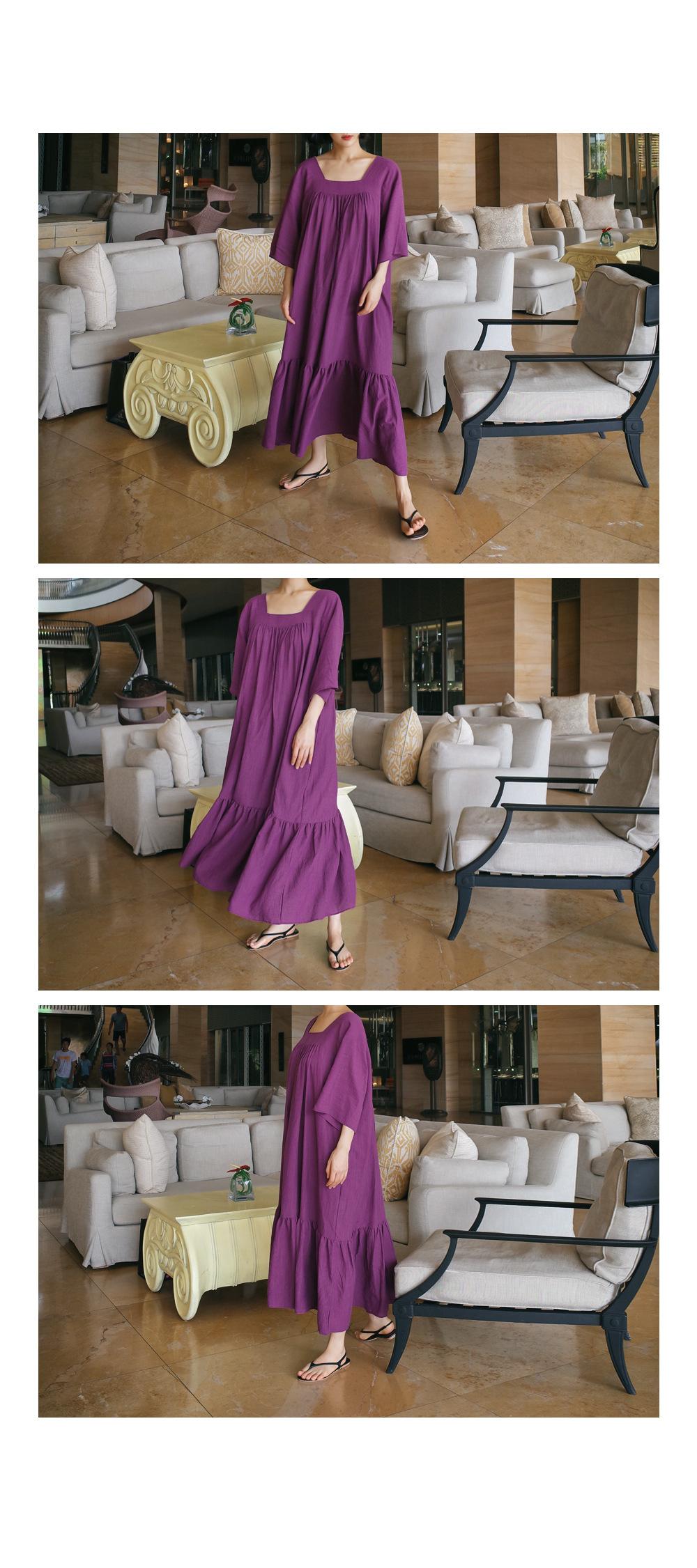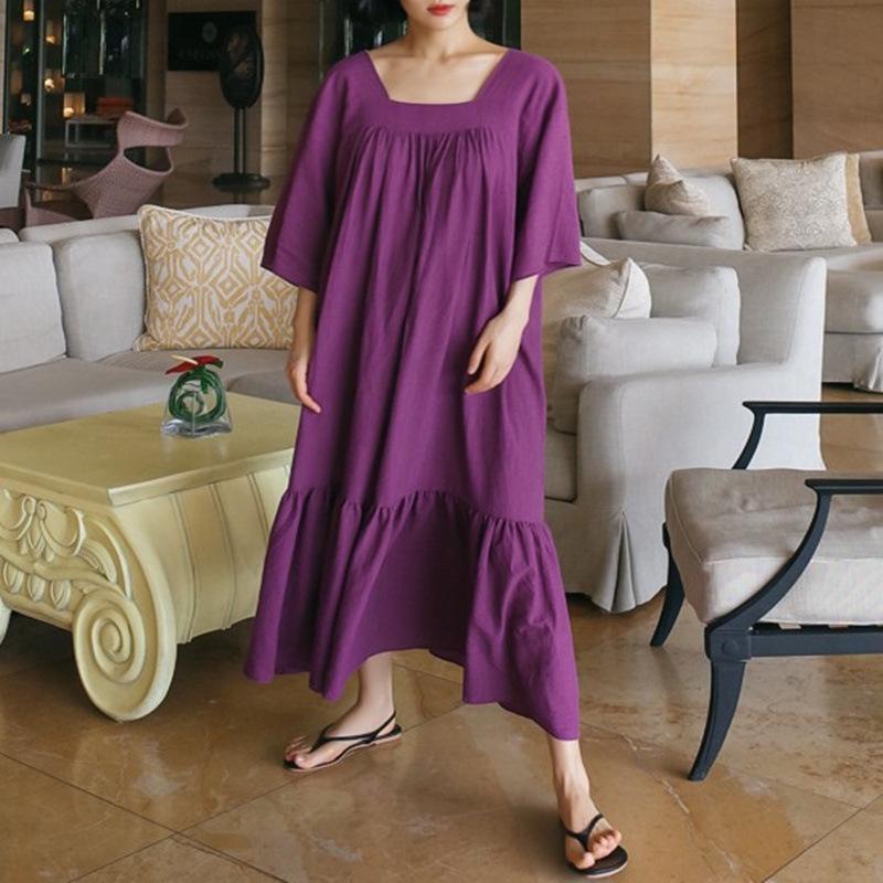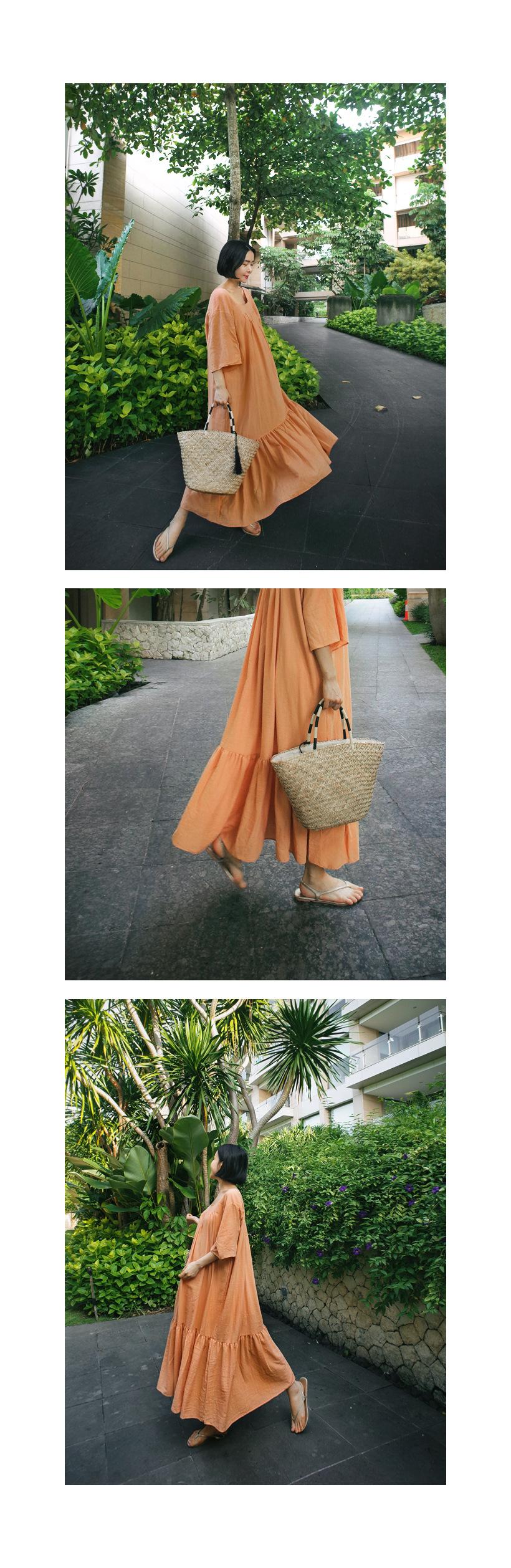 Vestido de lino y algodón CSM con volantes, escote pronunciado y espalda descubierta, falda de lino holgada de estilo coreano de longitud media para mujer
