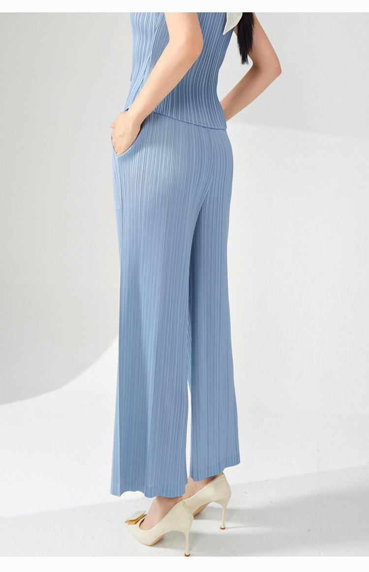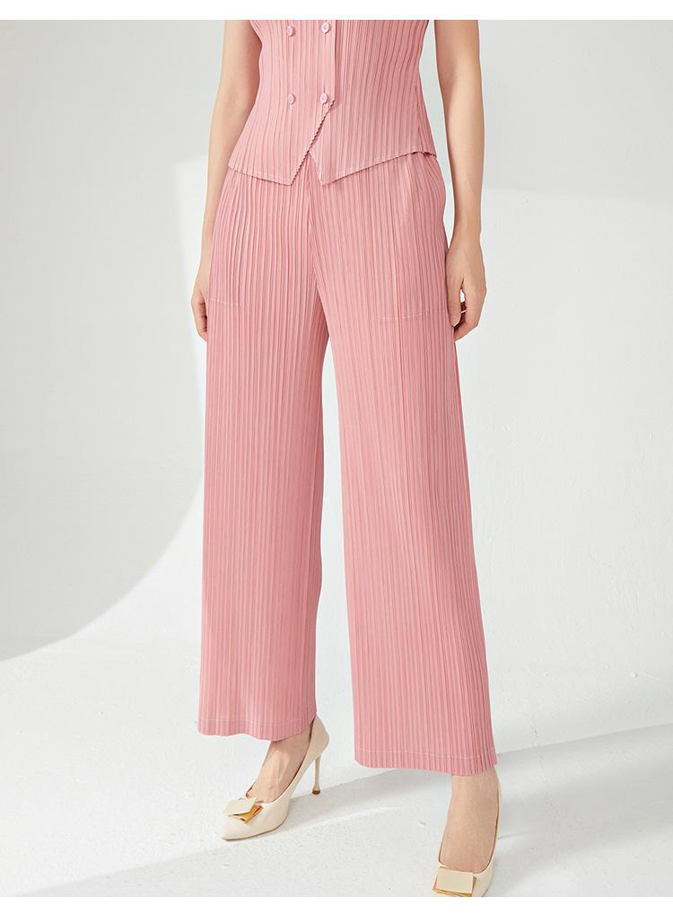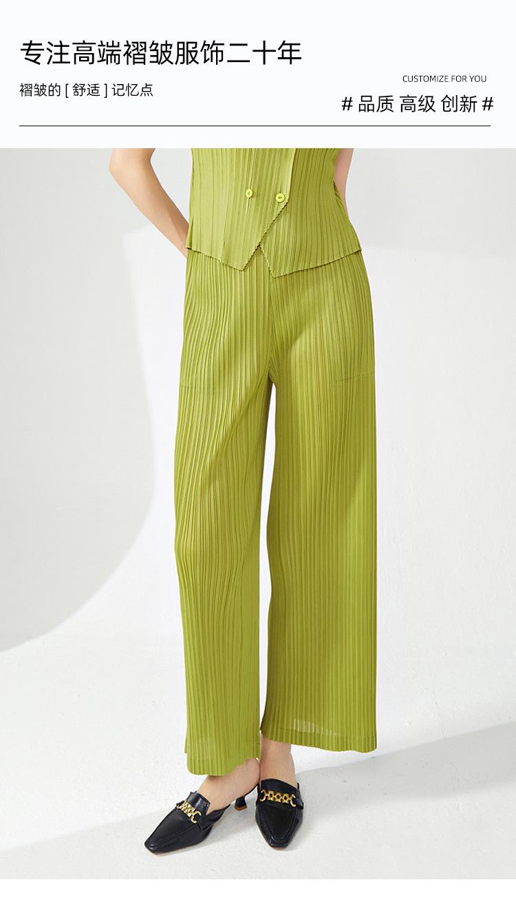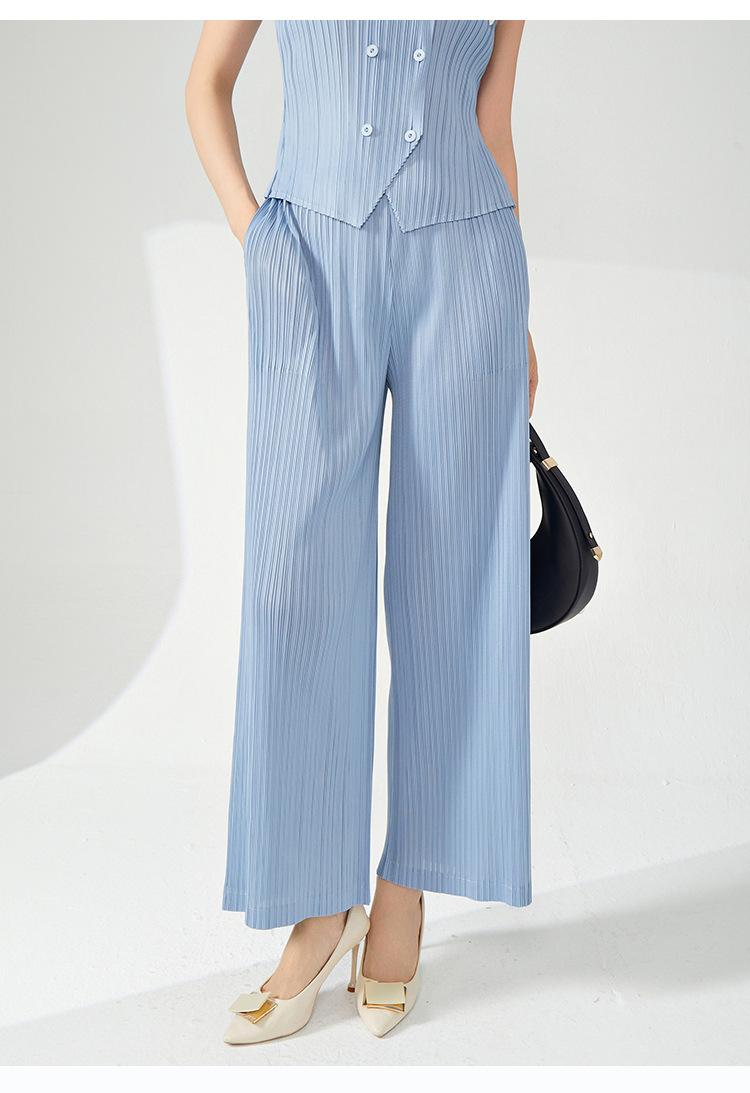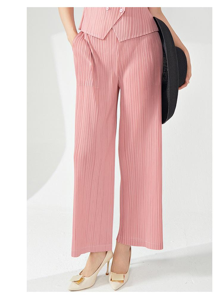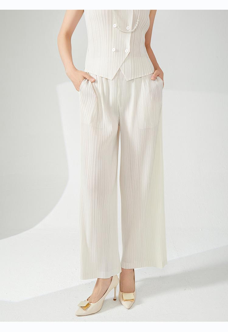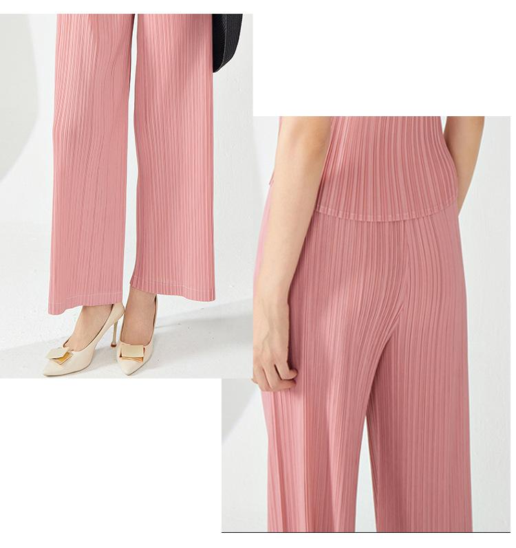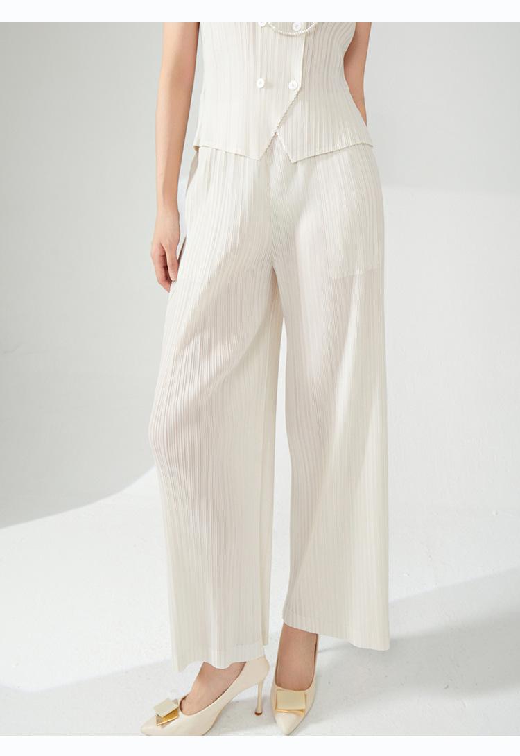 Pantalones rectos holgados de pierna ancha Miyake para mujer de cintura alta para verano delgados plisados versátiles de gran venta casuales