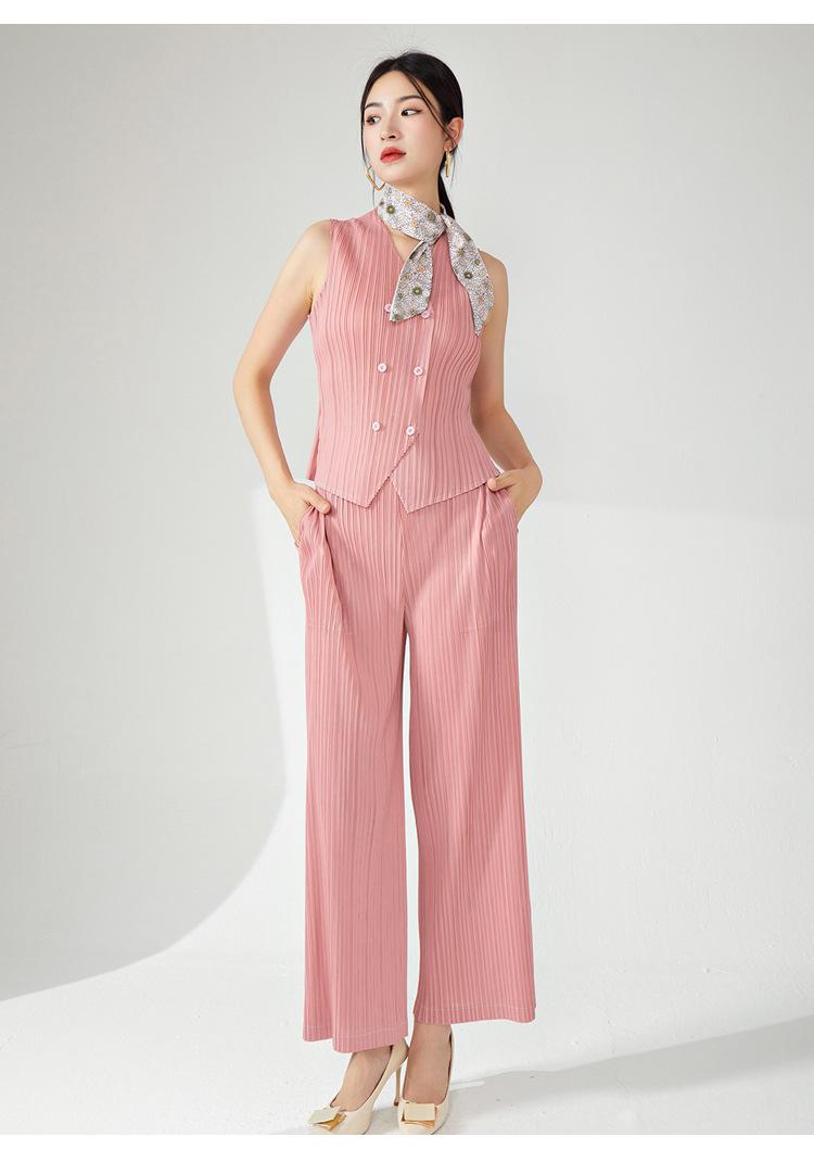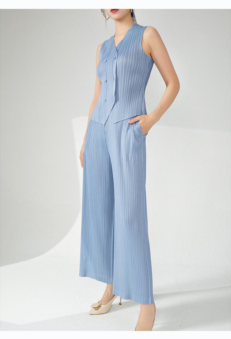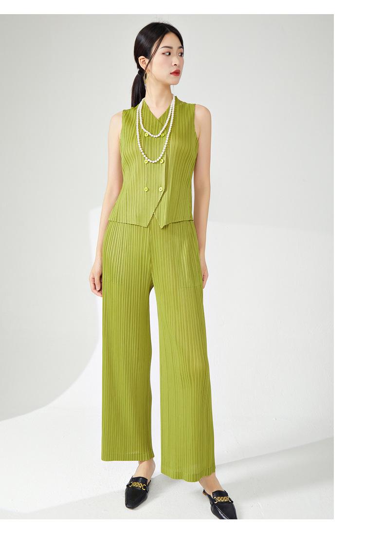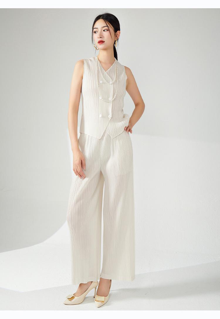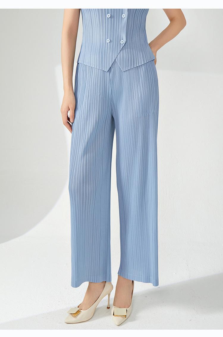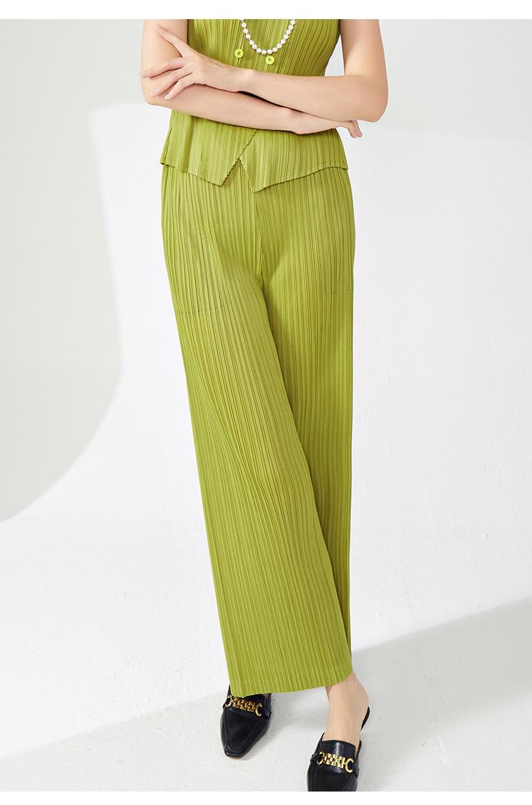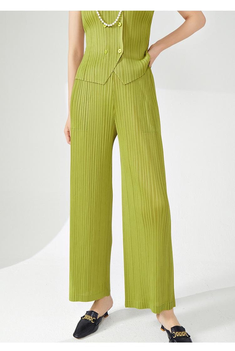 Pantalones rectos holgados de pierna ancha Miyake para mujer de cintura alta para verano delgados plisados versátiles de gran venta casuales