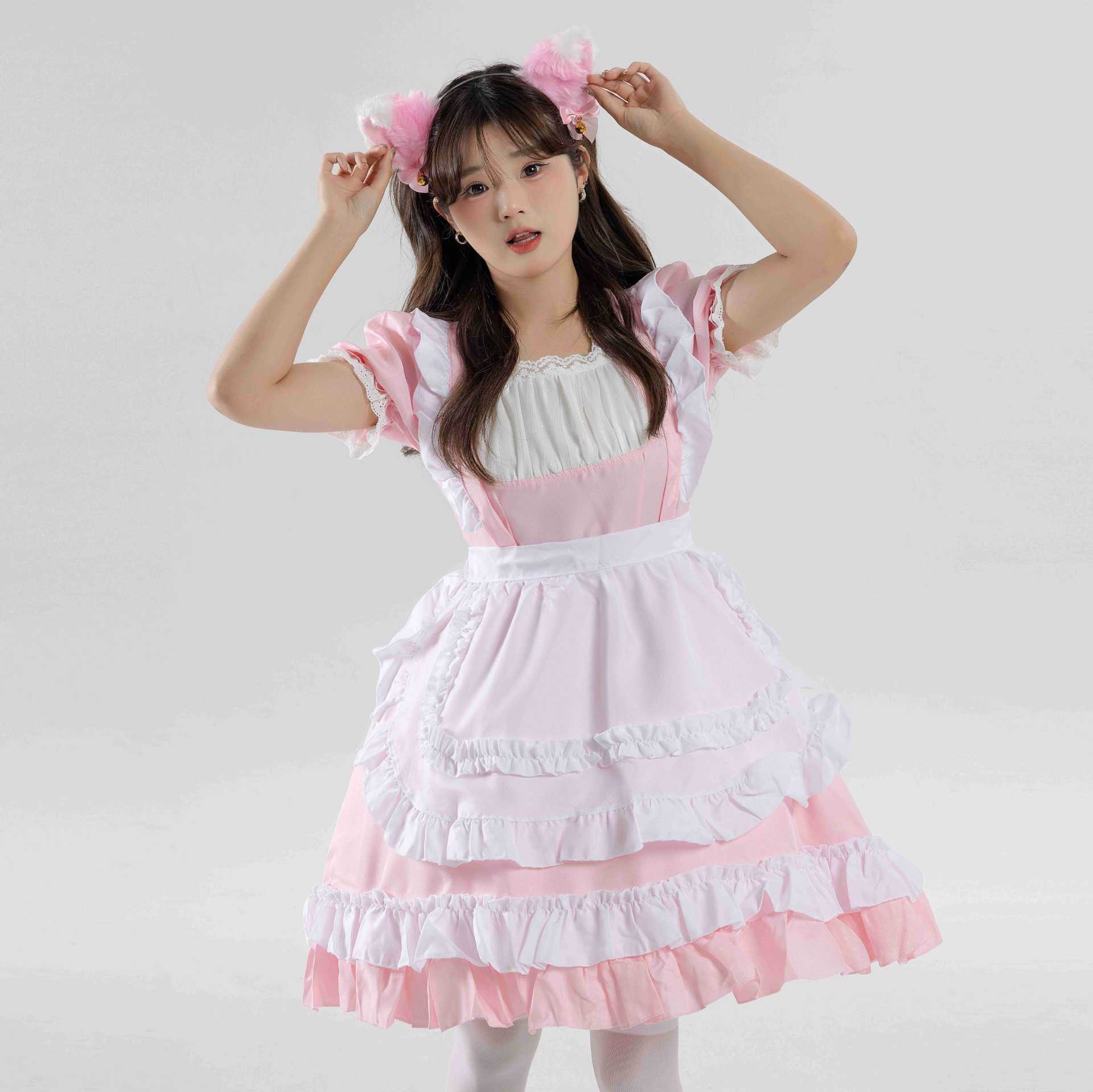 Disfraz de Maid Lolita de Anime Japonés Original para Mujer Vestido Rosa Traje de Disfraz de Cosplay Lori Ropa de Mujer