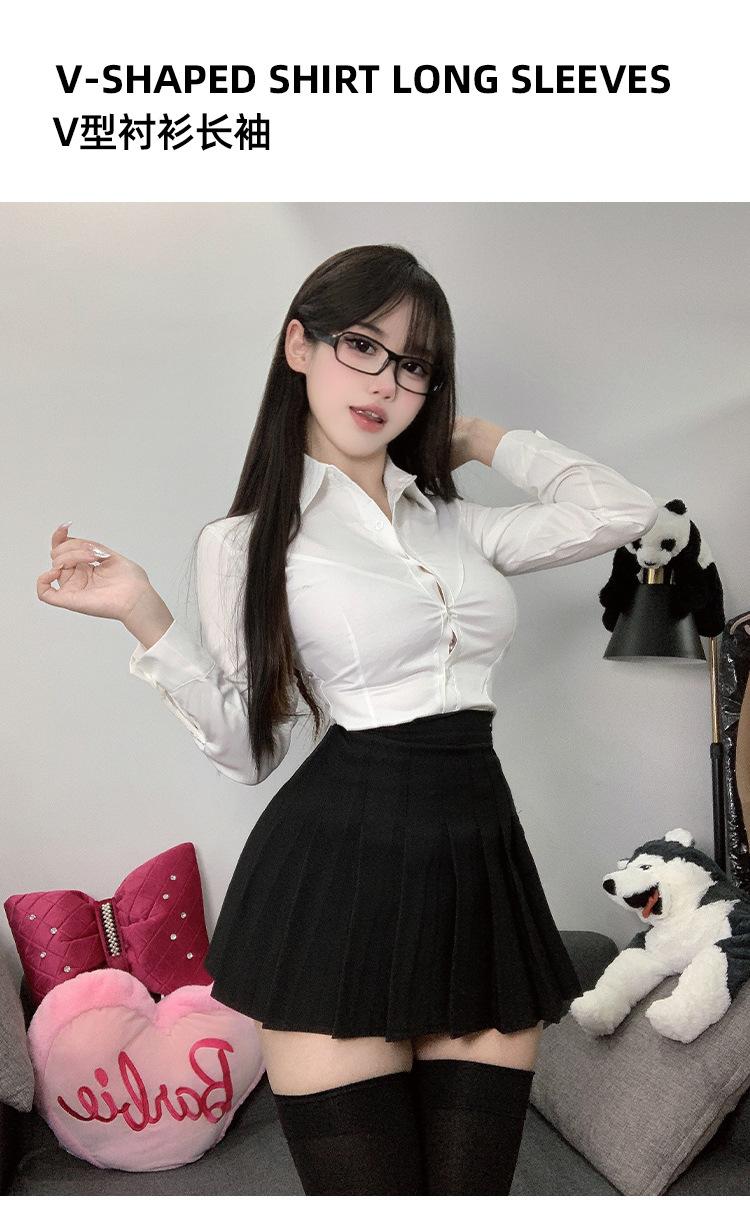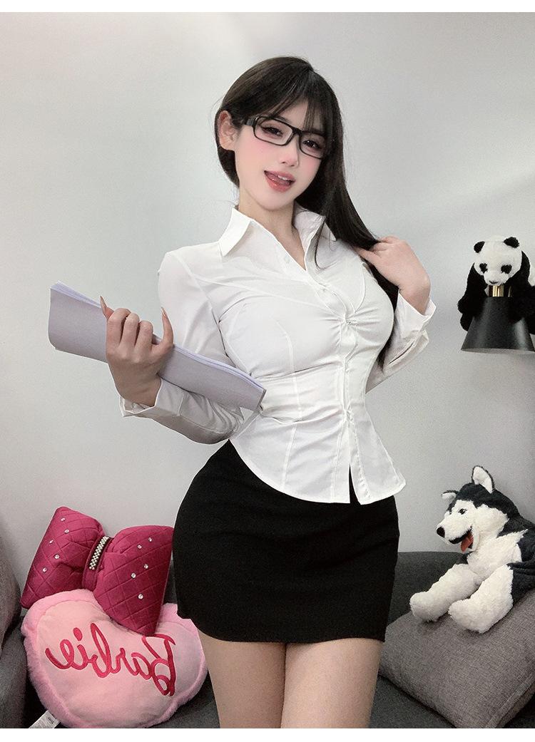 Short sleeve shirt, Long sleeve shirt, Black skirt, Khaki short skirt, Dark gray short skirt