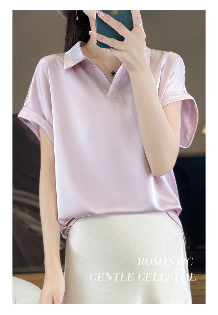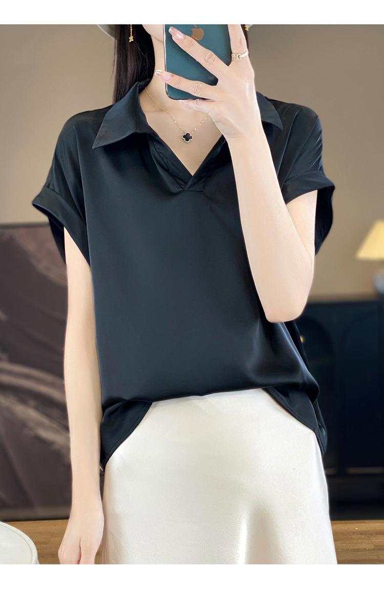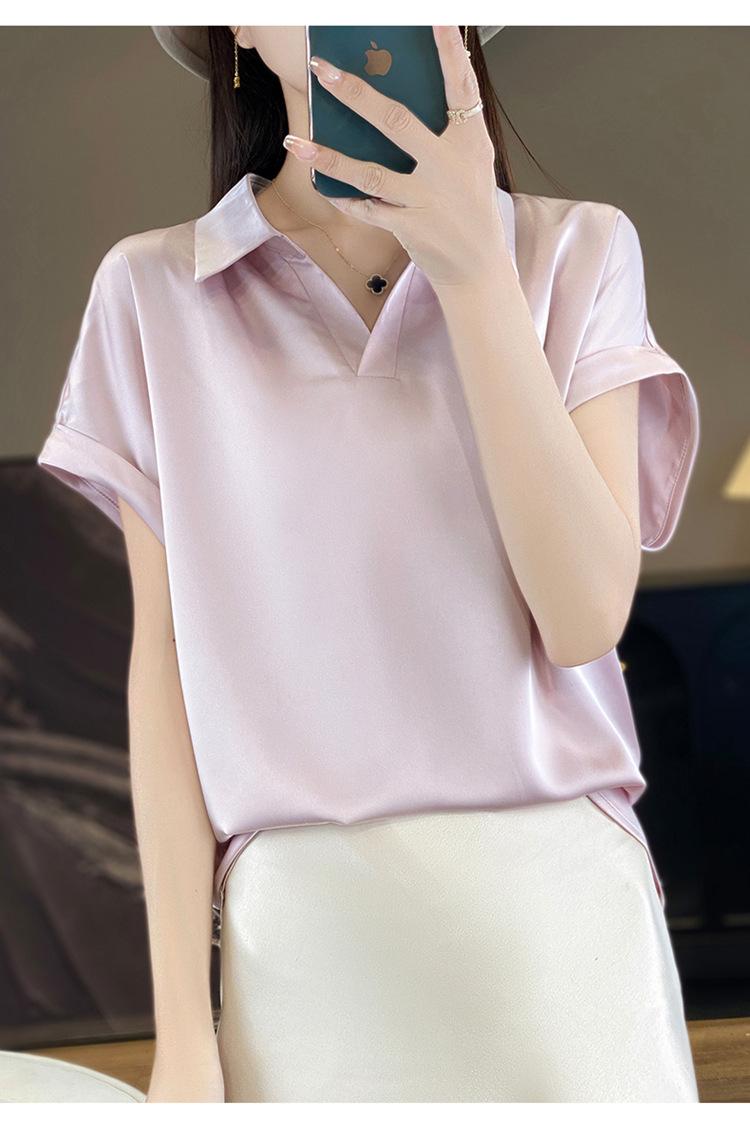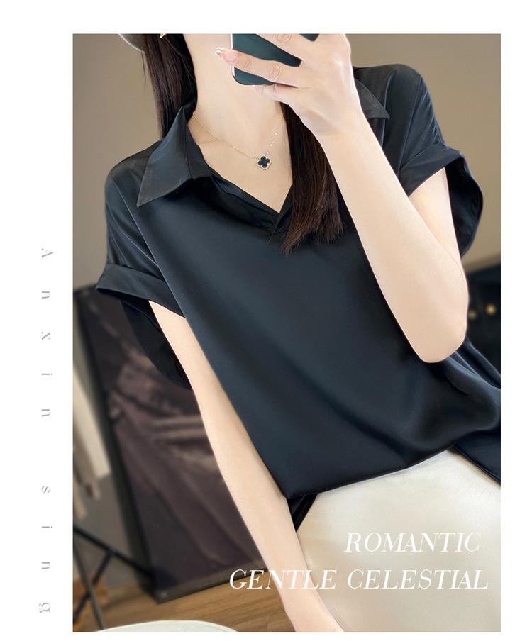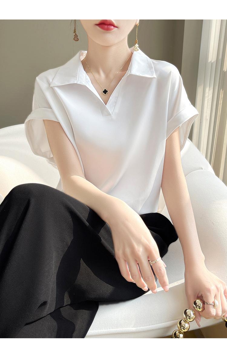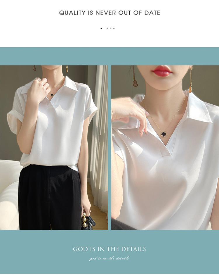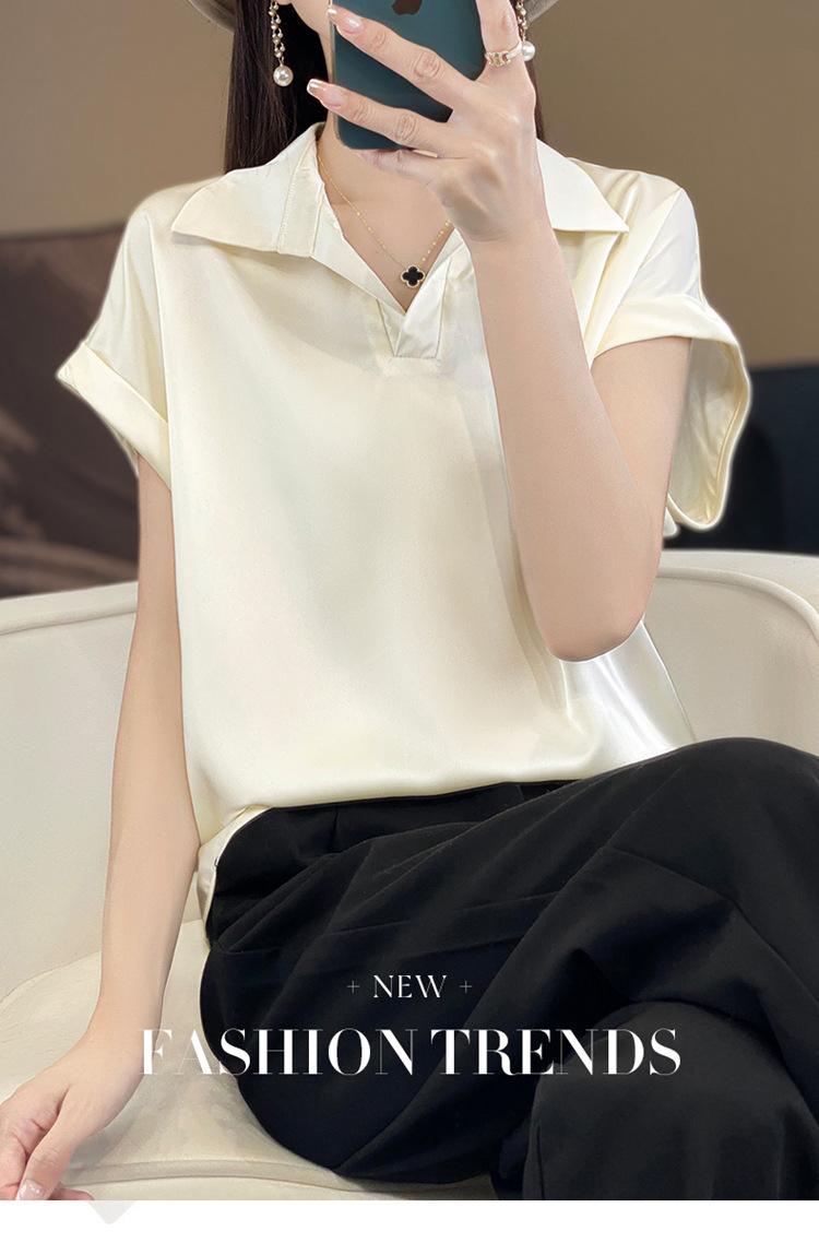 Camisa de manga corta estilo occidental de nicho francés para mujer, verano 2024, con solapa sencilla, camisa profesional, top de viajero que combina con todo