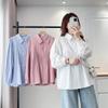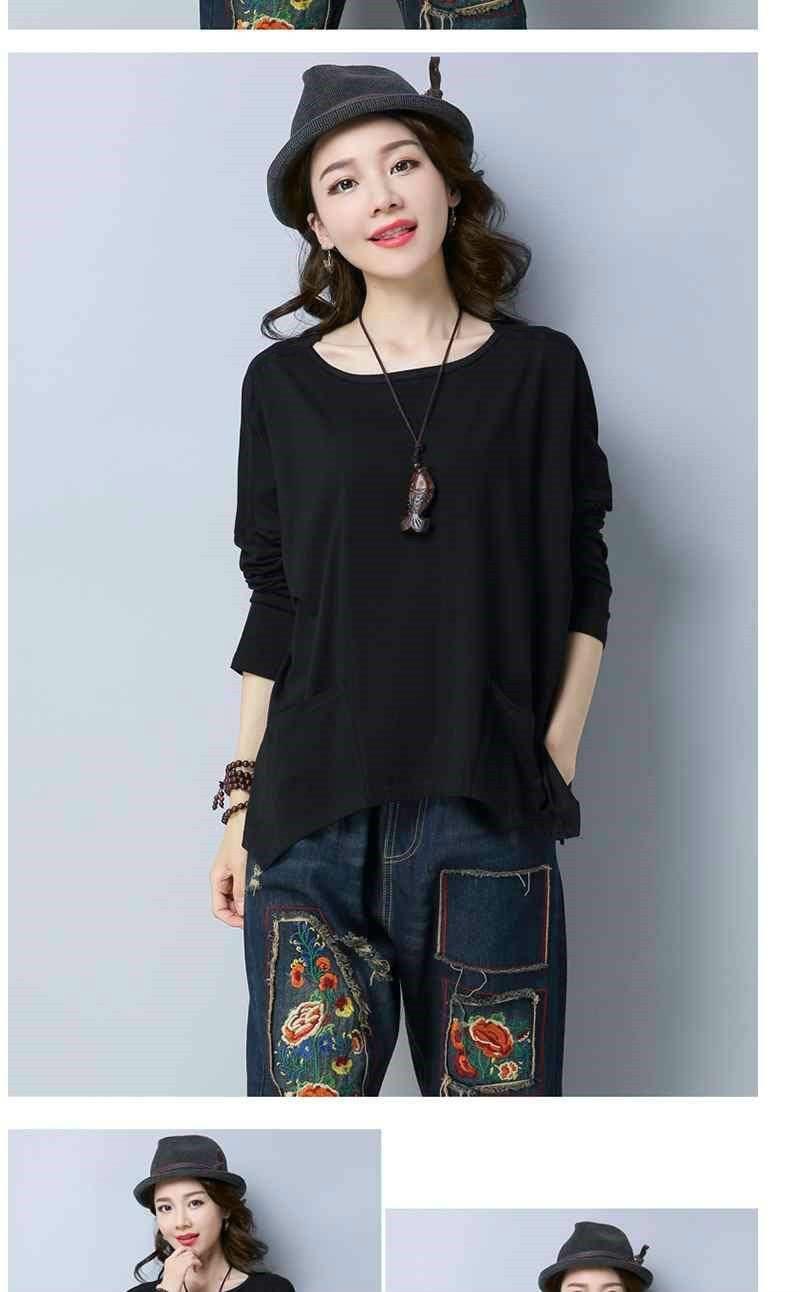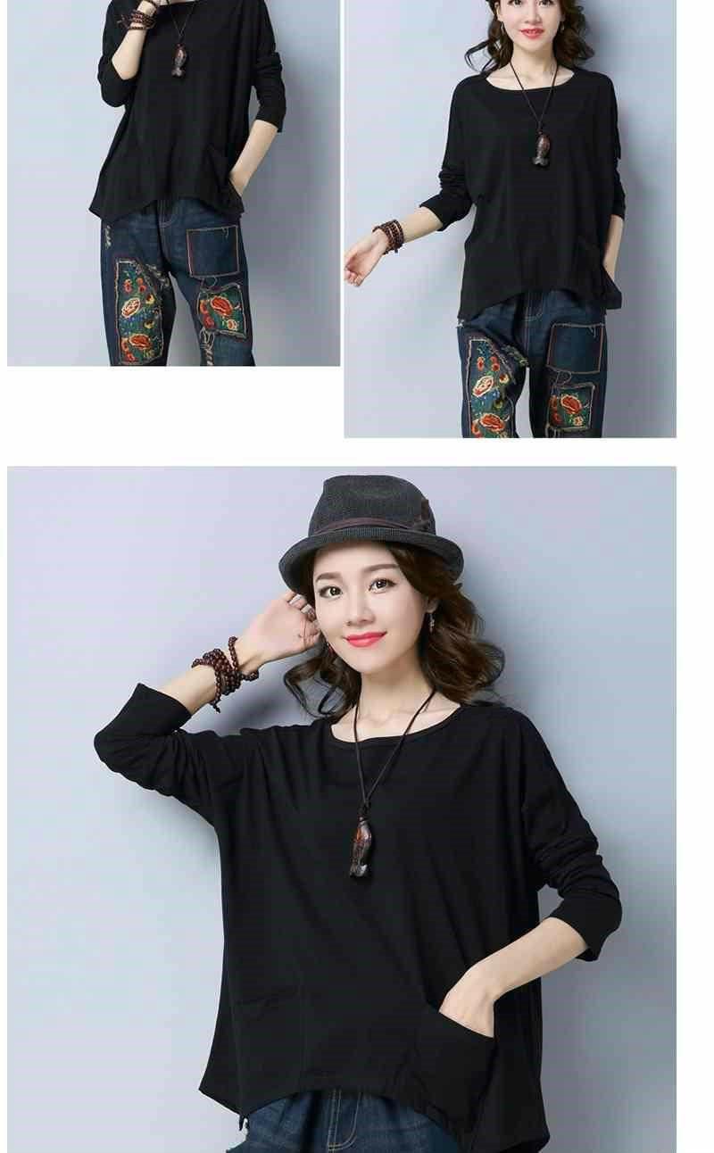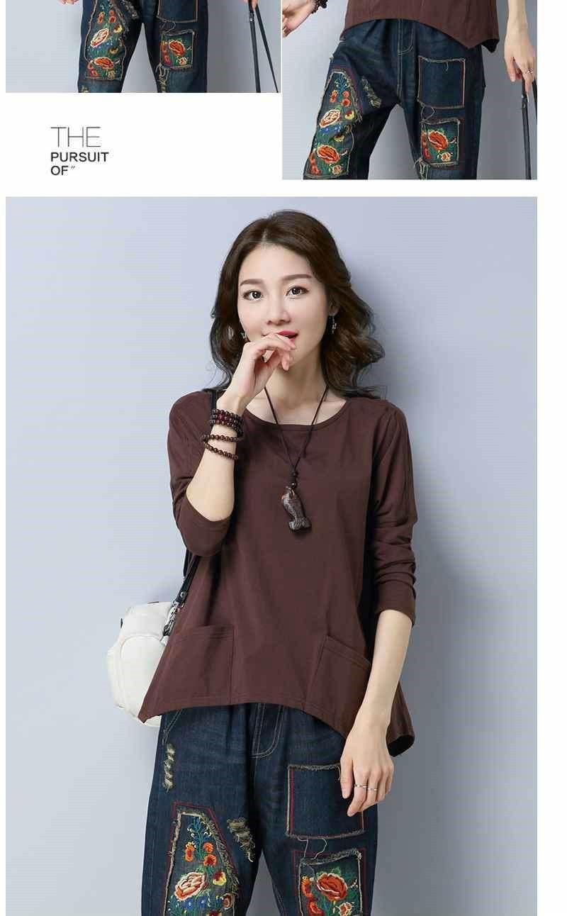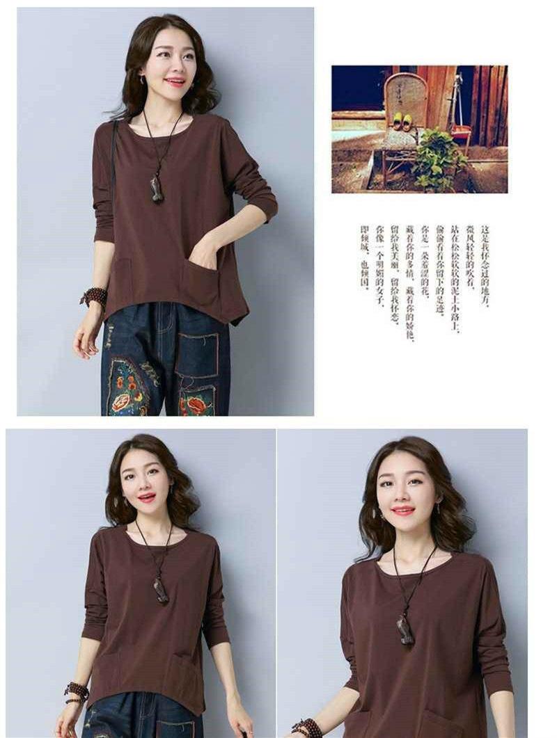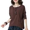 Color Sólido Talla Grande Diseño para Mujer Pantalones con Bolsillo de Solapa Camiseta de Manga Larga Ropa de Otoño para Mujer 2025 Nuevo Top Suelto Retro Simple
