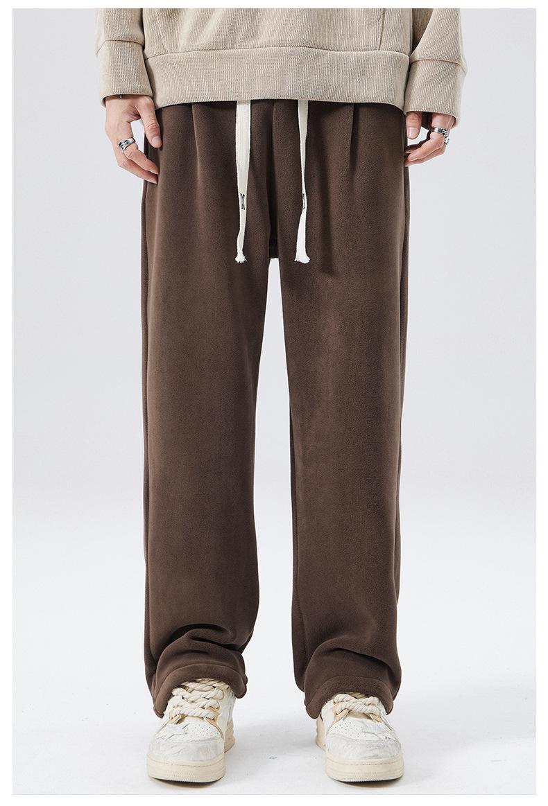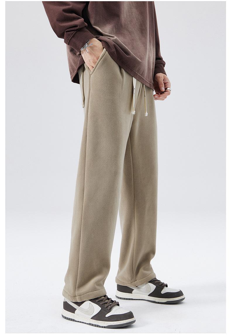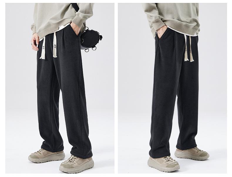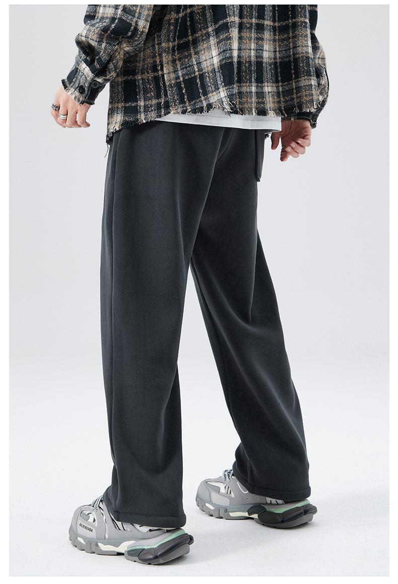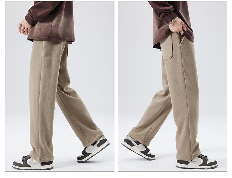 Pantalones de Forro Polar de Doble Cara de Peso Pesado para Hombre, Pantalones Casuales Gruesos de Invierno, Pantalones Cálidos de Pierna Recta Holgados para Estudiantes