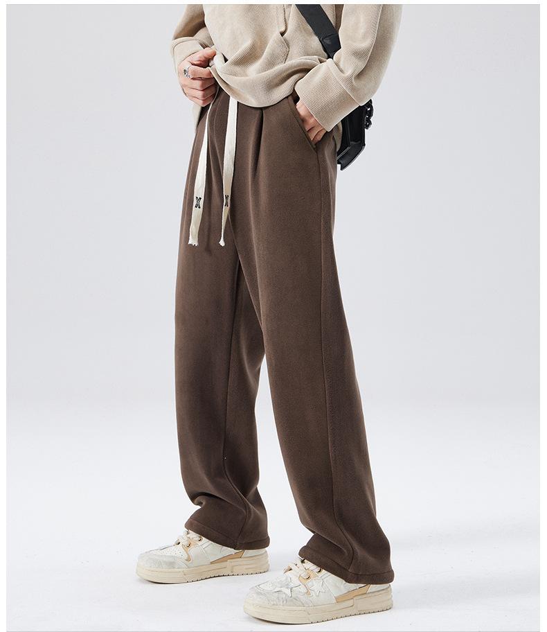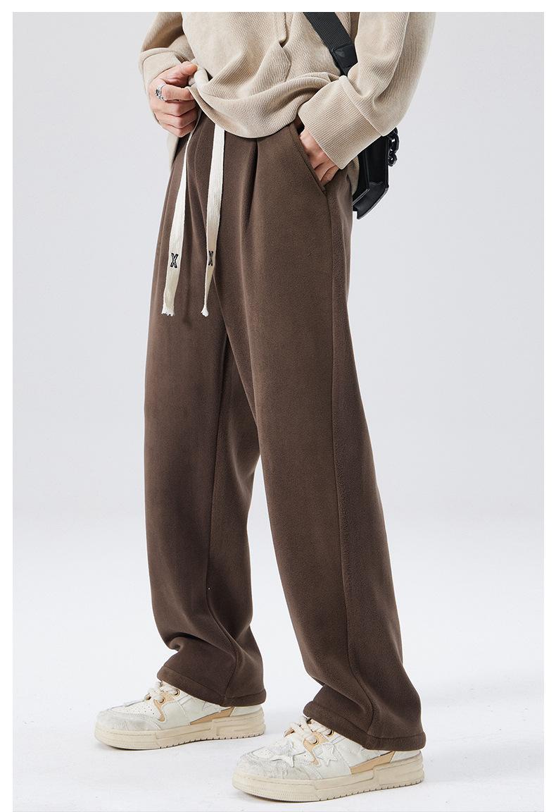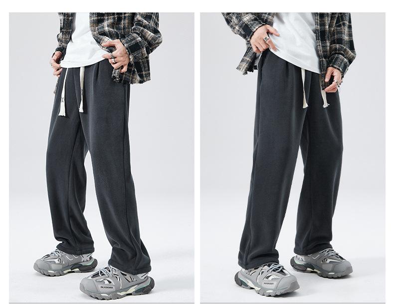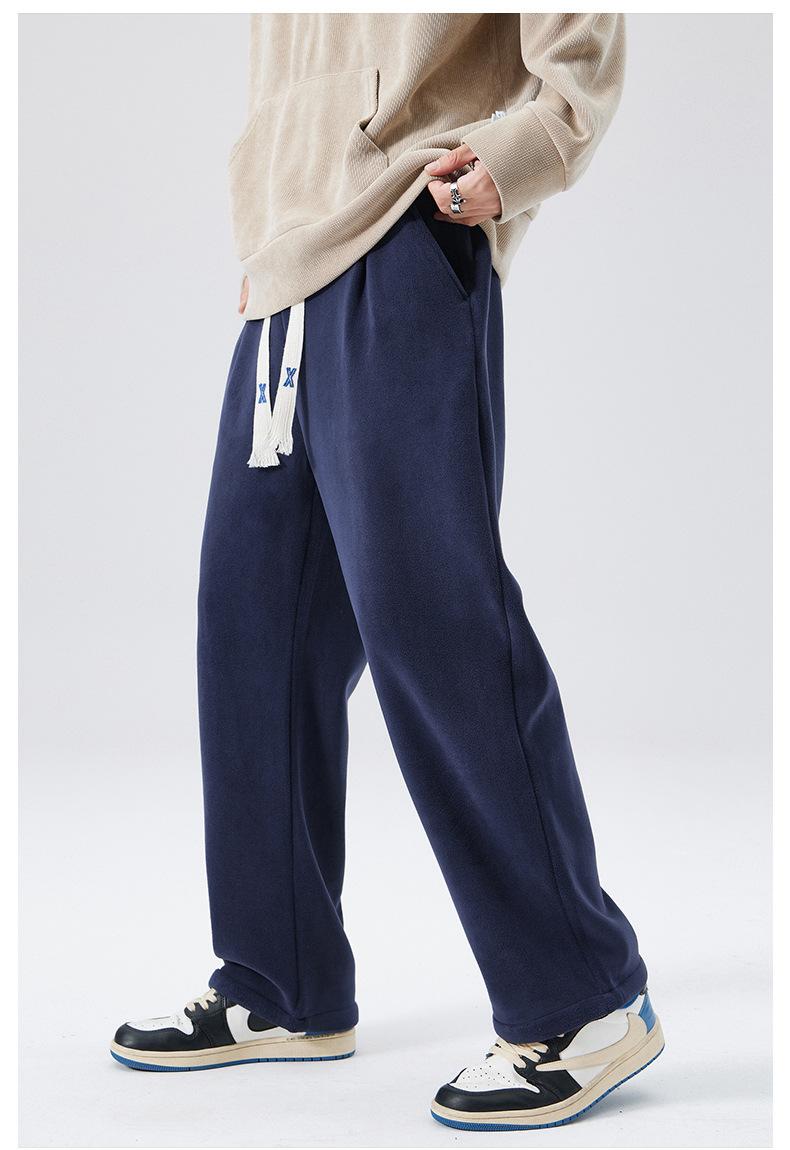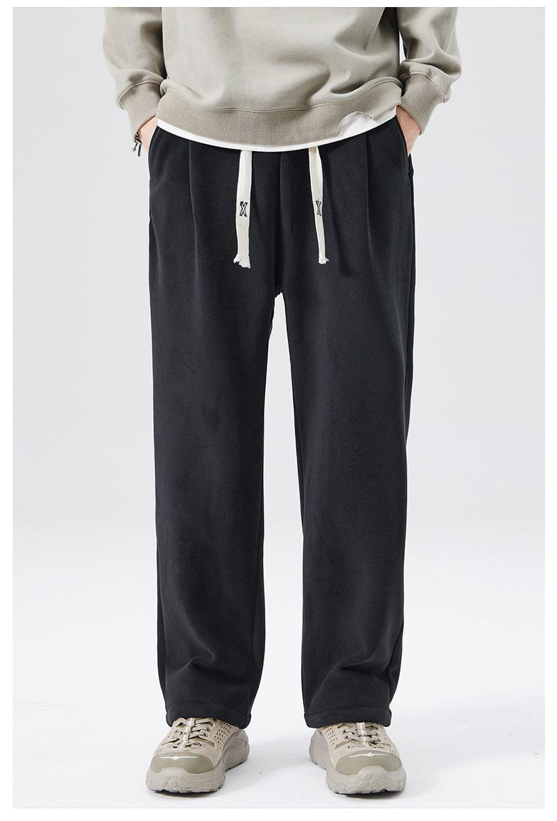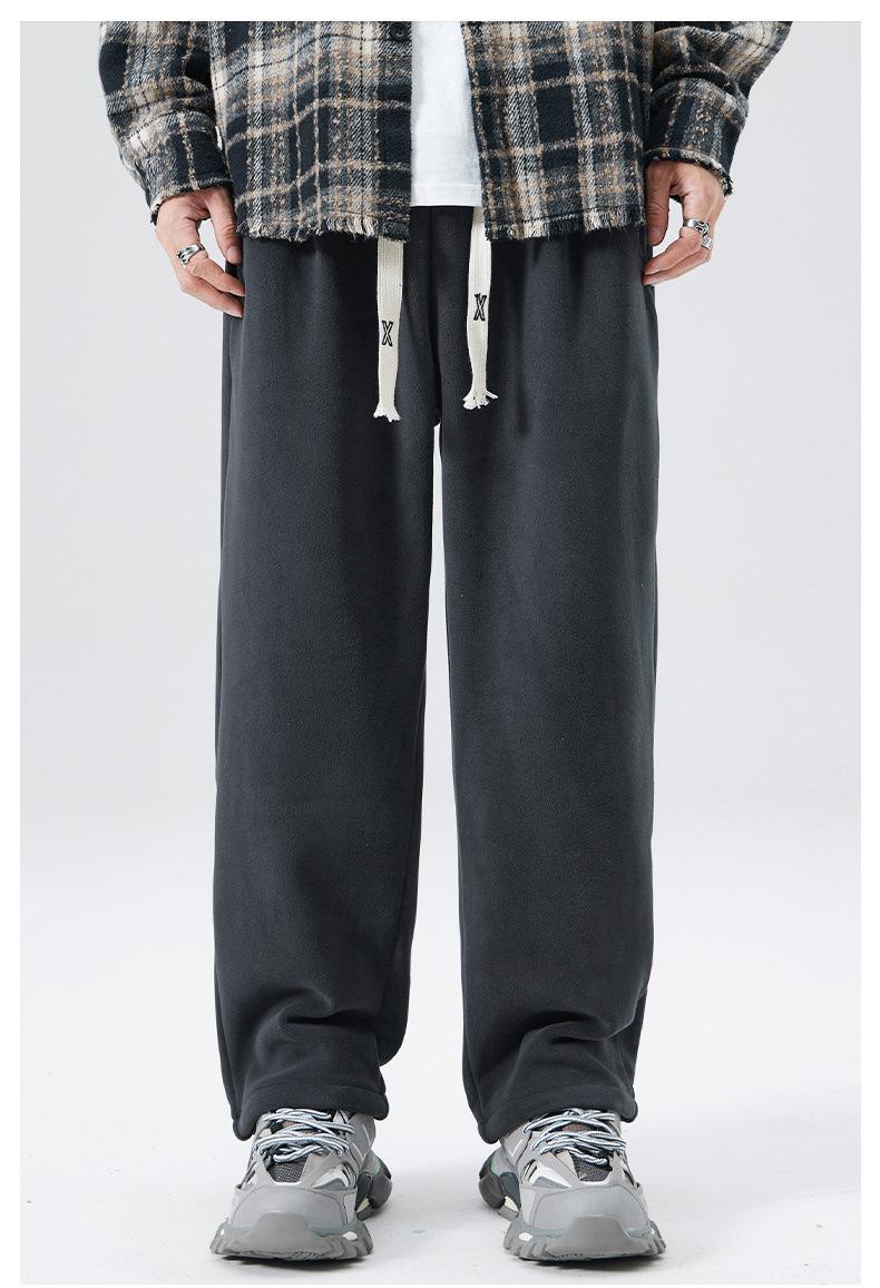 Pantalones de Forro Polar de Doble Cara de Peso Pesado para Hombre, Pantalones Casuales Gruesos de Invierno, Pantalones Cálidos de Pierna Recta Holgados para Estudiantes