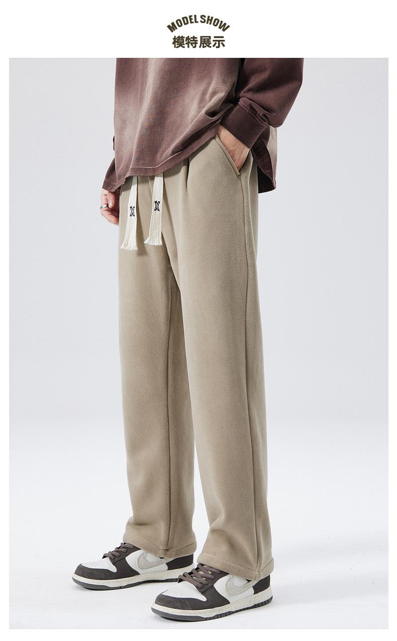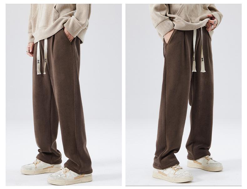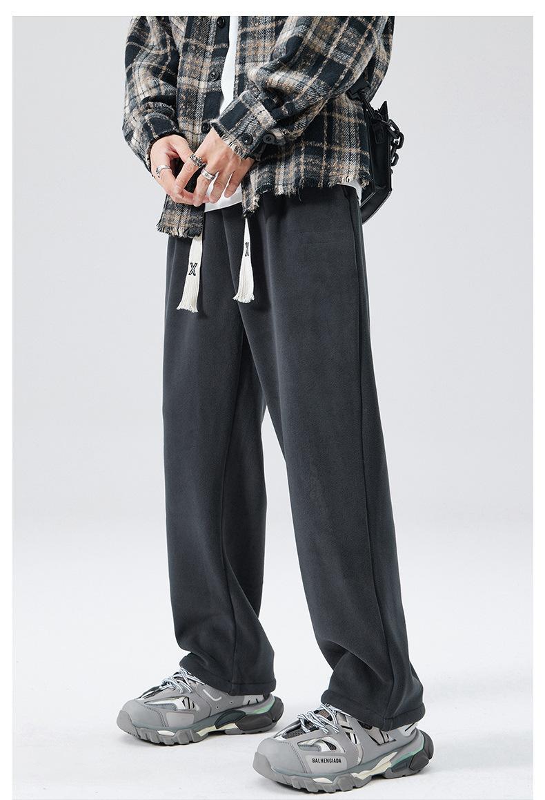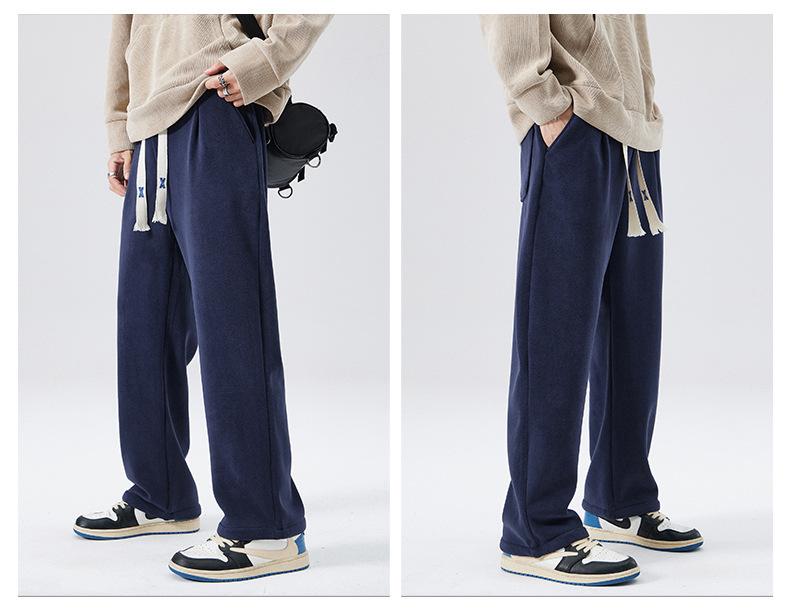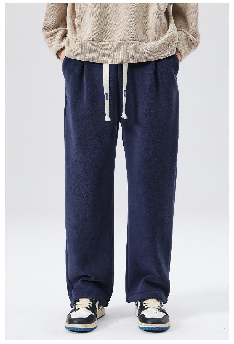Pantalones de Forro Polar de Doble Cara de Peso Pesado para Hombre, Pantalones Casuales Gruesos de Invierno, Pantalones Cálidos de Pierna Recta Holgados para Estudiantes