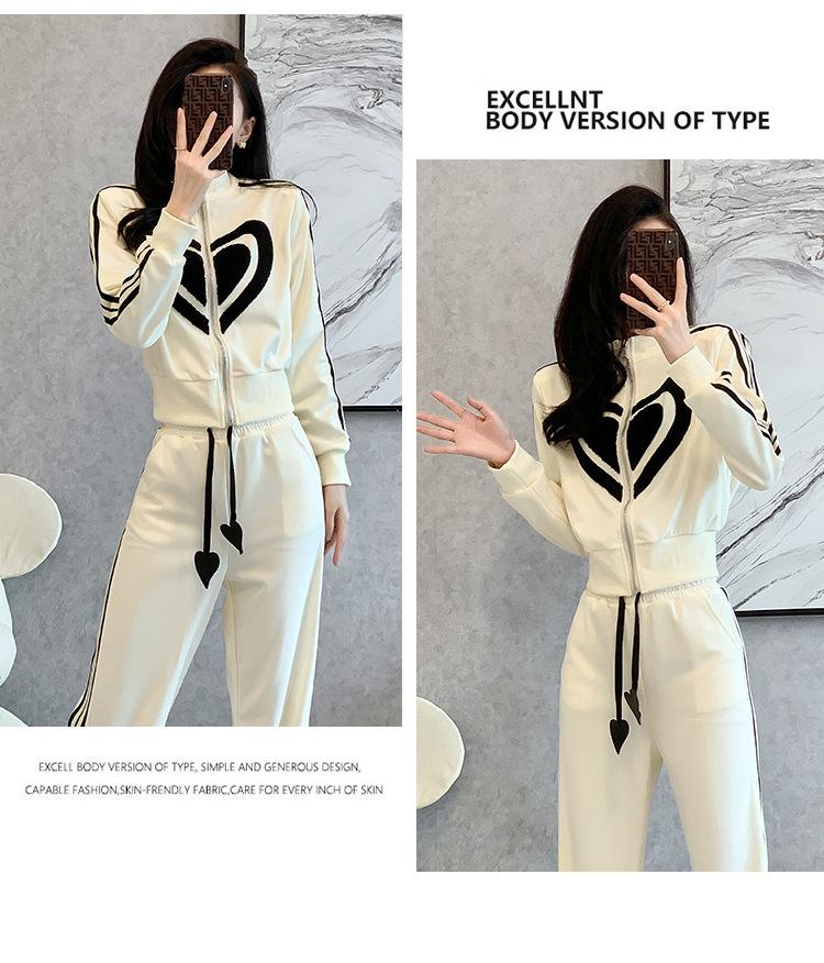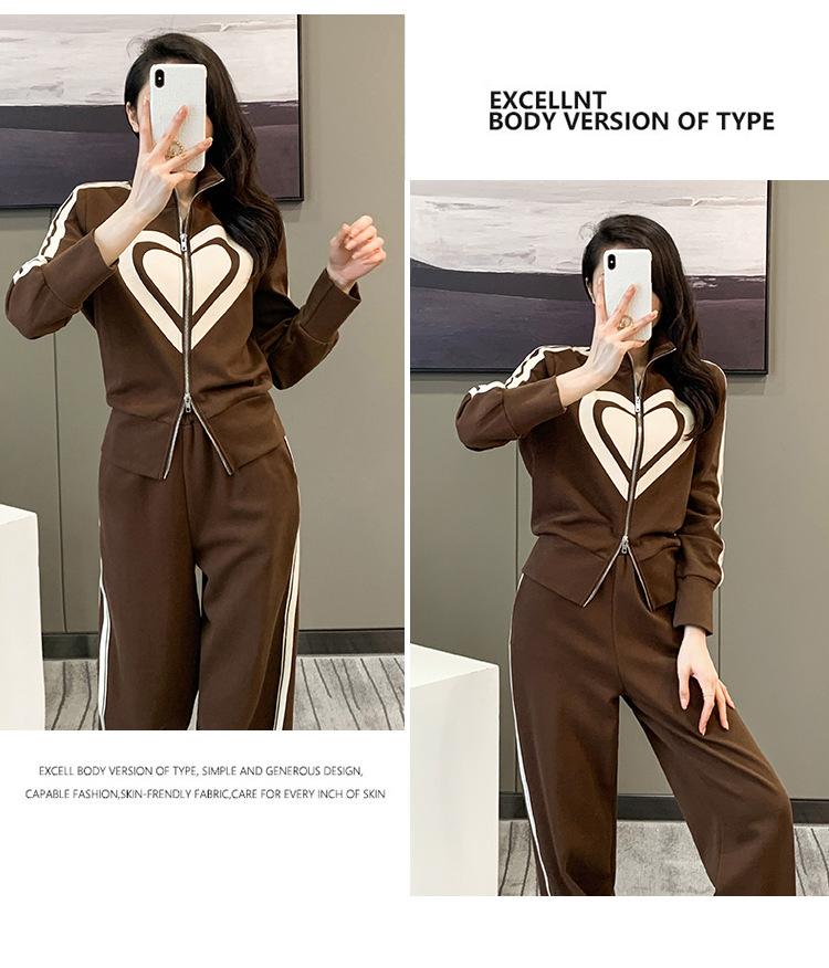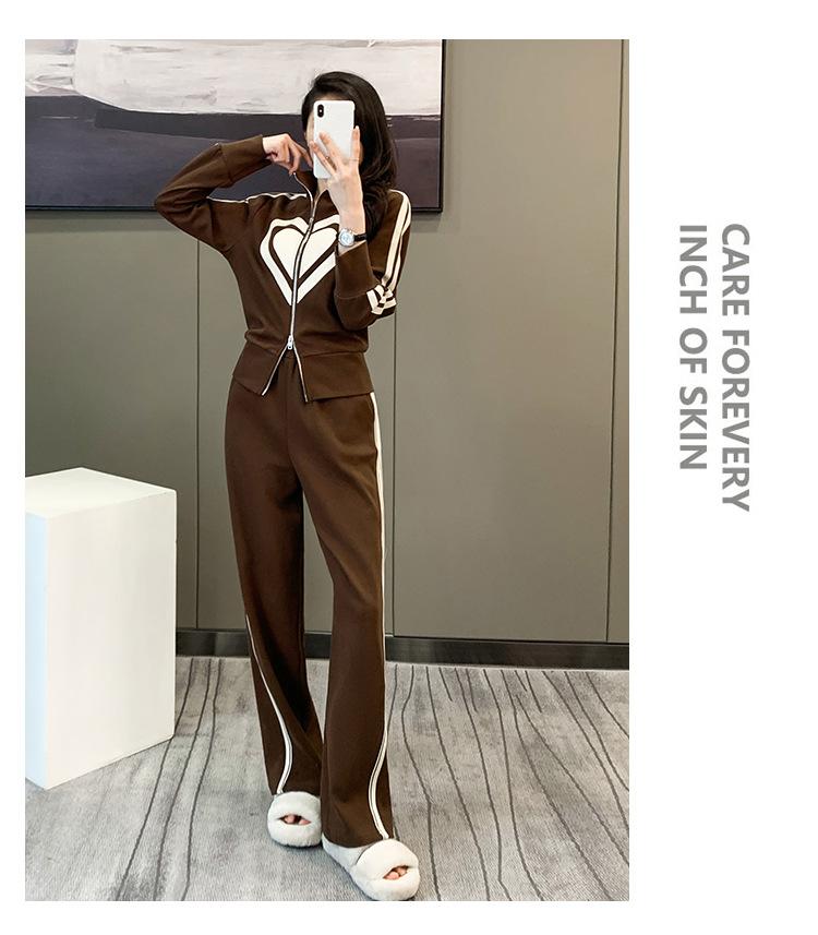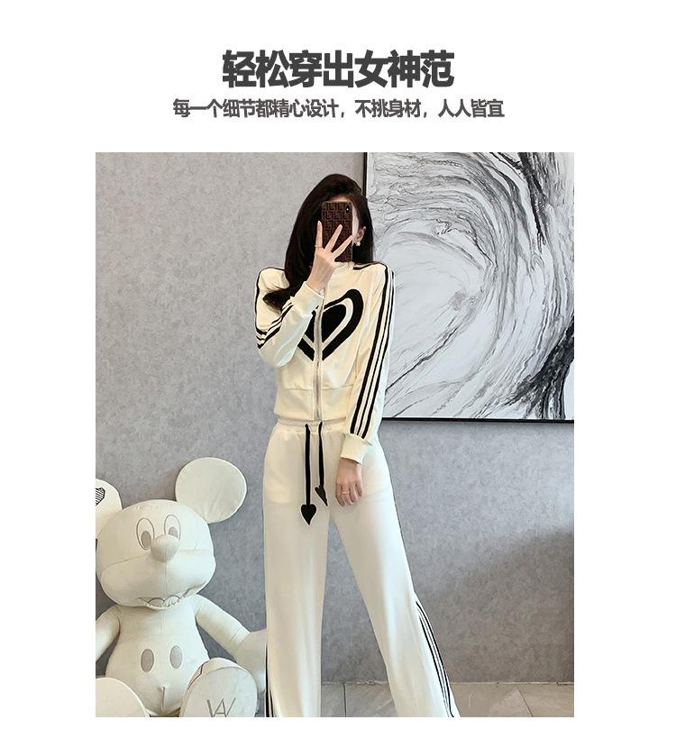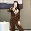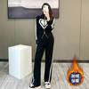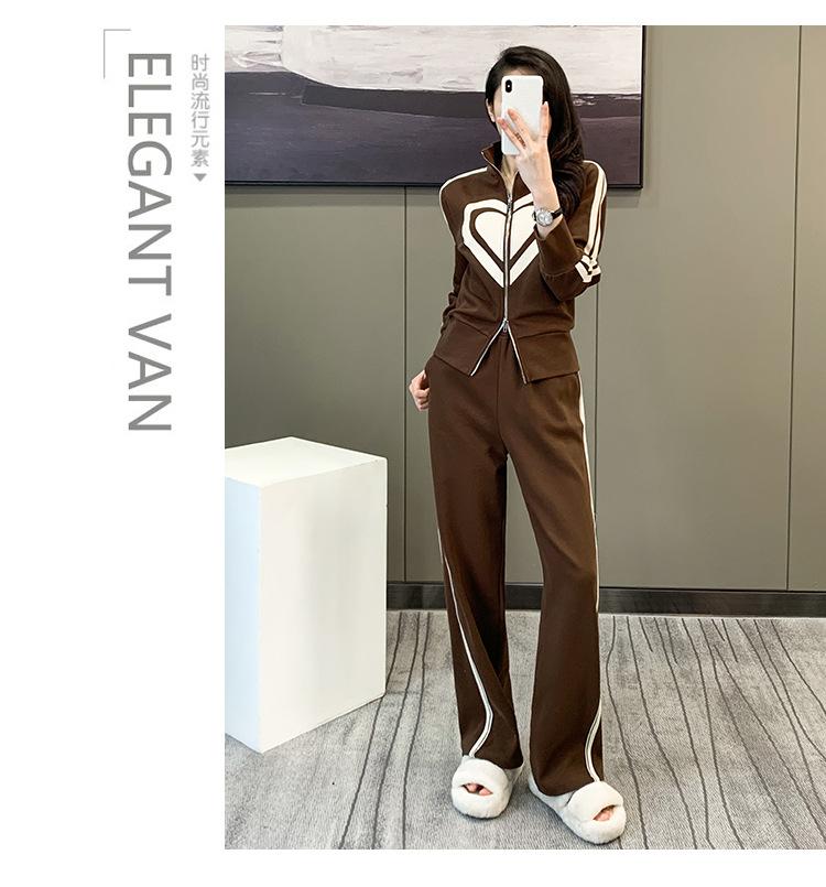 Traje deportivo casual para mujer con forro polar, estilo nuevo otoño e invierno 2025, elegante sudadera con corazón y pantalones de pierna ancha, conjunto de moda de dos piezas