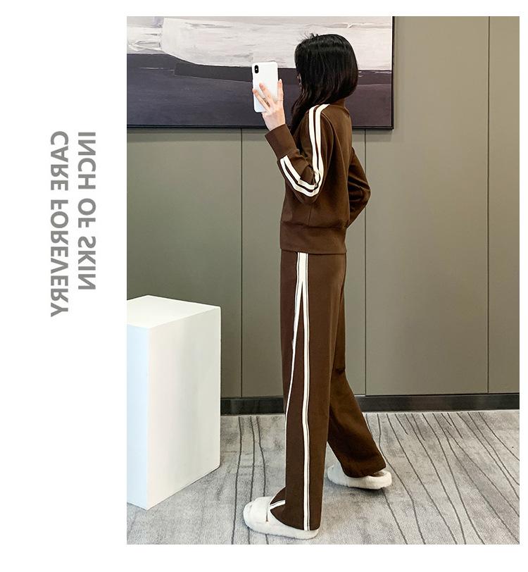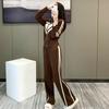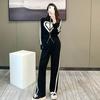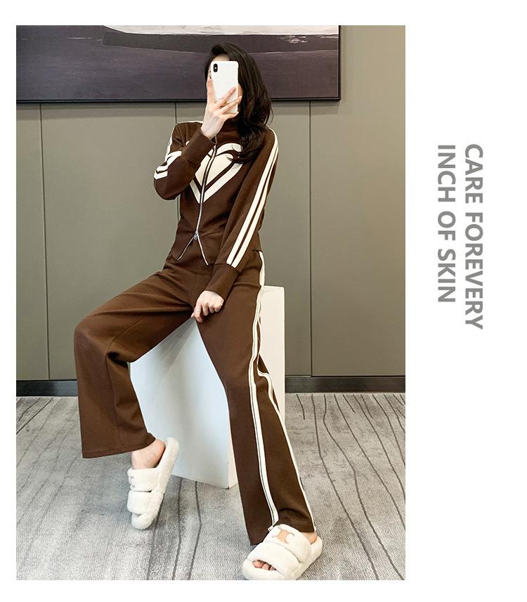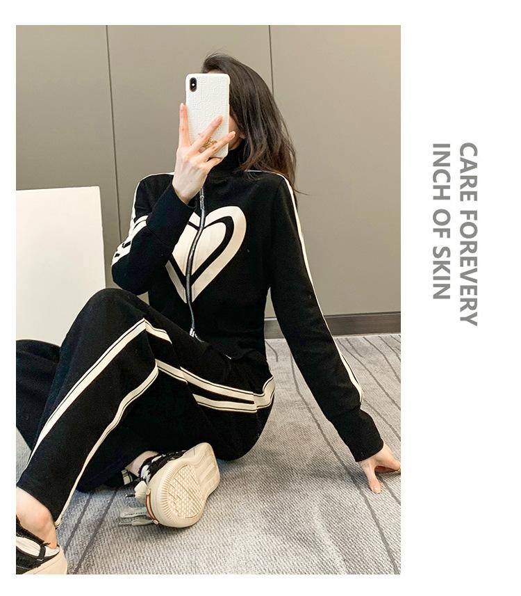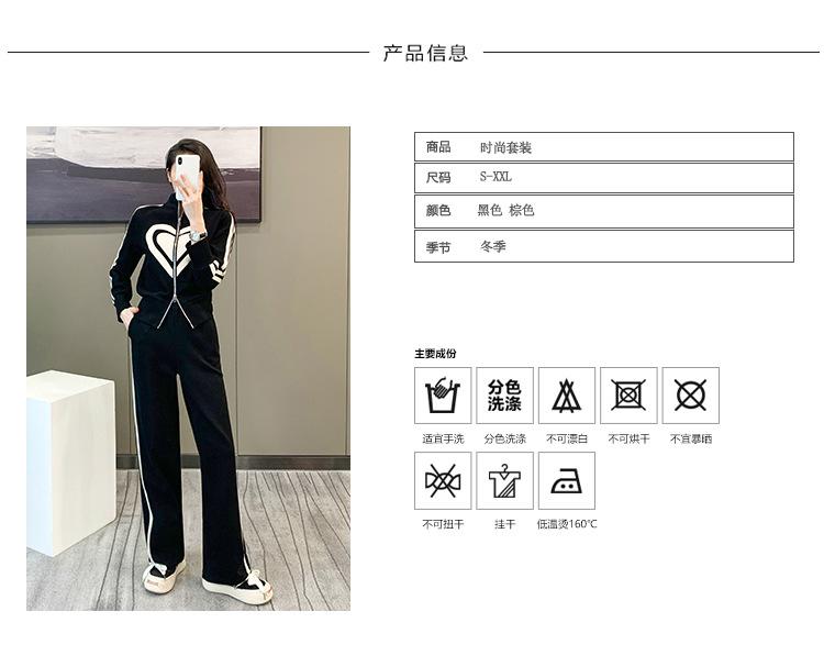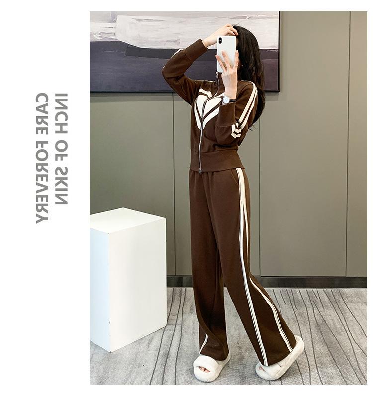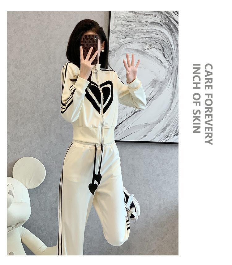 Traje deportivo casual para mujer con forro polar, estilo nuevo otoño e invierno 2025, elegante sudadera con corazón y pantalones de pierna ancha, conjunto de moda de dos piezas