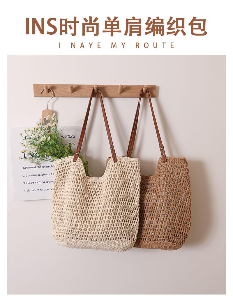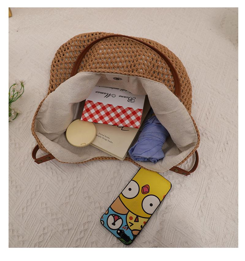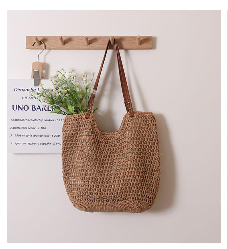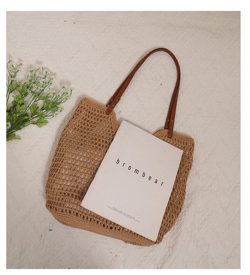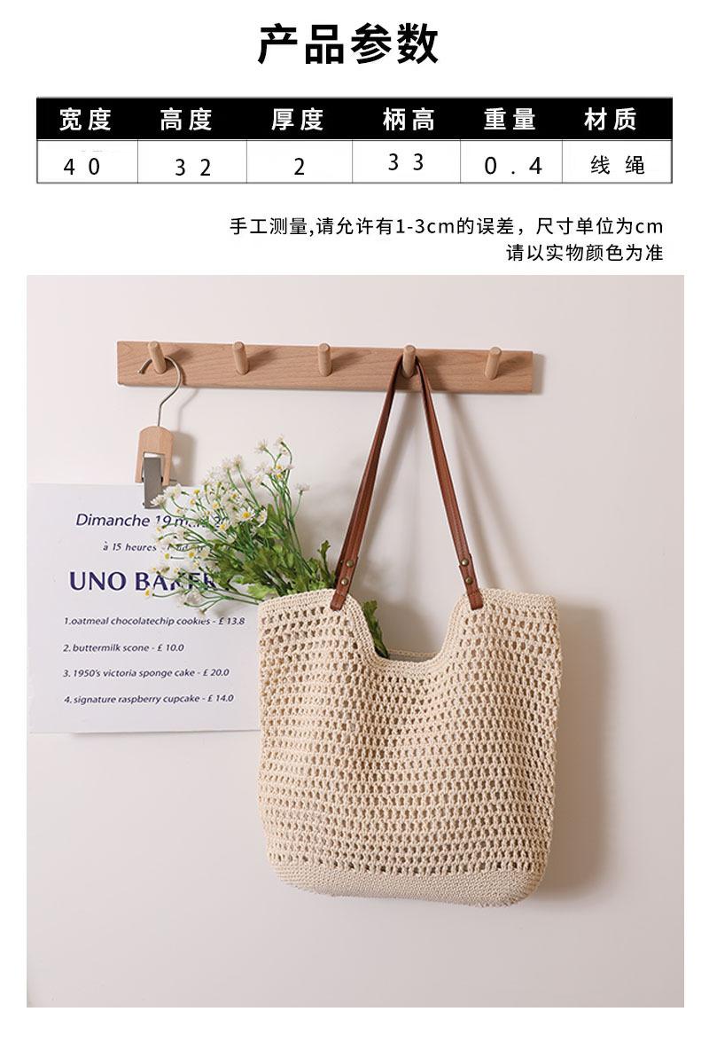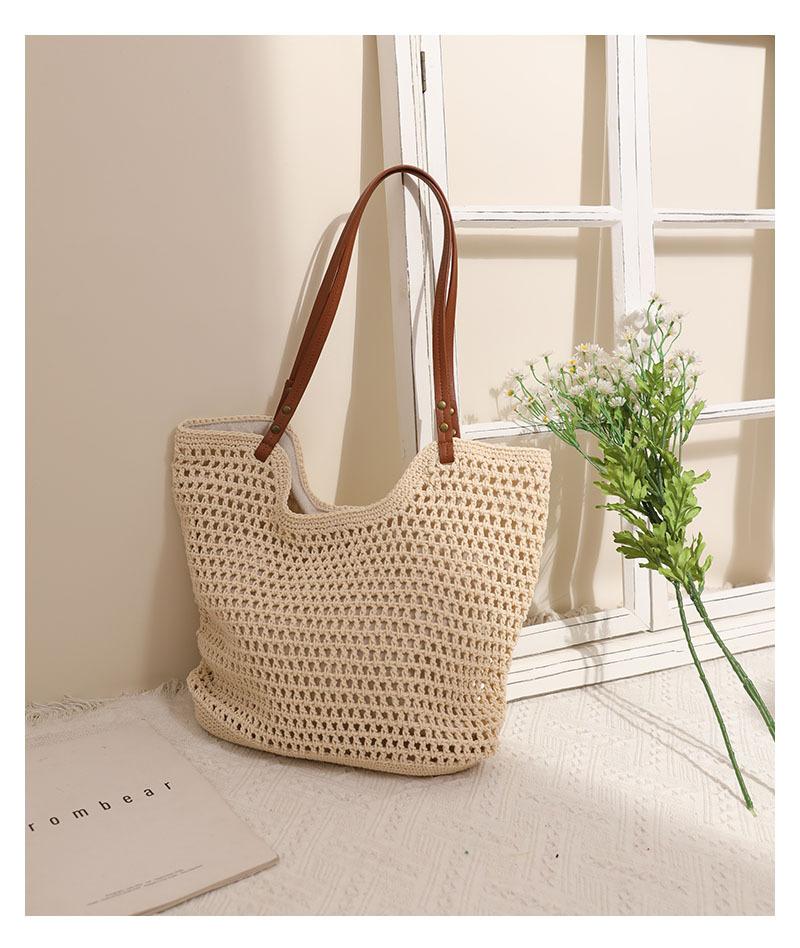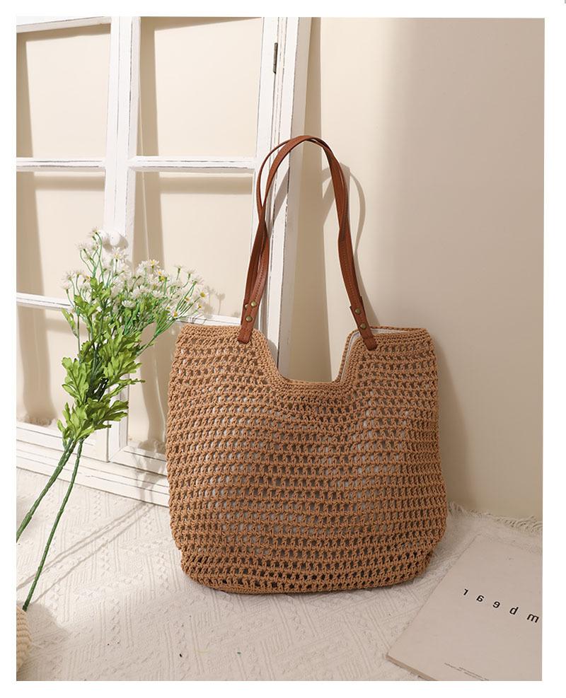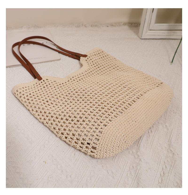 Bolso informal de algodón tejido con hombros descubiertos, nuevo estilo, bolso de paja portátil, bolso de playa para vacaciones en la playa, bolso para mujer