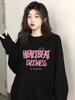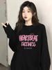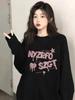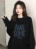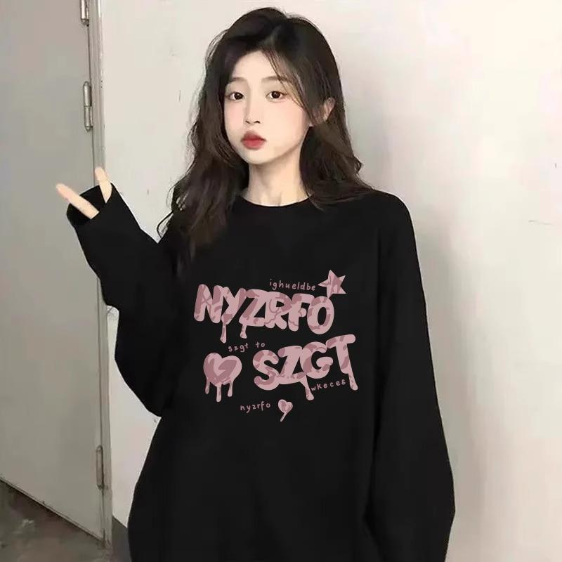 Camiseta negra de manga larga y cuello redondo, top oversize para mujer, nueva ropa casual holgada estampada para Primavera y Otoño 2024
