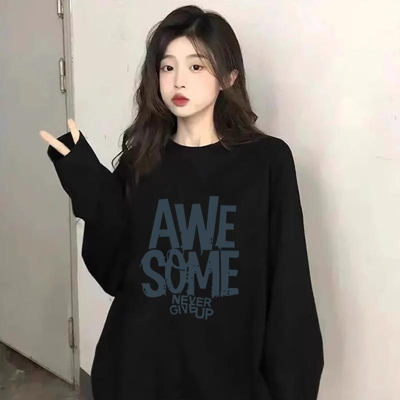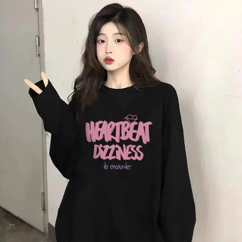 Compra Camiseta negra de manga larga y cuello redondo, top oversize para mujer, nueva ropa casual holgada estampada para Primavera y Otoño 2024 al por mayor en Joom.pro