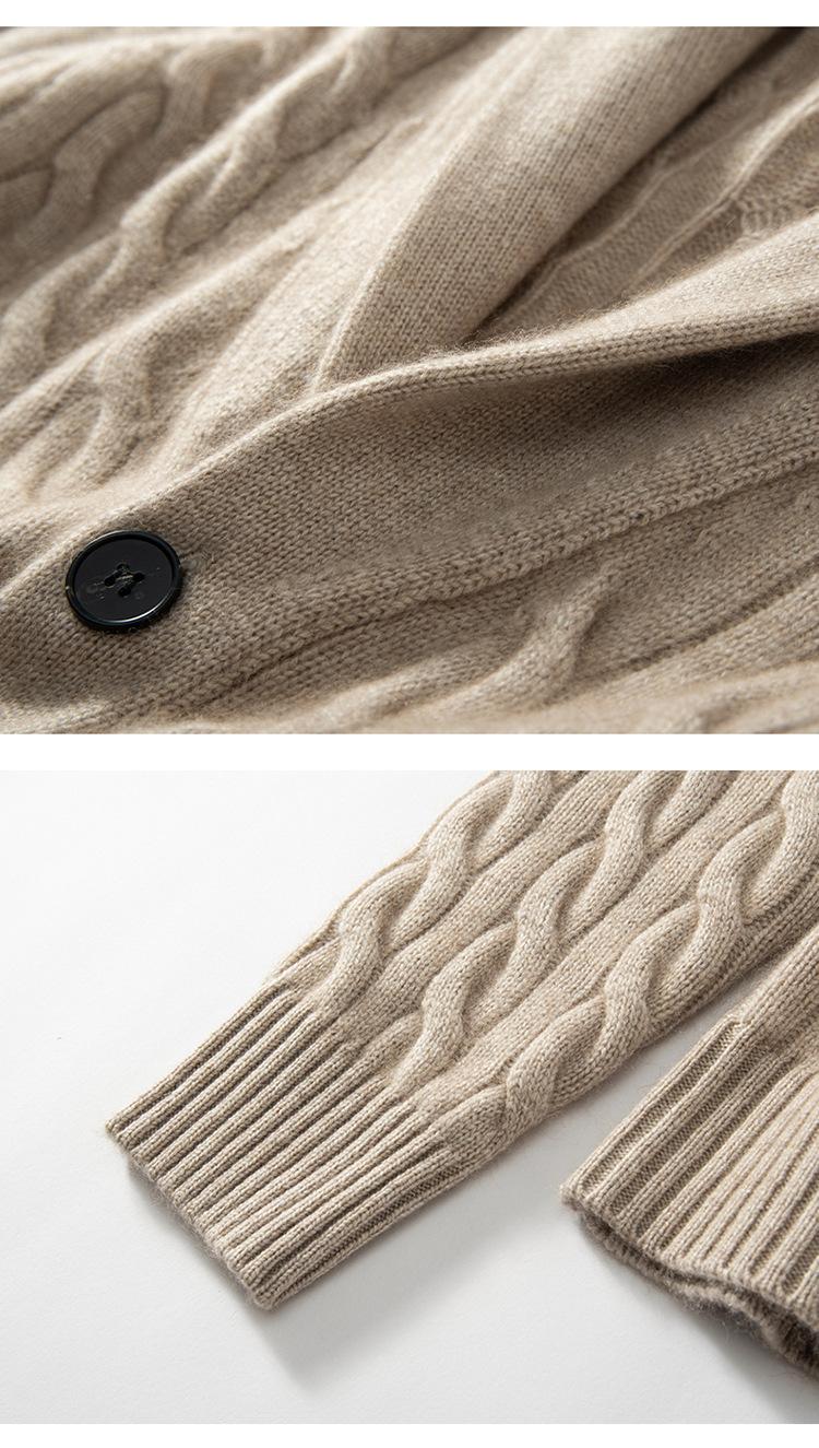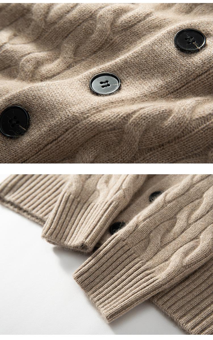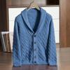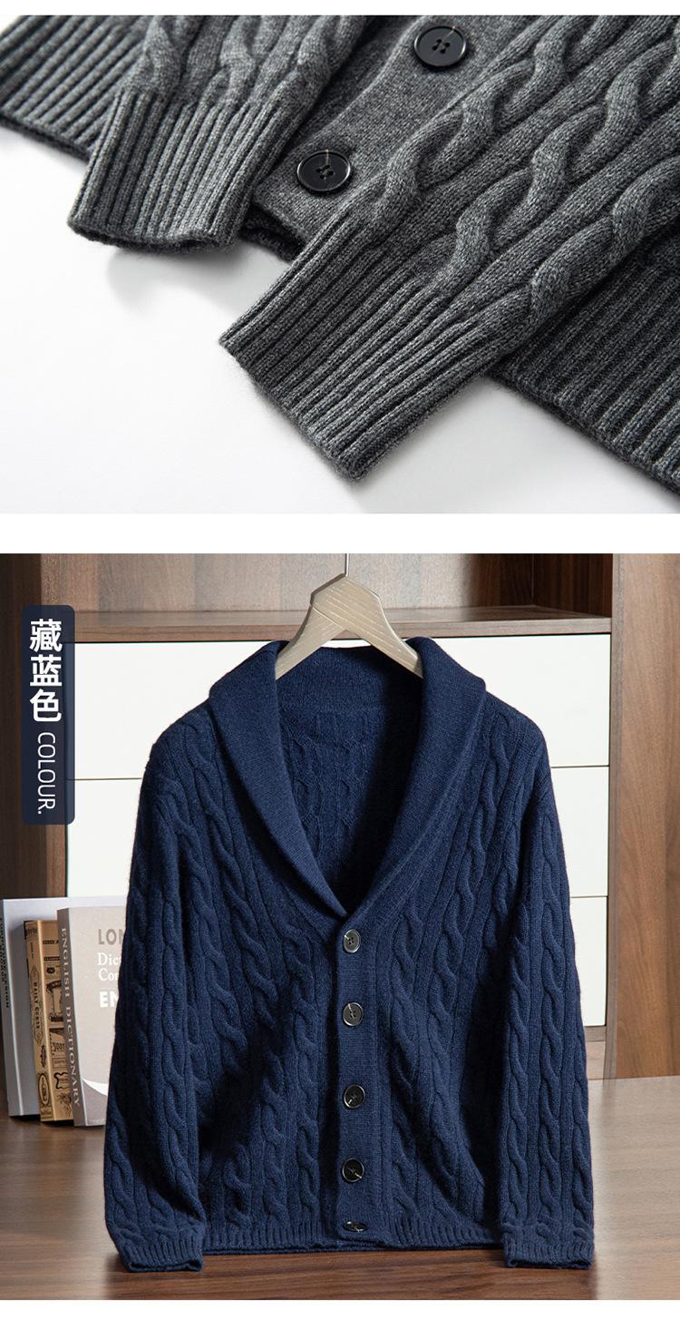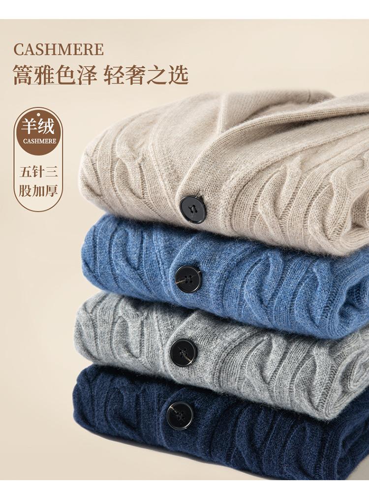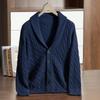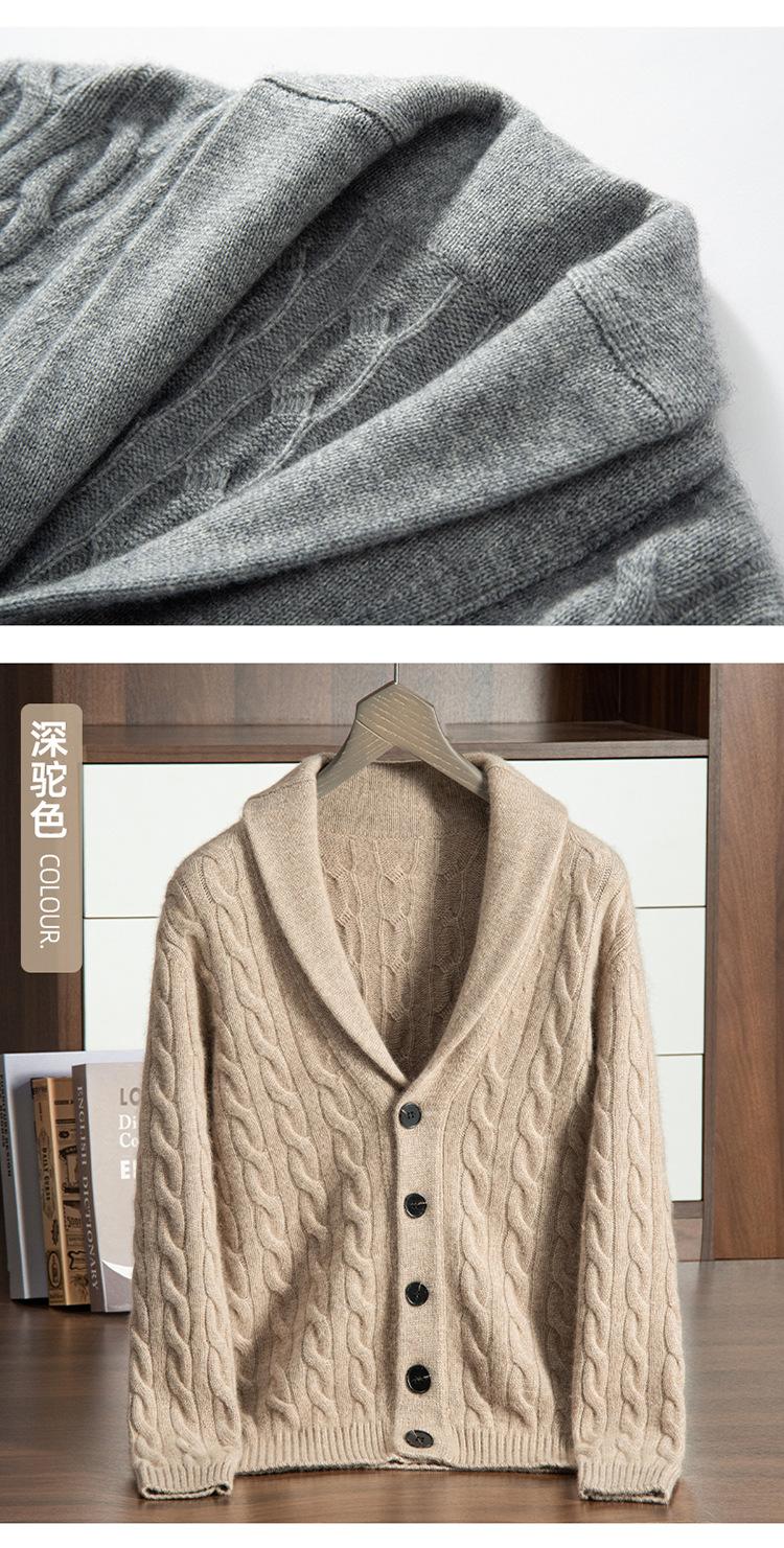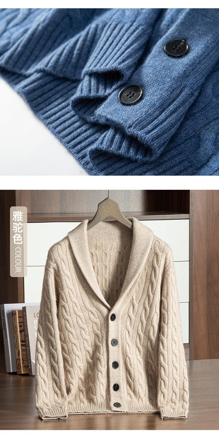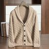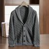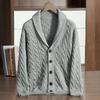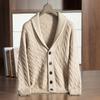 Suéter de cachemira grueso de doble hebra para otoño e invierno, cárdigan con cuello en V para hombre, suéter de punto trenzado de color sólido retro