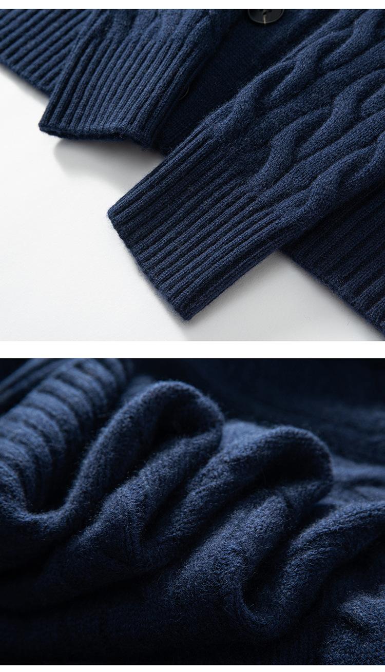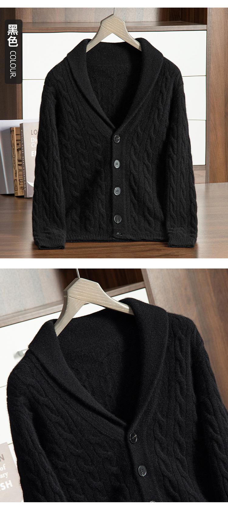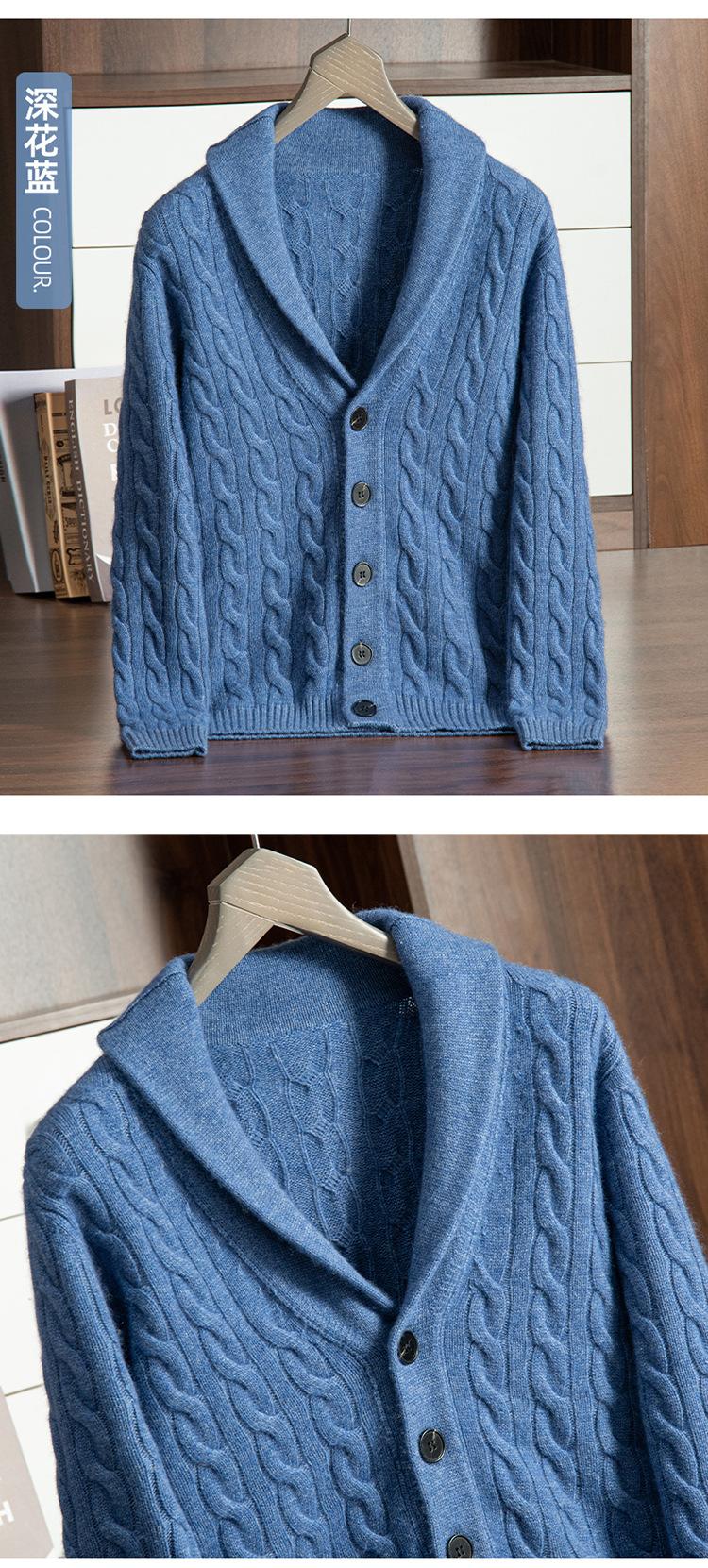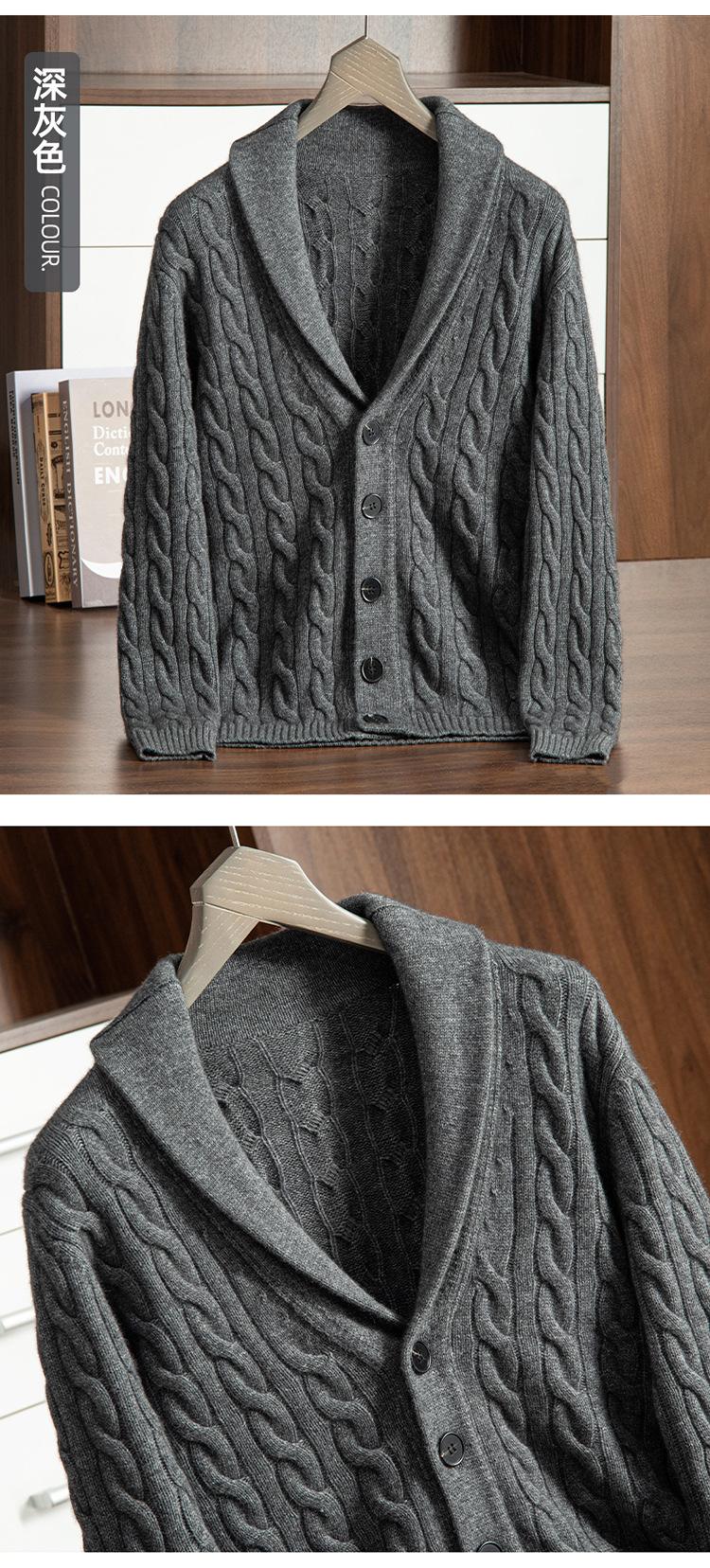 Suéter de cachemira grueso de doble hebra para otoño e invierno, cárdigan con cuello en V para hombre, suéter de punto trenzado de color sólido retro