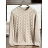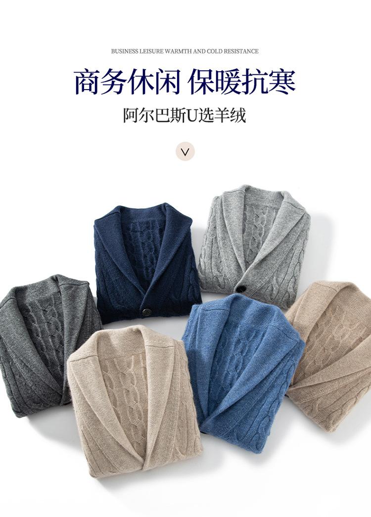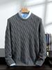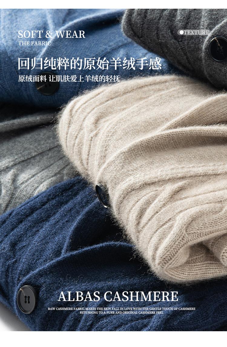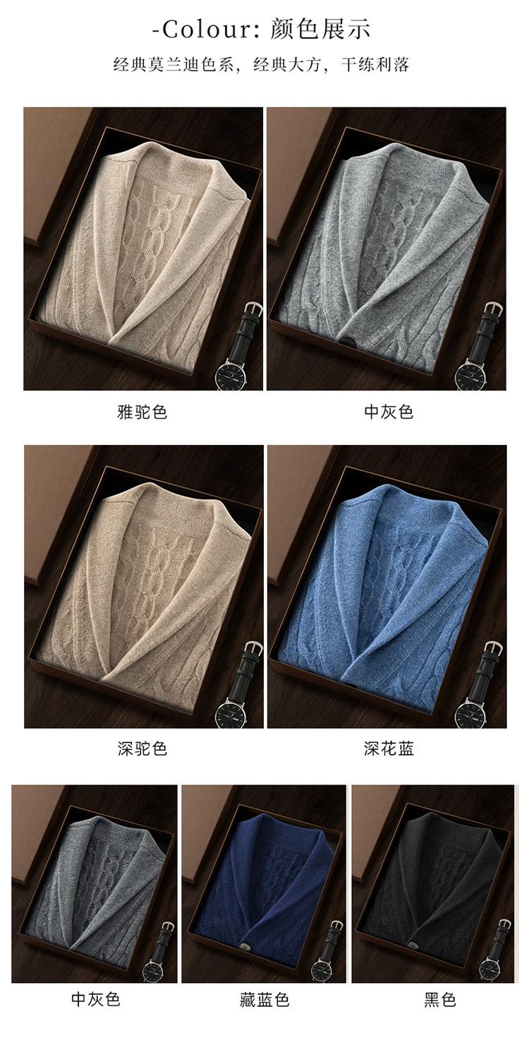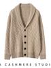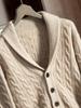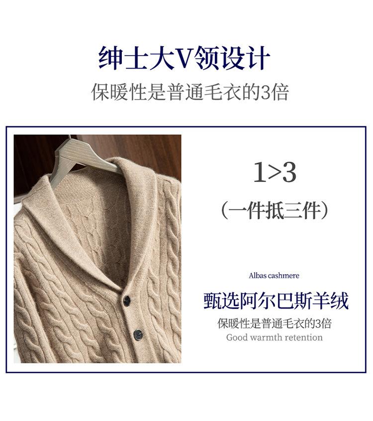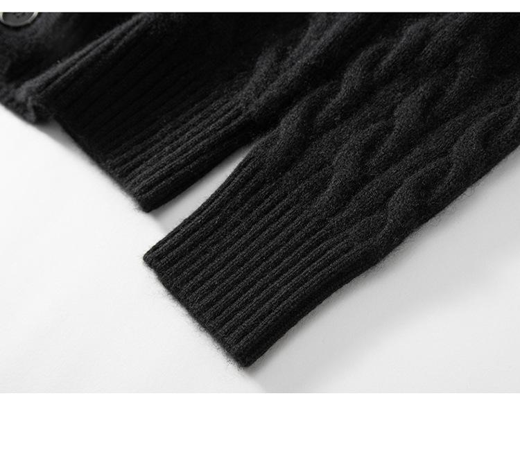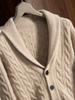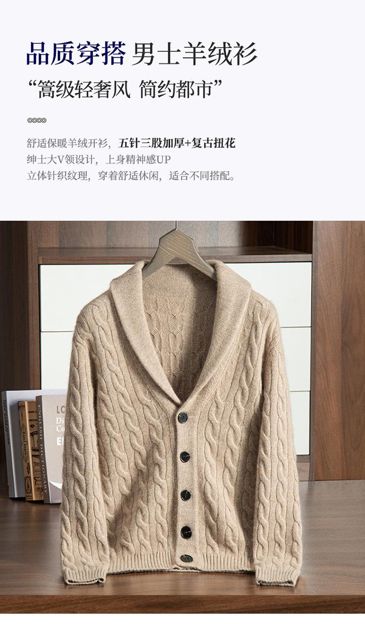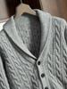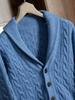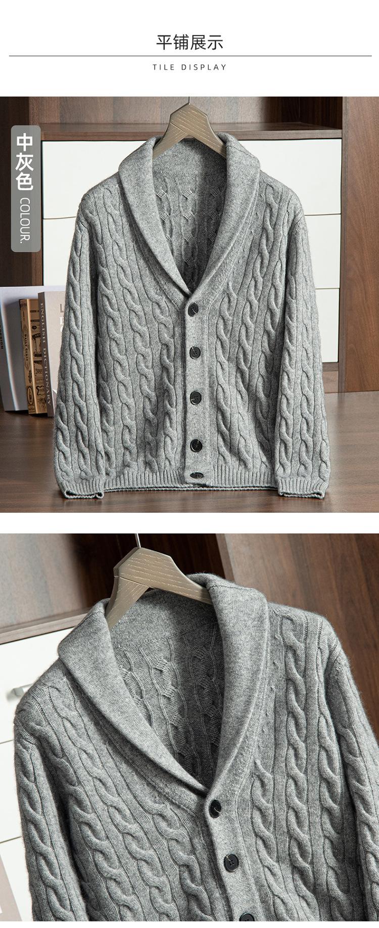 Suéter de cachemira grueso de doble hebra para otoño e invierno, cárdigan con cuello en V para hombre, suéter de punto trenzado de color sólido retro