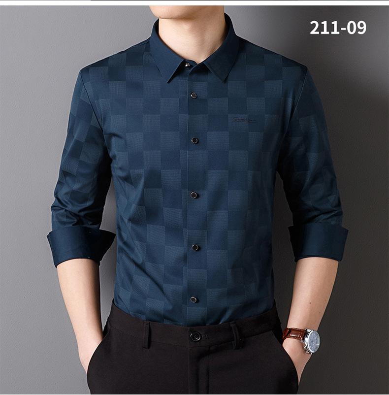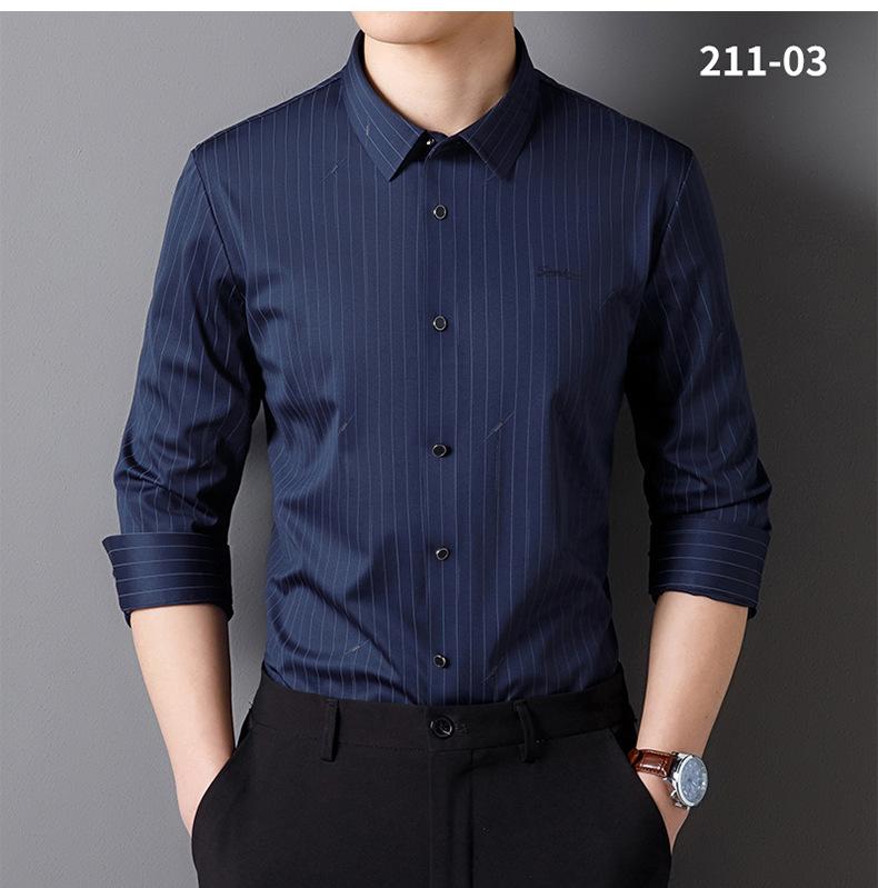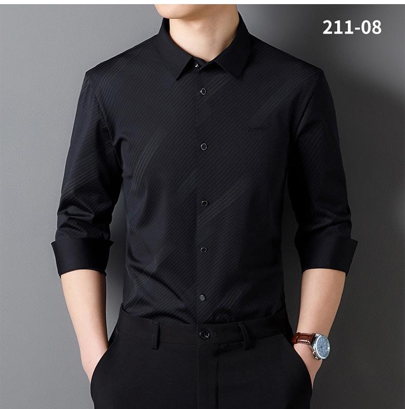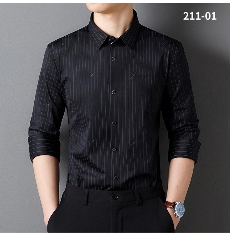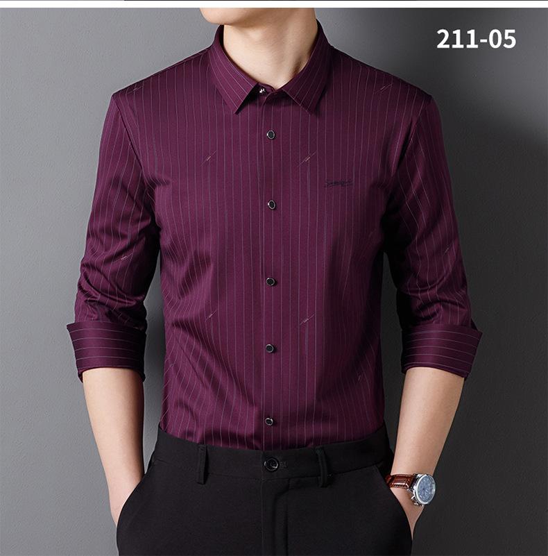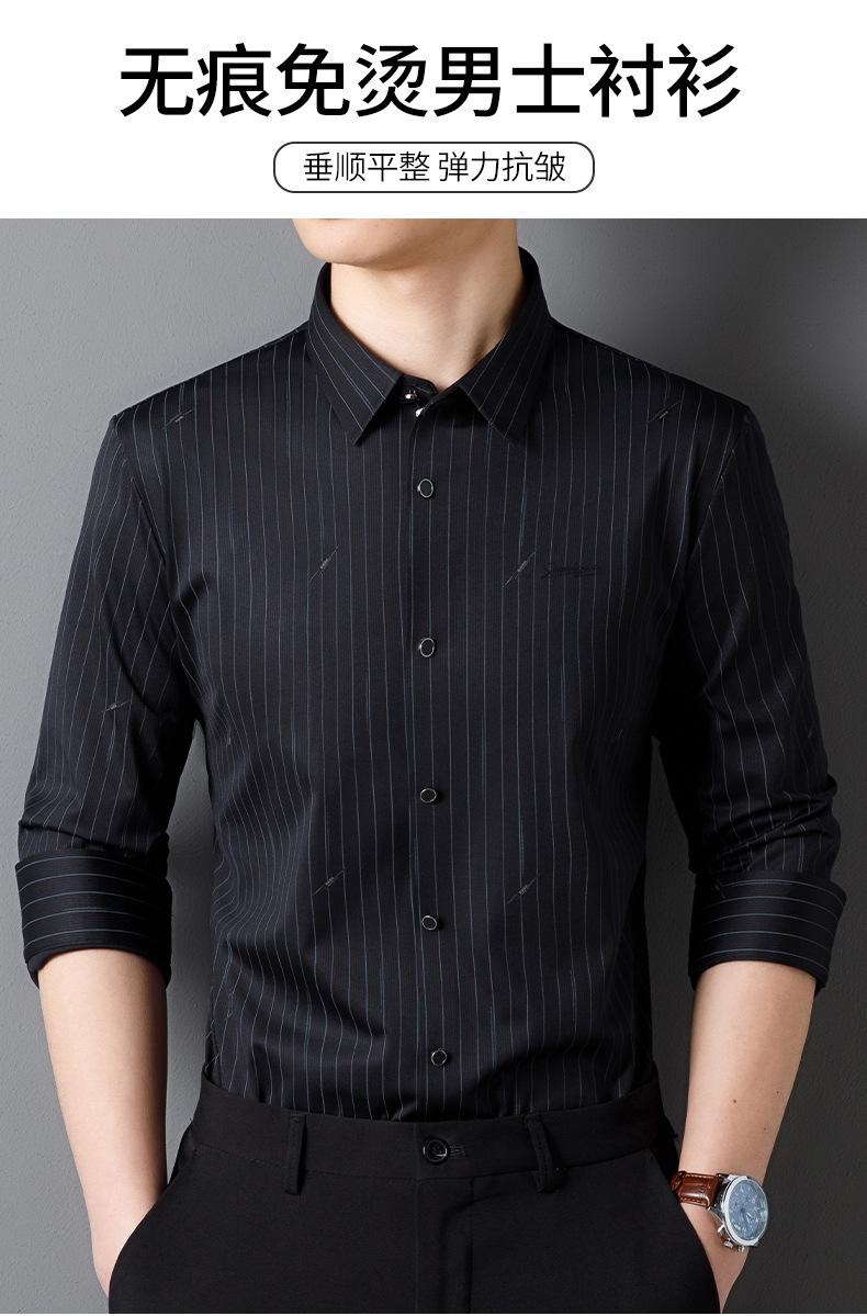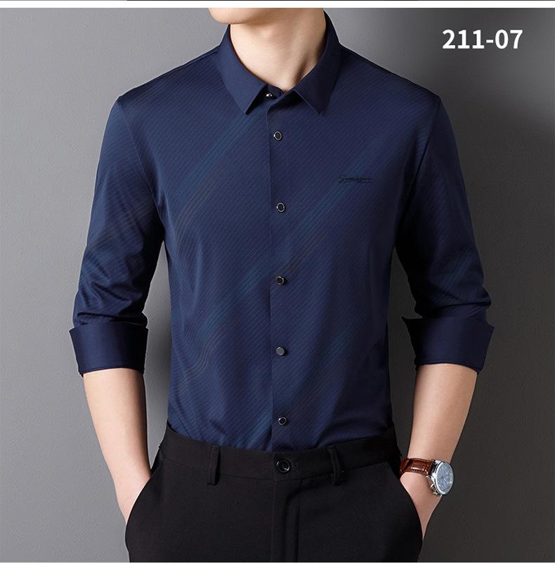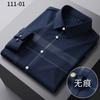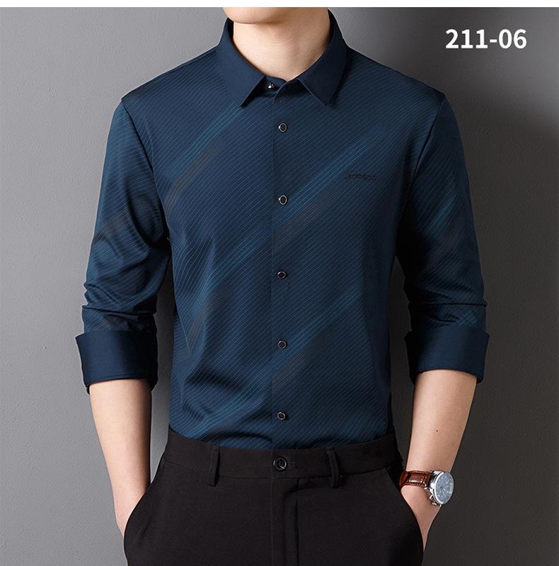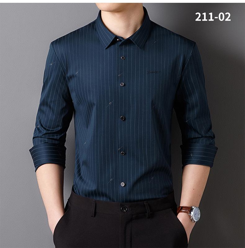 Camisa de Manga Larga para Hombre 2025 sin Costuras Adherida con Rayas Estampadas, Botones de Diamante, Tejido Versátil con Elasticidad en Cuatro Direcciones, No Necesita Planchado