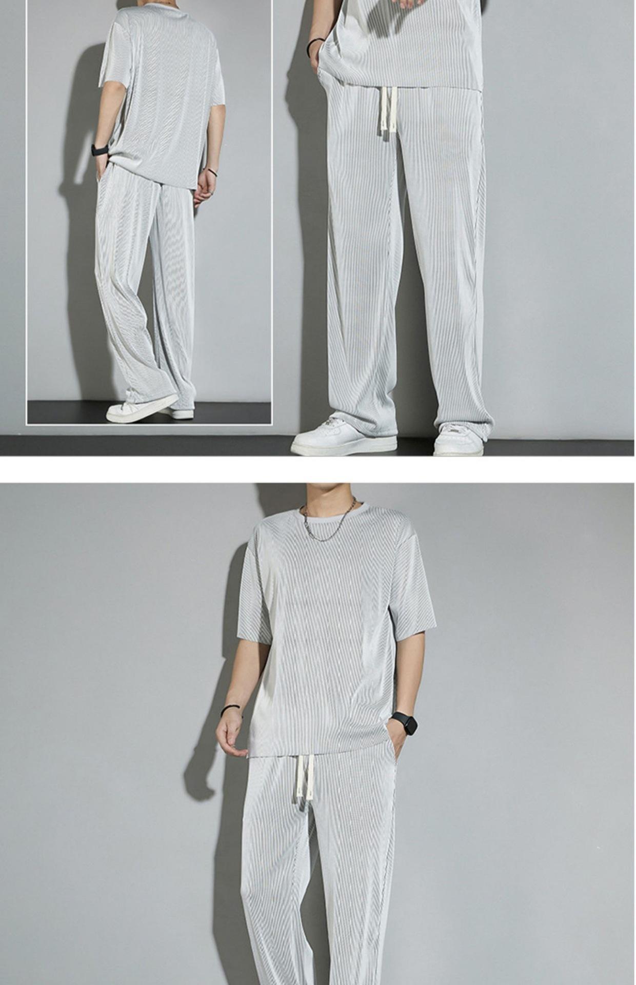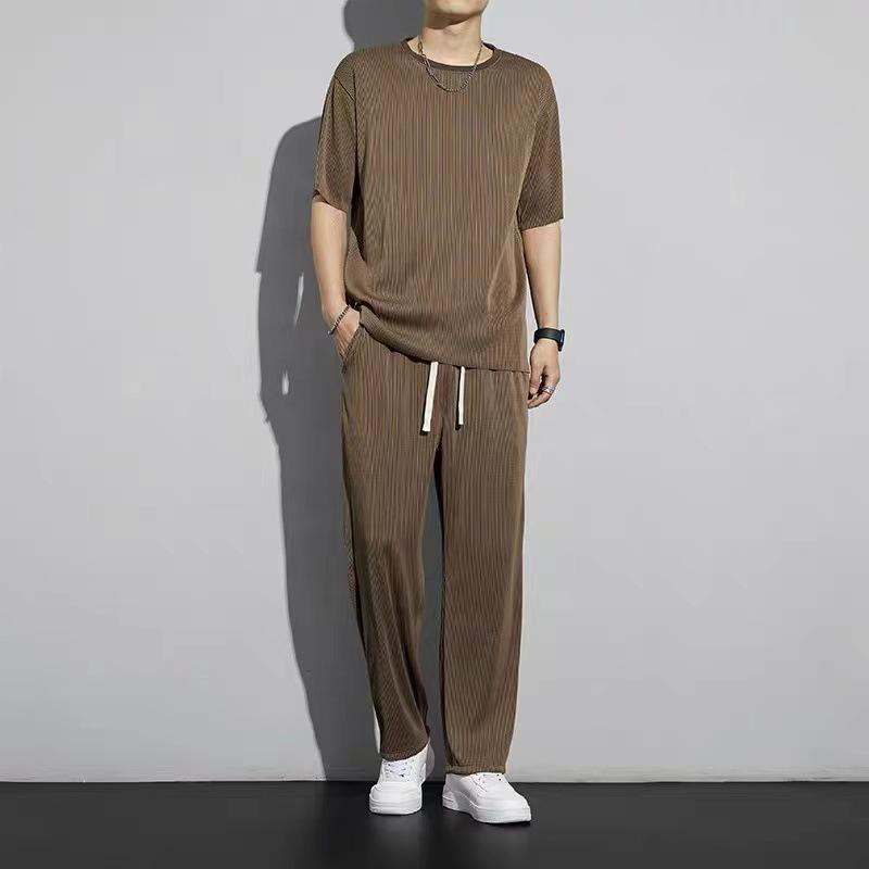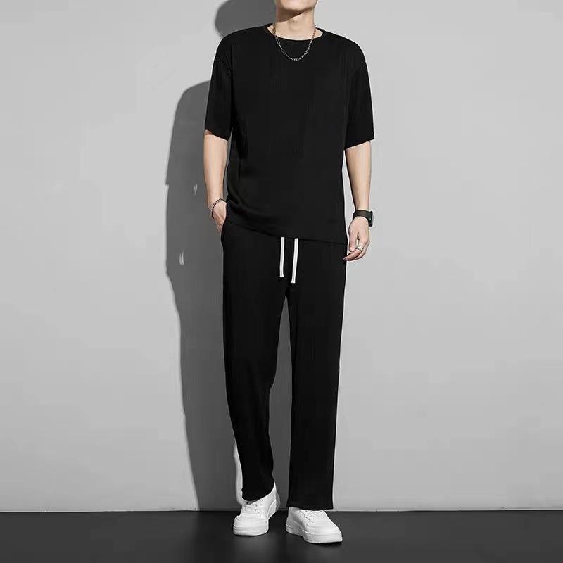 Traje deportivo de seda de hielo para hombre, verano delgado 2023 nuevo casual pantalones largos camiseta manga corta conjunto de ropa de secado rápido