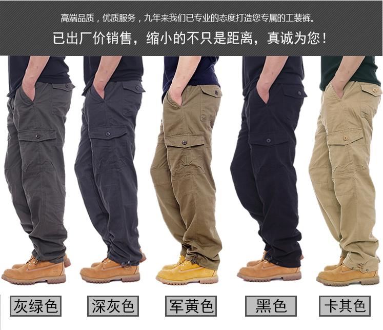 Pantalones casuales de algodón de comercio exterior para hombre, pantalones de cintura elástica de talla grande, pantalones holgados con múltiples bolsillos, pantalones de obra