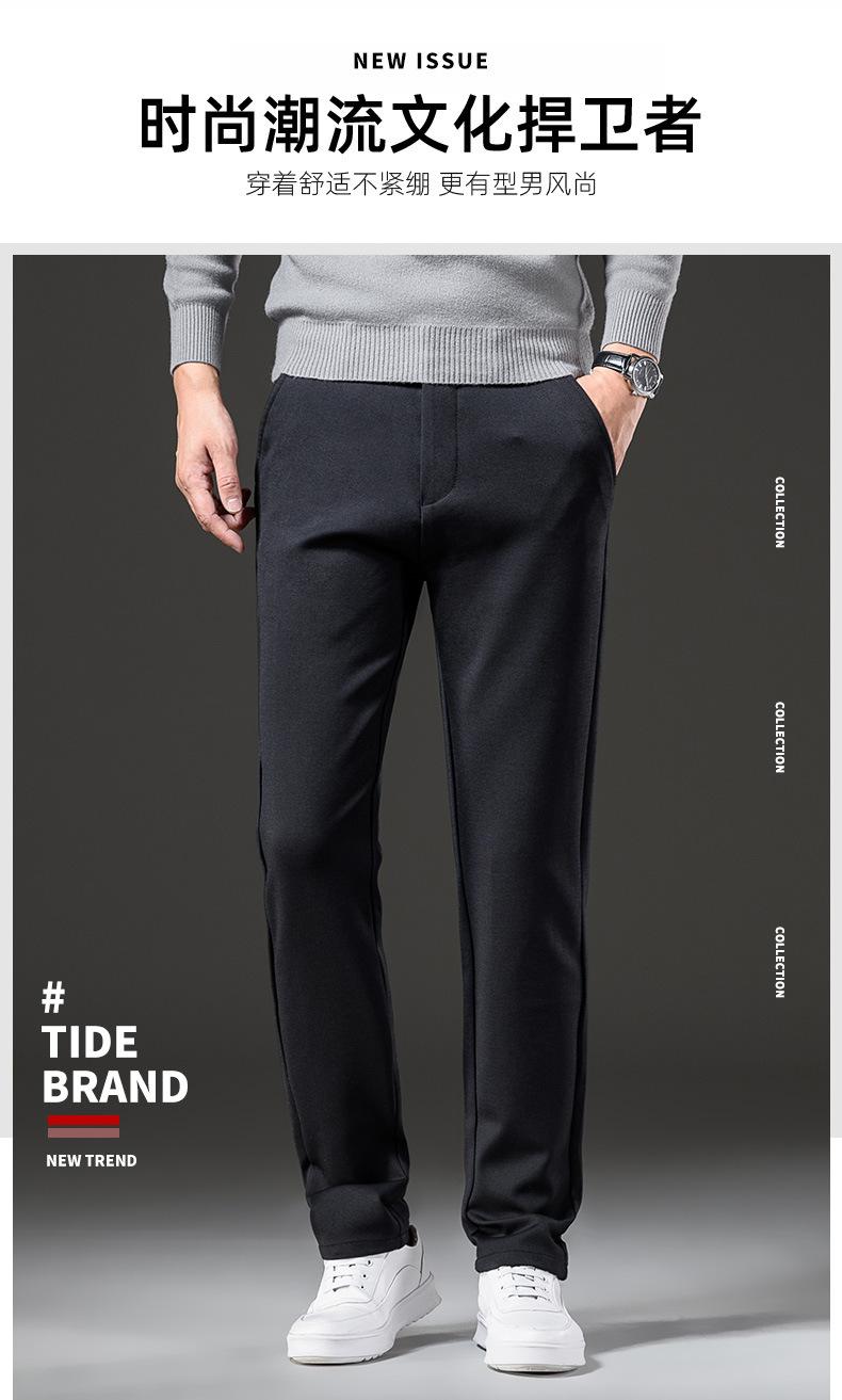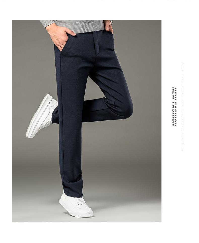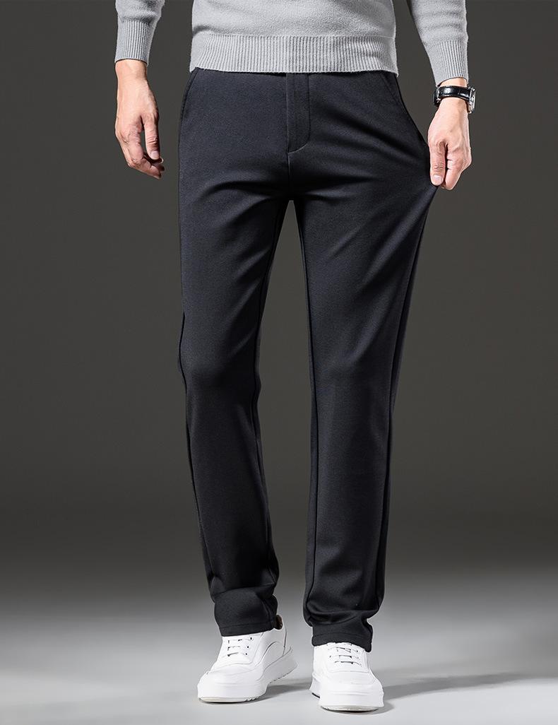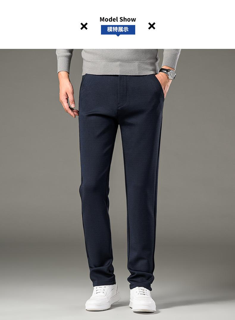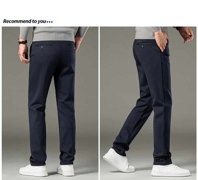 Pantalones casuales rectos pequeños elásticos de sarga de cintura alta para hombre para negocios de mediana edad, pantalones slim para papá, pantalones de primavera cómodos para hombre