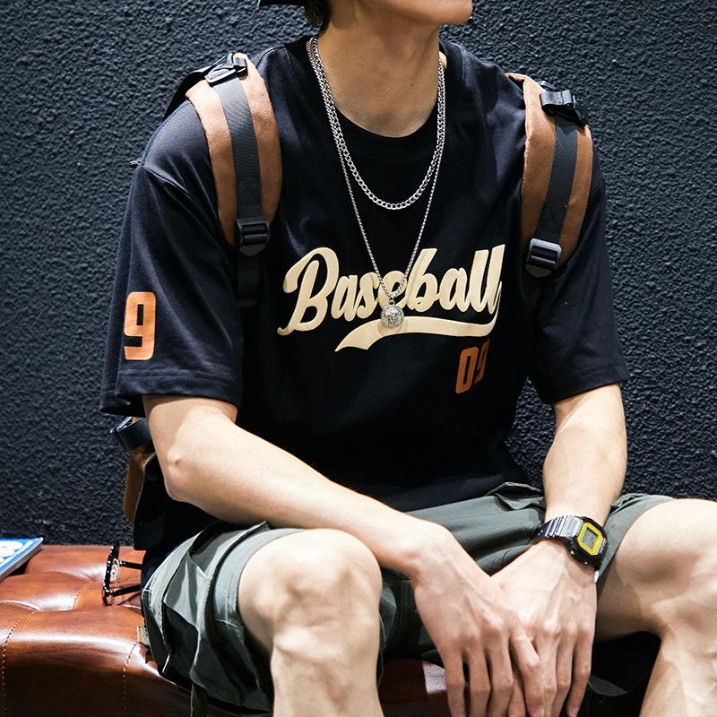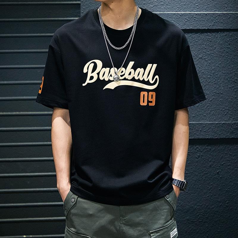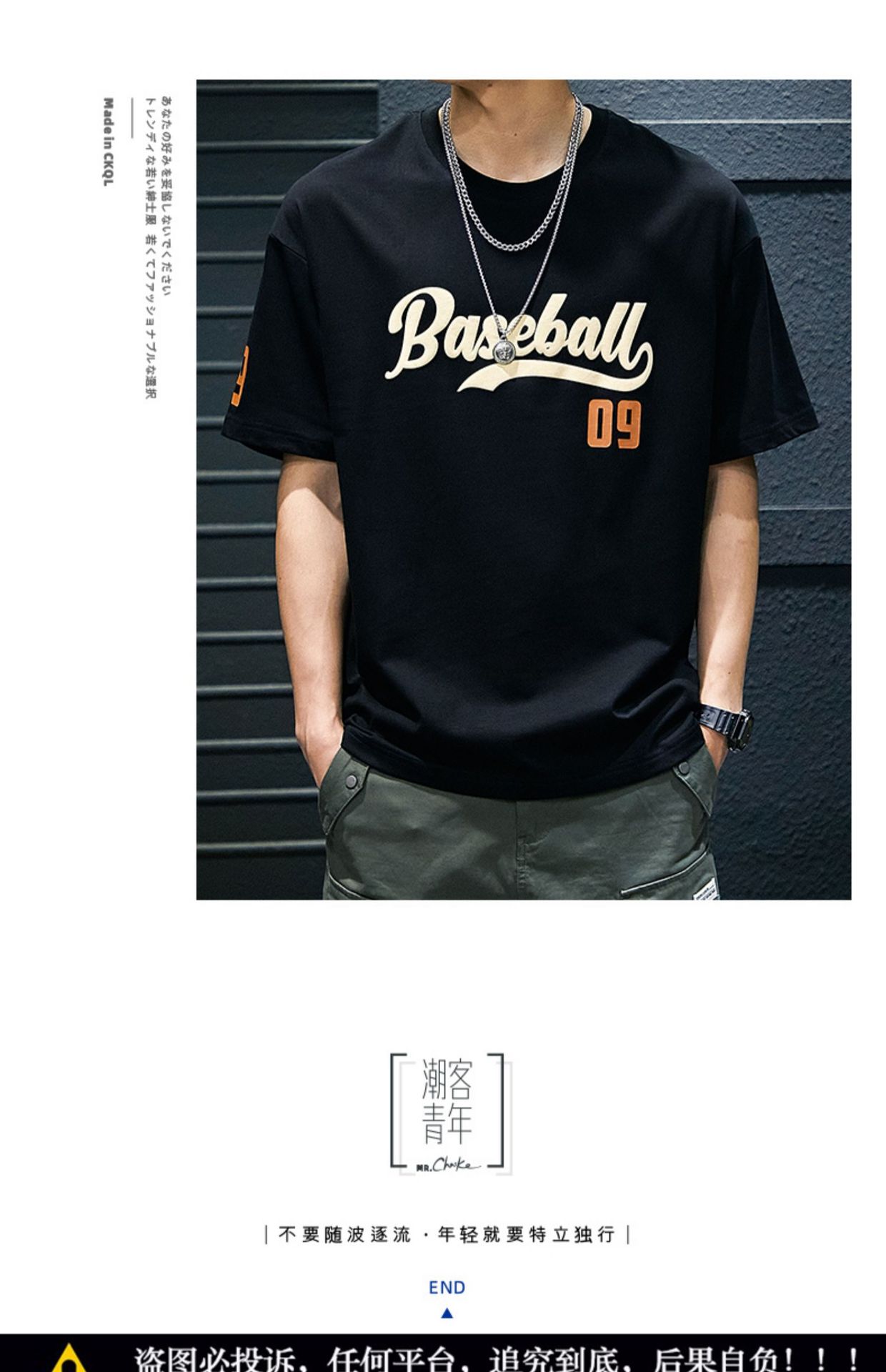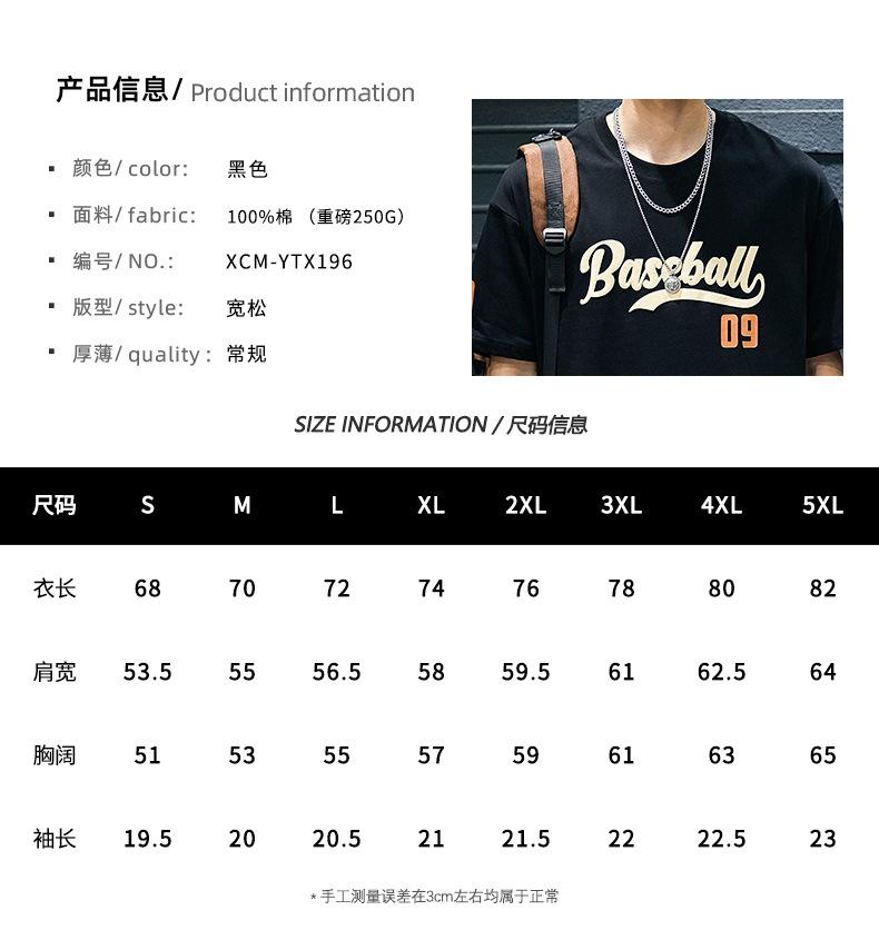 Camiseta de manga corta de verano de 250 g para hombre, con estampado de letras, cuello redondo, marca Tide, holgada, talla grande, estilo americano
