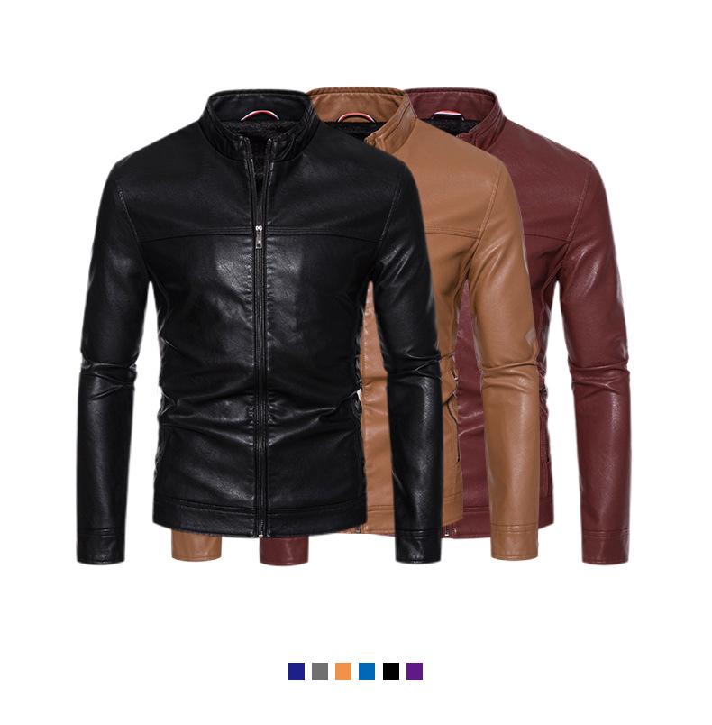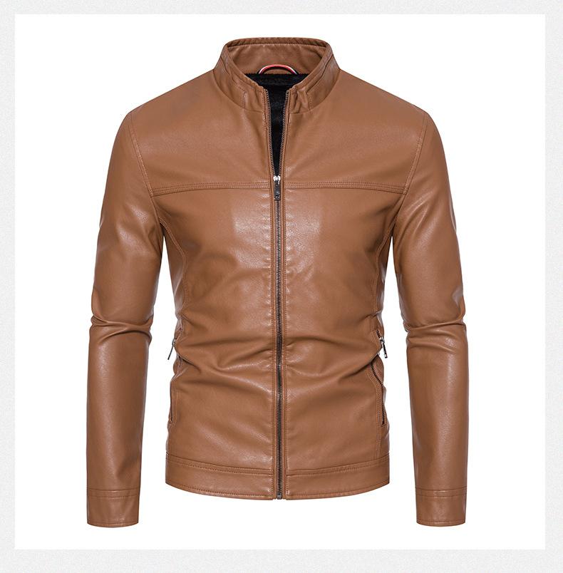 Chaqueta de cuero para hombre, nueva chaqueta de otoño con solapa, delgada y atractiva, informal, de cuero PU, para motocicleta, a la moda.