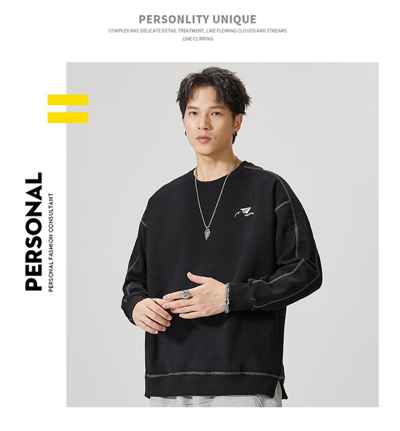 F2146 | Talla grande para hombre otoño e invierno Nuevo 330g pesado costura cuello redondo chalecos hombre hombro suelto chaqueta estampada
