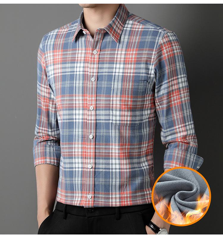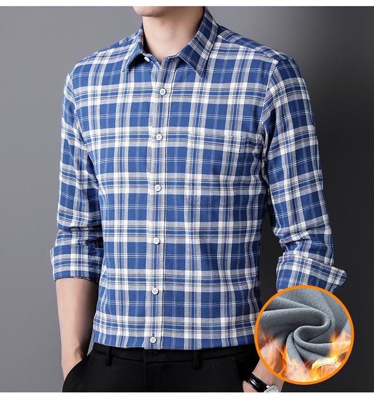 Camisa térmica de invierno para hombre, camisa a cuadros de algodón grueso con forro polar, manga larga, ropa de alta gama para papás de mediana edad y mayores, venta al por mayor