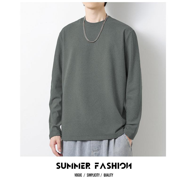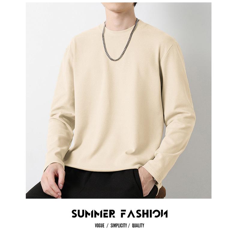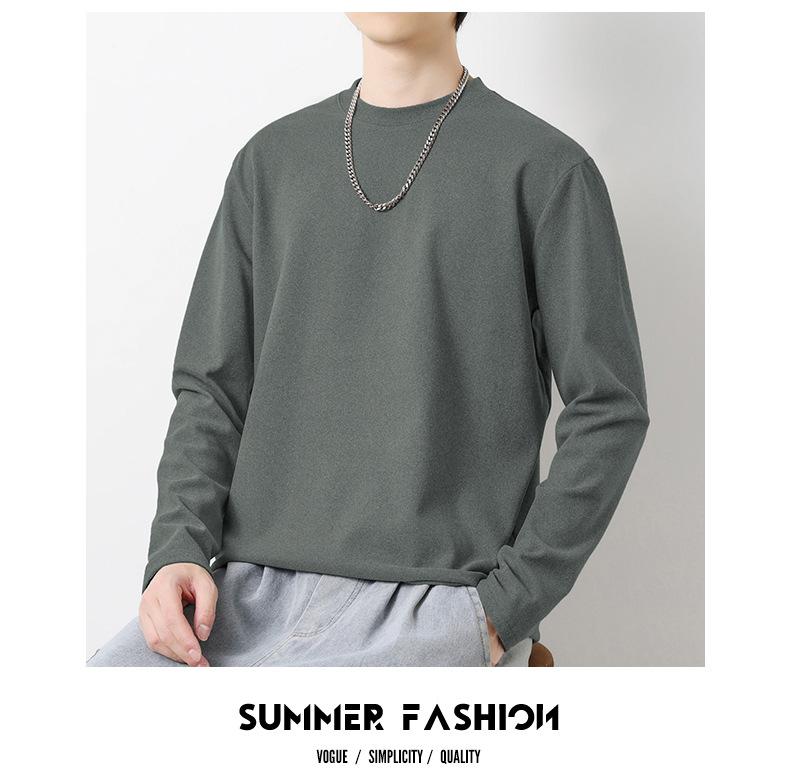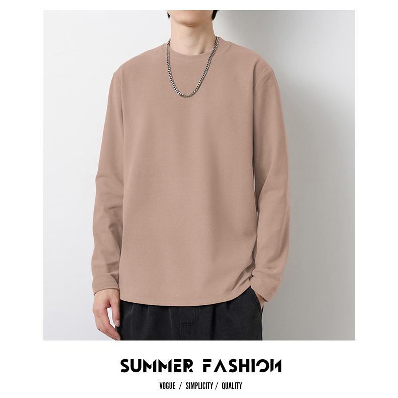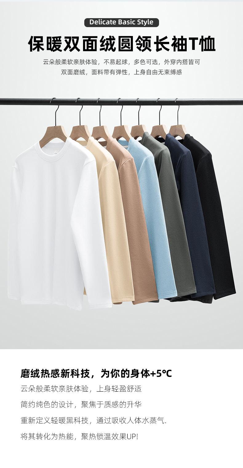 Camiseta de Manga Larga para Hombre Capa Interior con Camiseta Base de Terciopelo 2025 Nueva Cálida Terciopelo de Doble Cara Cuello Redondo Top Color Puro Ropa de Otoño