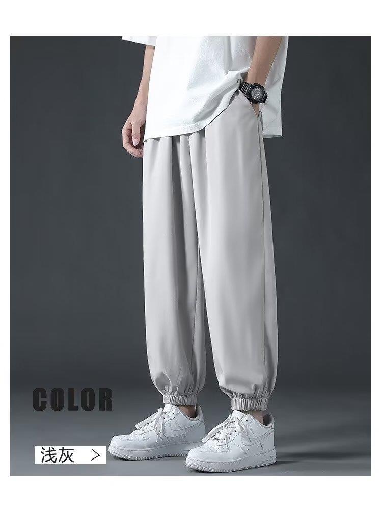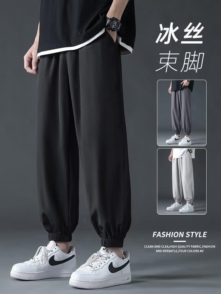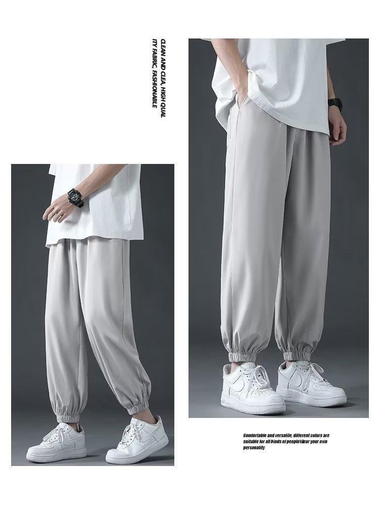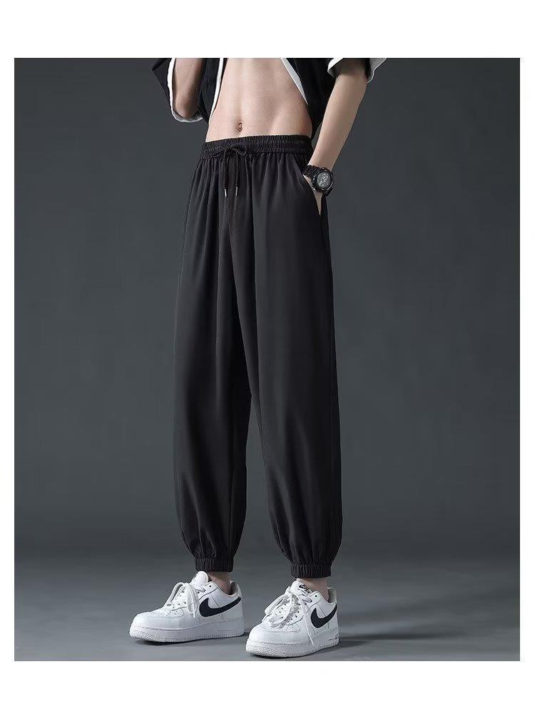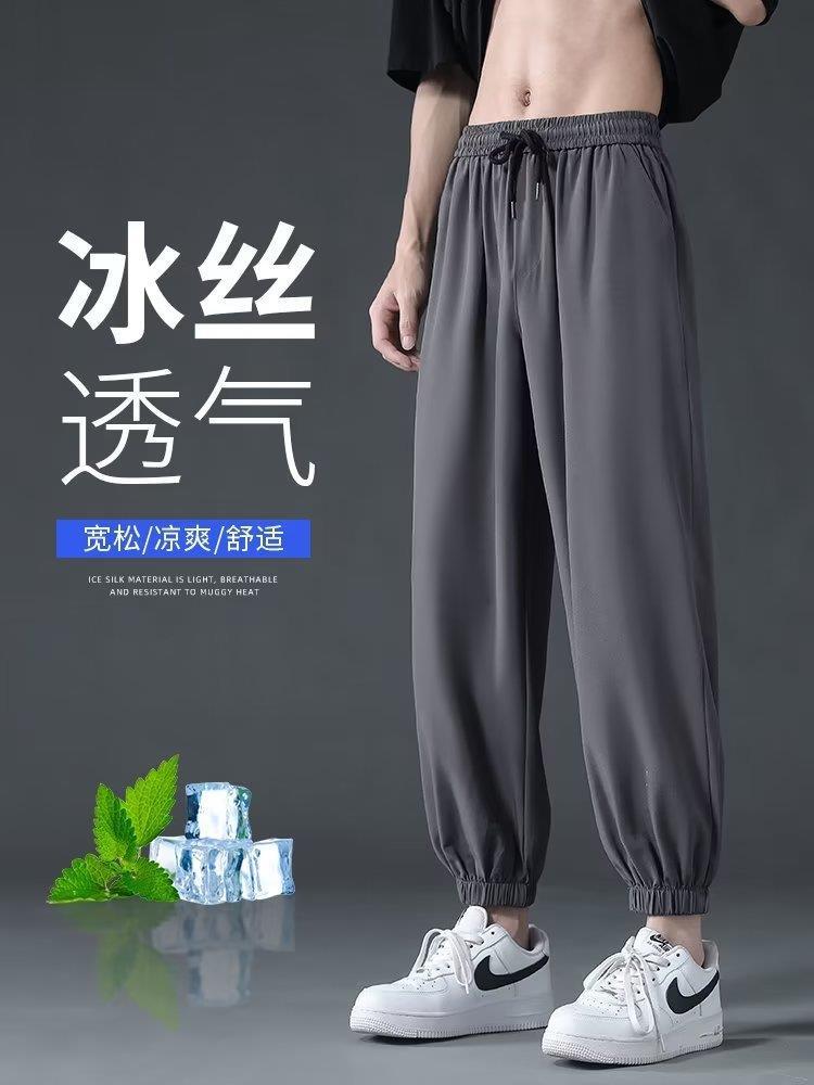 Pantalones de seda de hielo para hombre, pantalones de verano para hombre, pantalones deportivos casuales elásticos sueltos con tobillos finos, pantalones de secado rápido para hombre