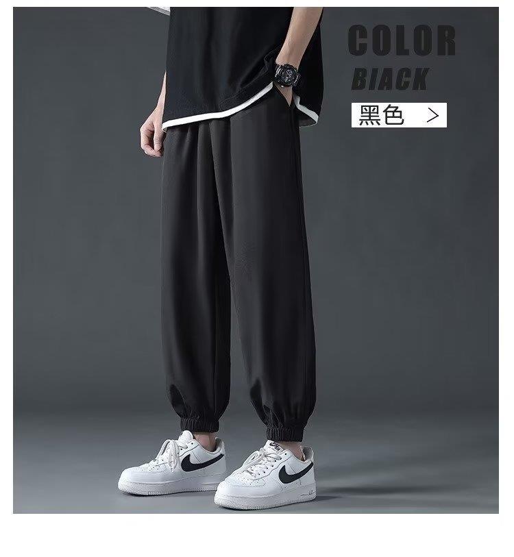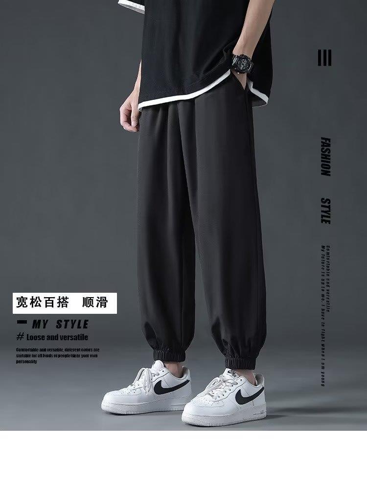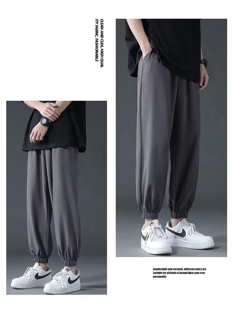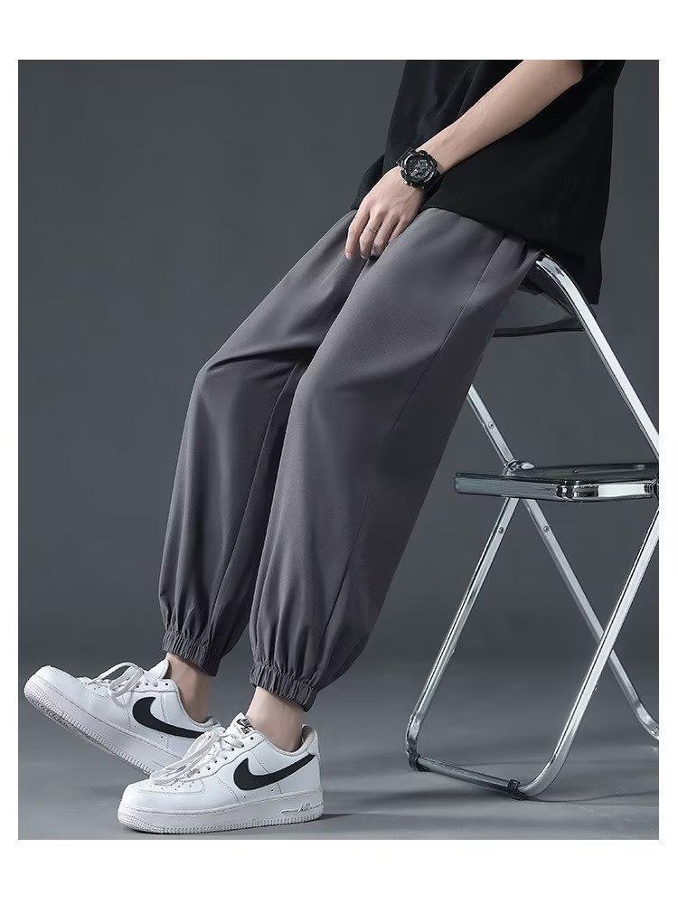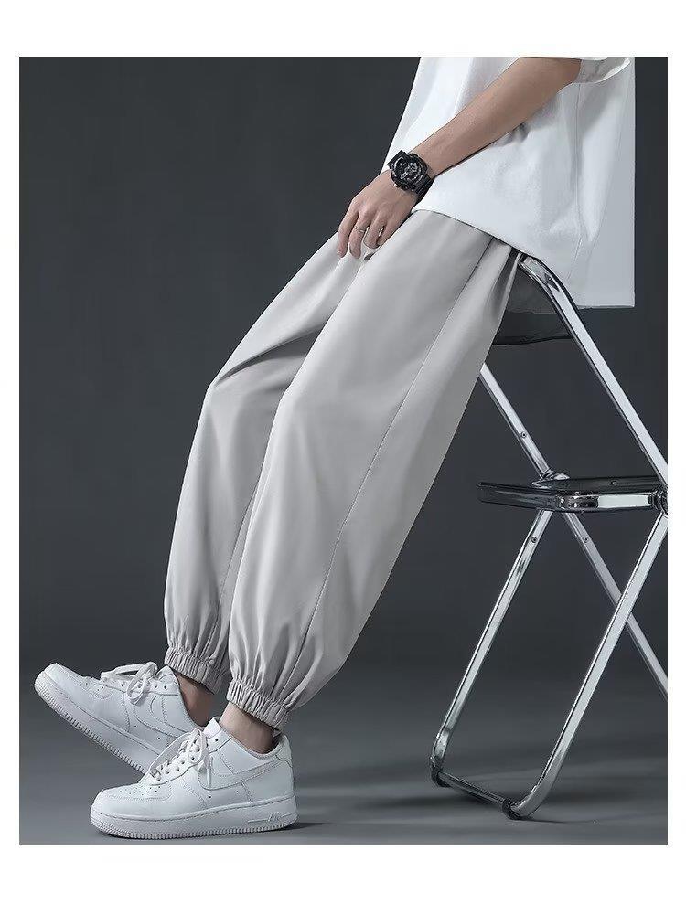Pantalones de seda de hielo para hombre, pantalones de verano para hombre, pantalones deportivos casuales elásticos sueltos con tobillos finos, pantalones de secado rápido para hombre